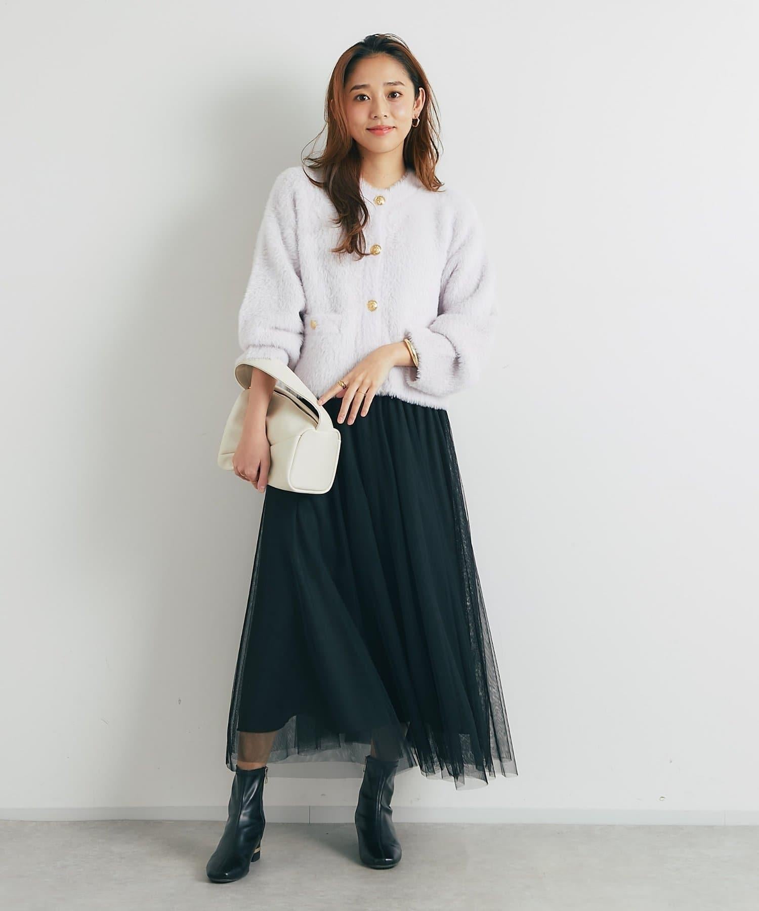 開衫的蓬鬆度適中,可搭配標準牛仔褲或人魚裙,盡顯淑女風範。