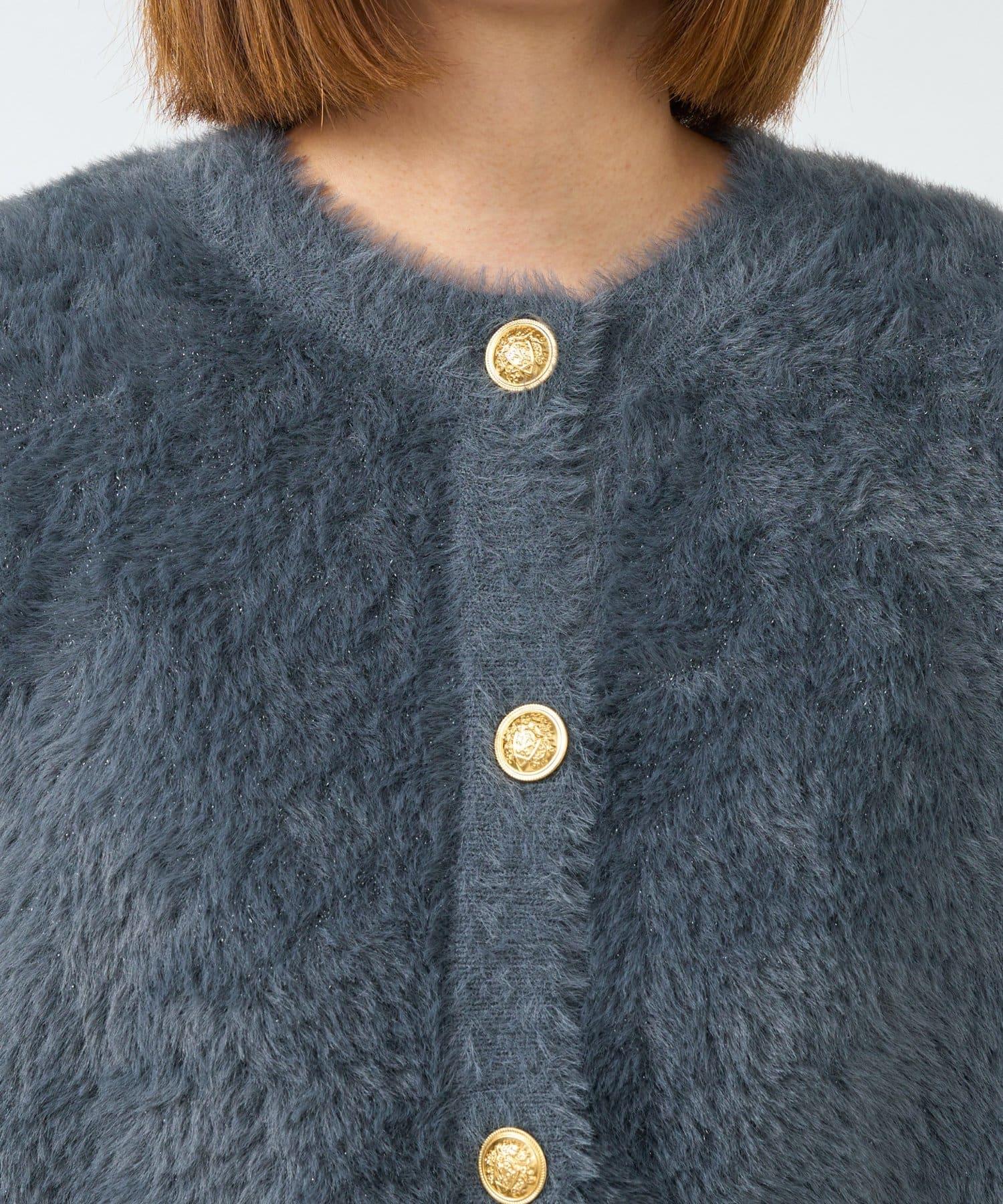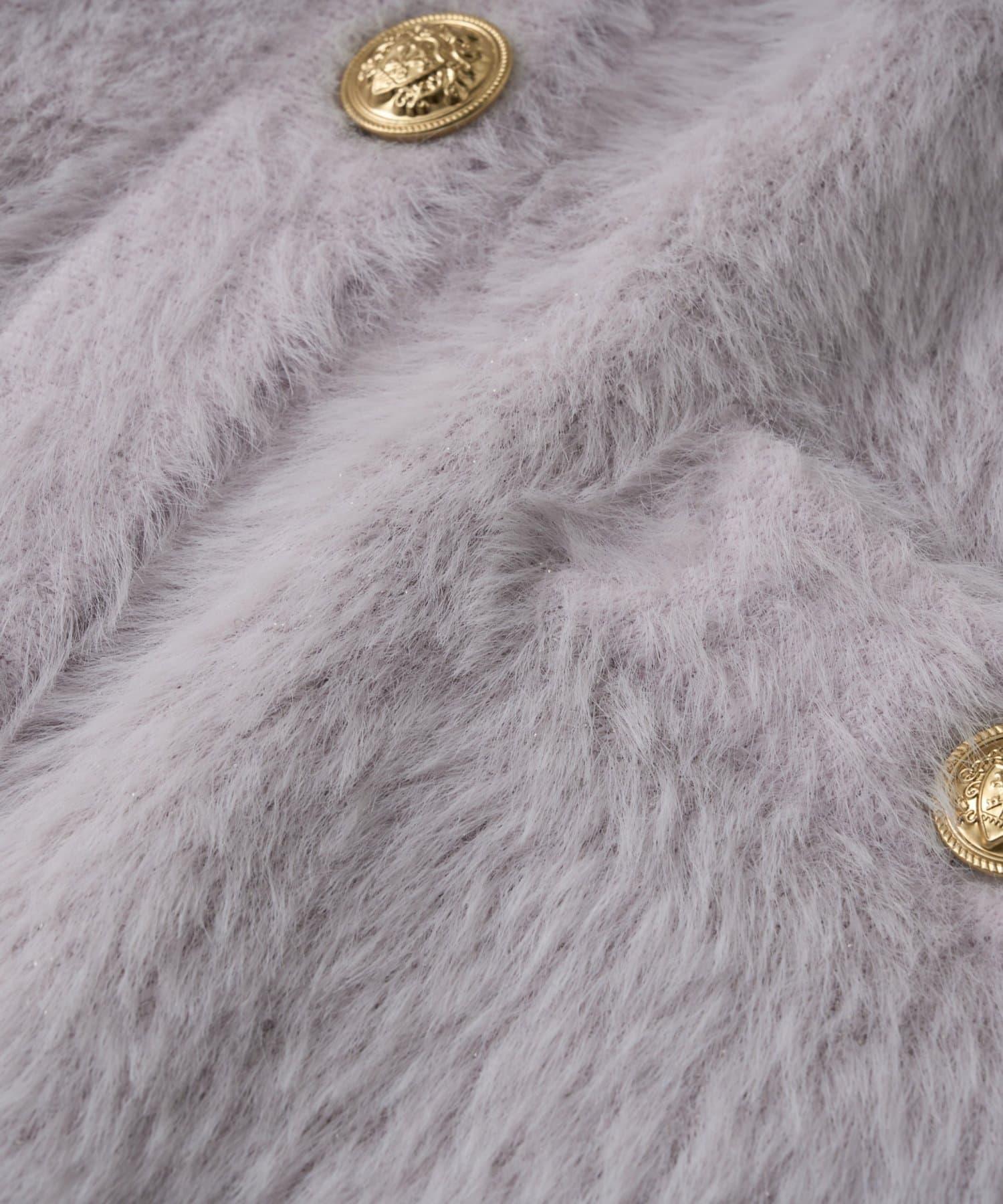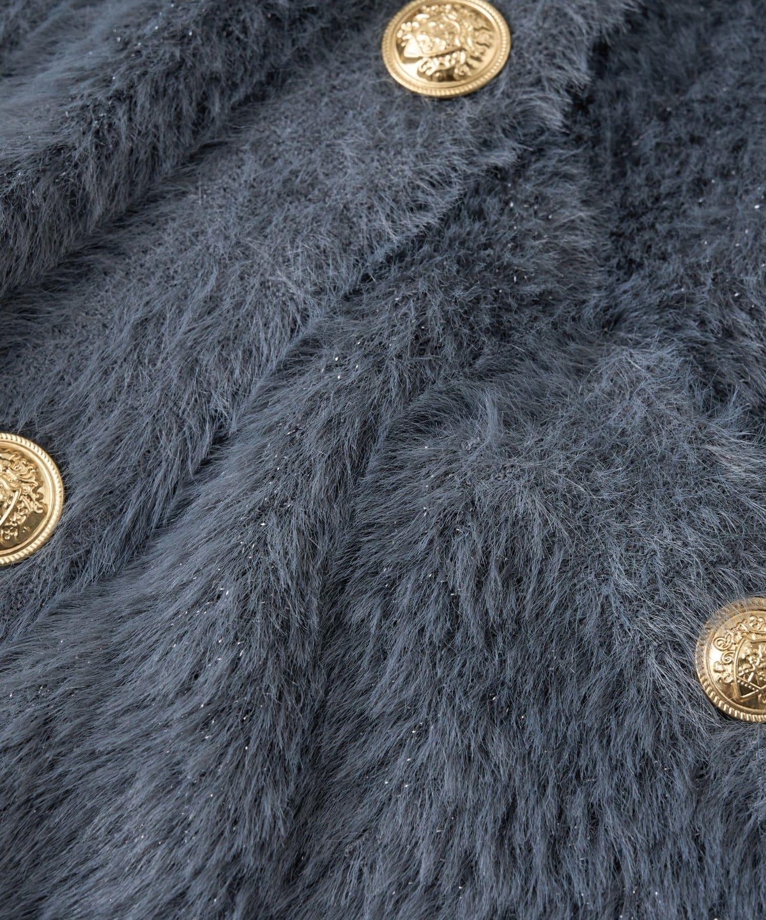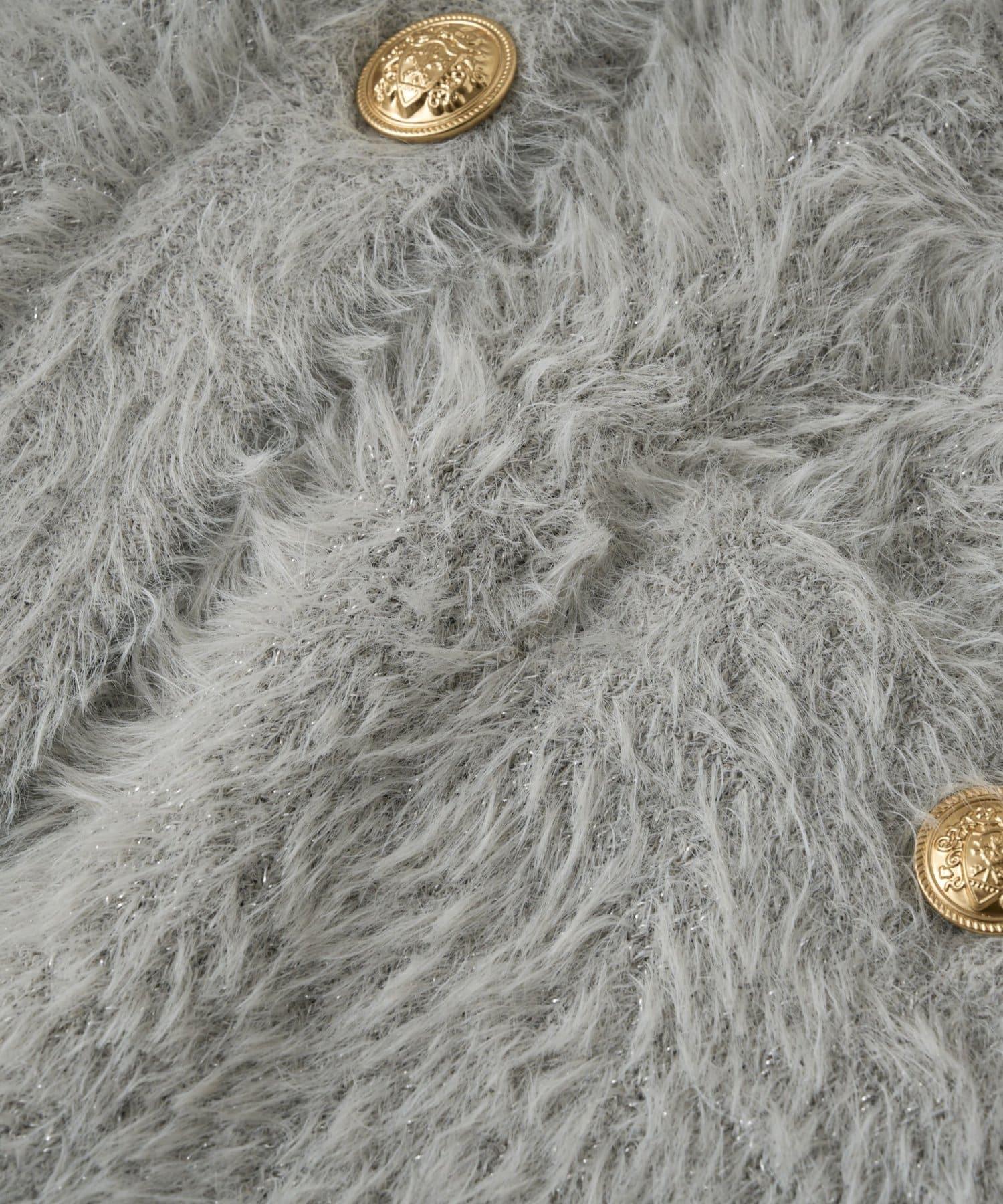 表情豐富優雅針織面料亮絲長毛金色紐扣開衫