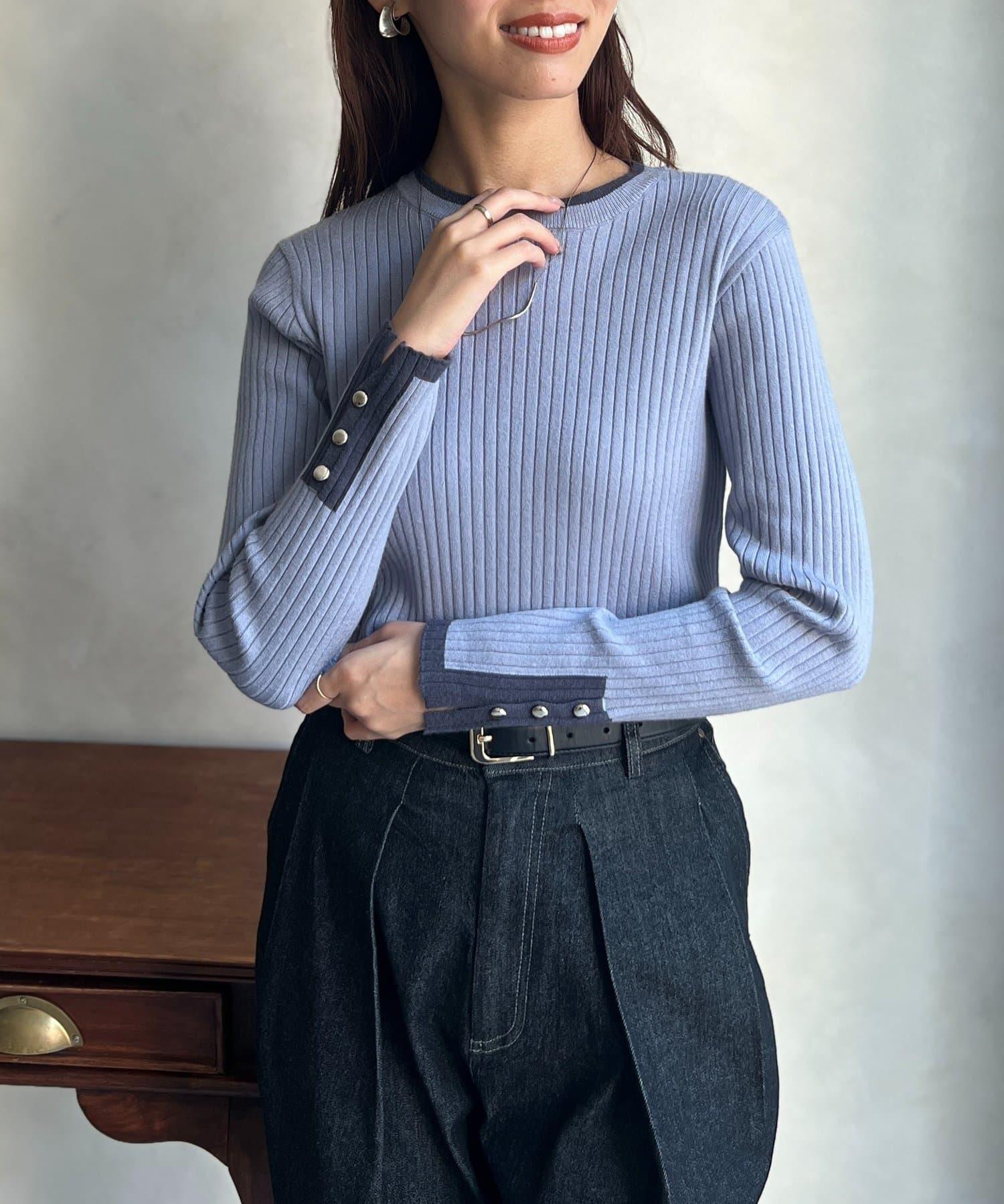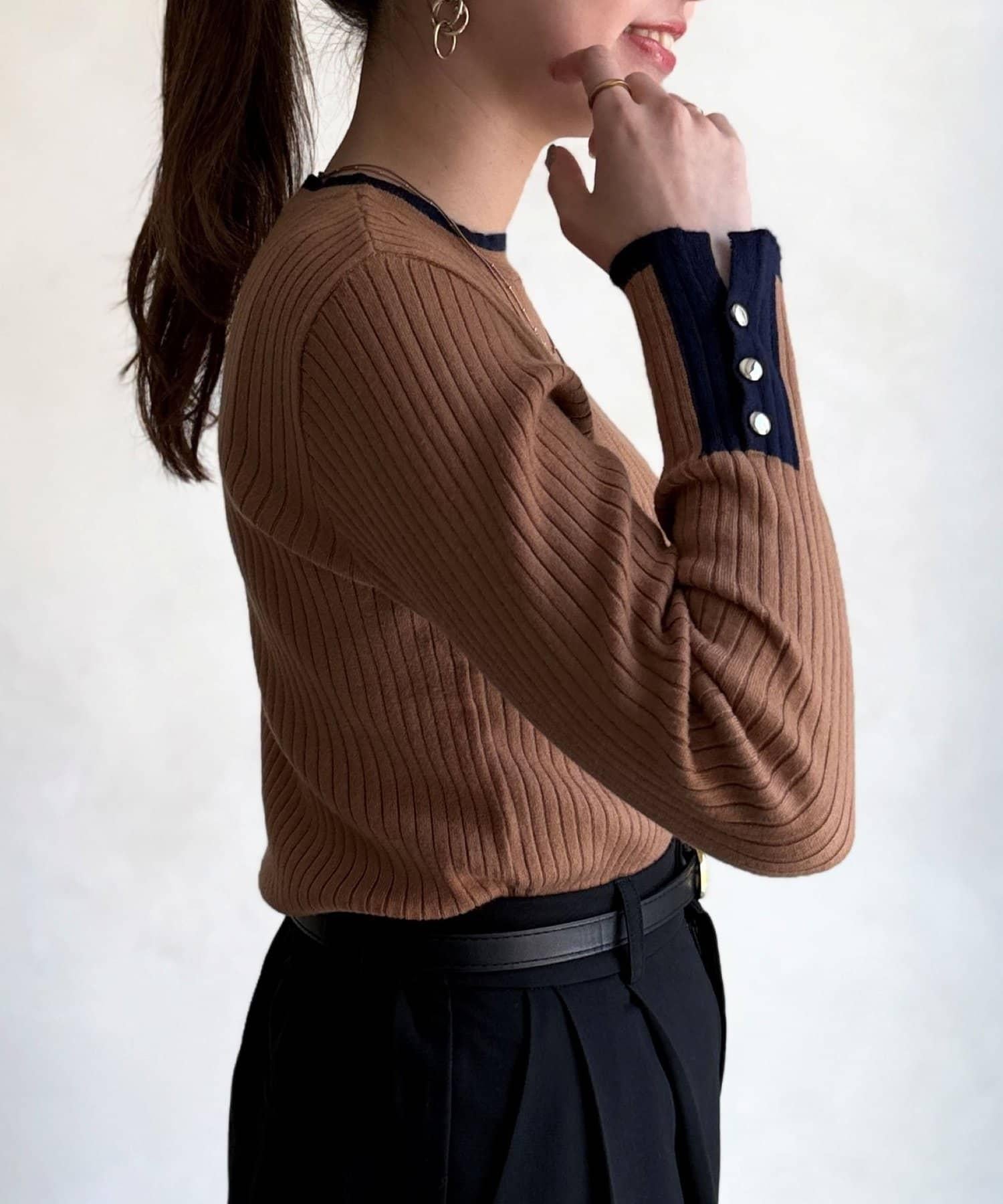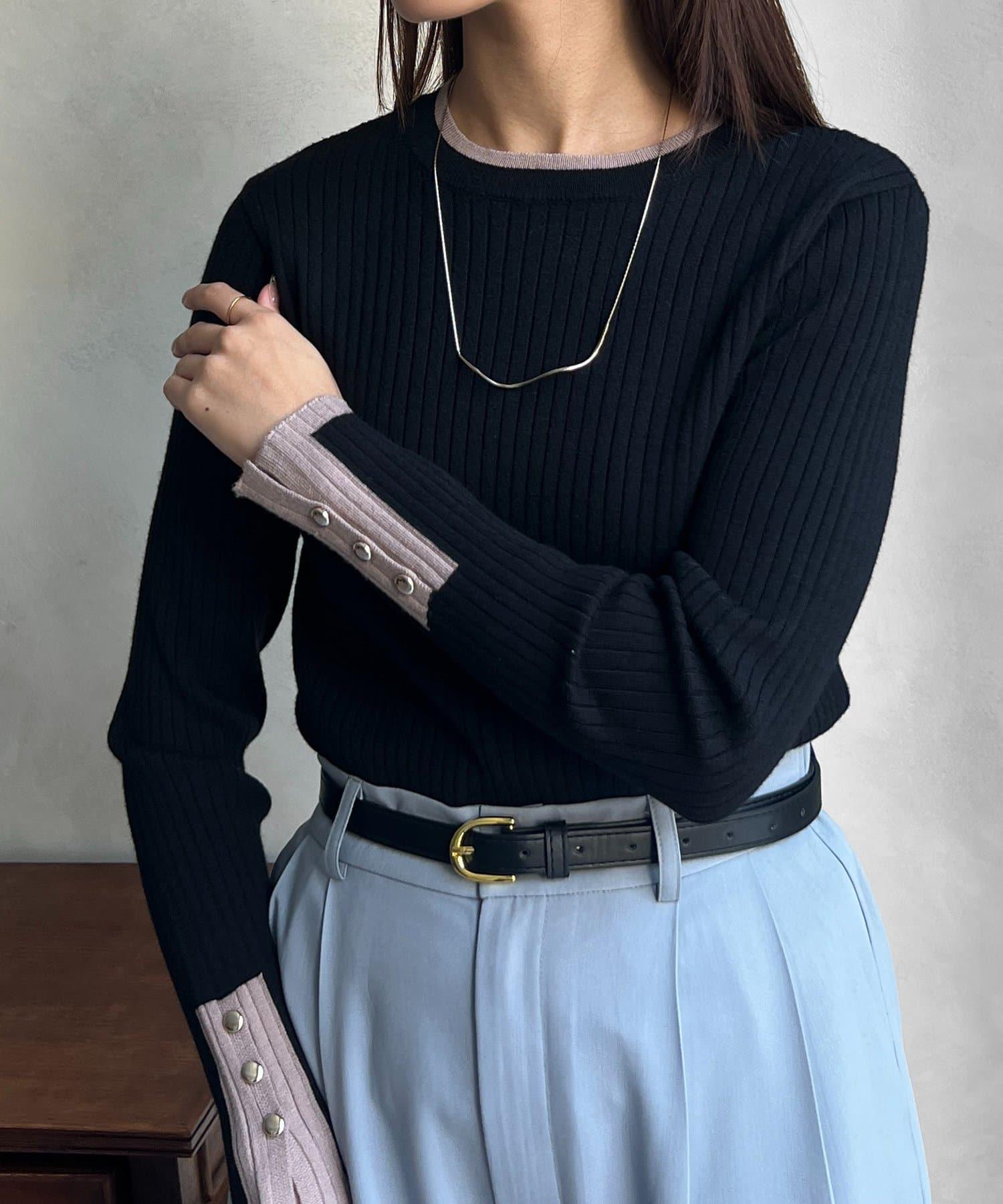 袖口紐扣拼色套頭衫