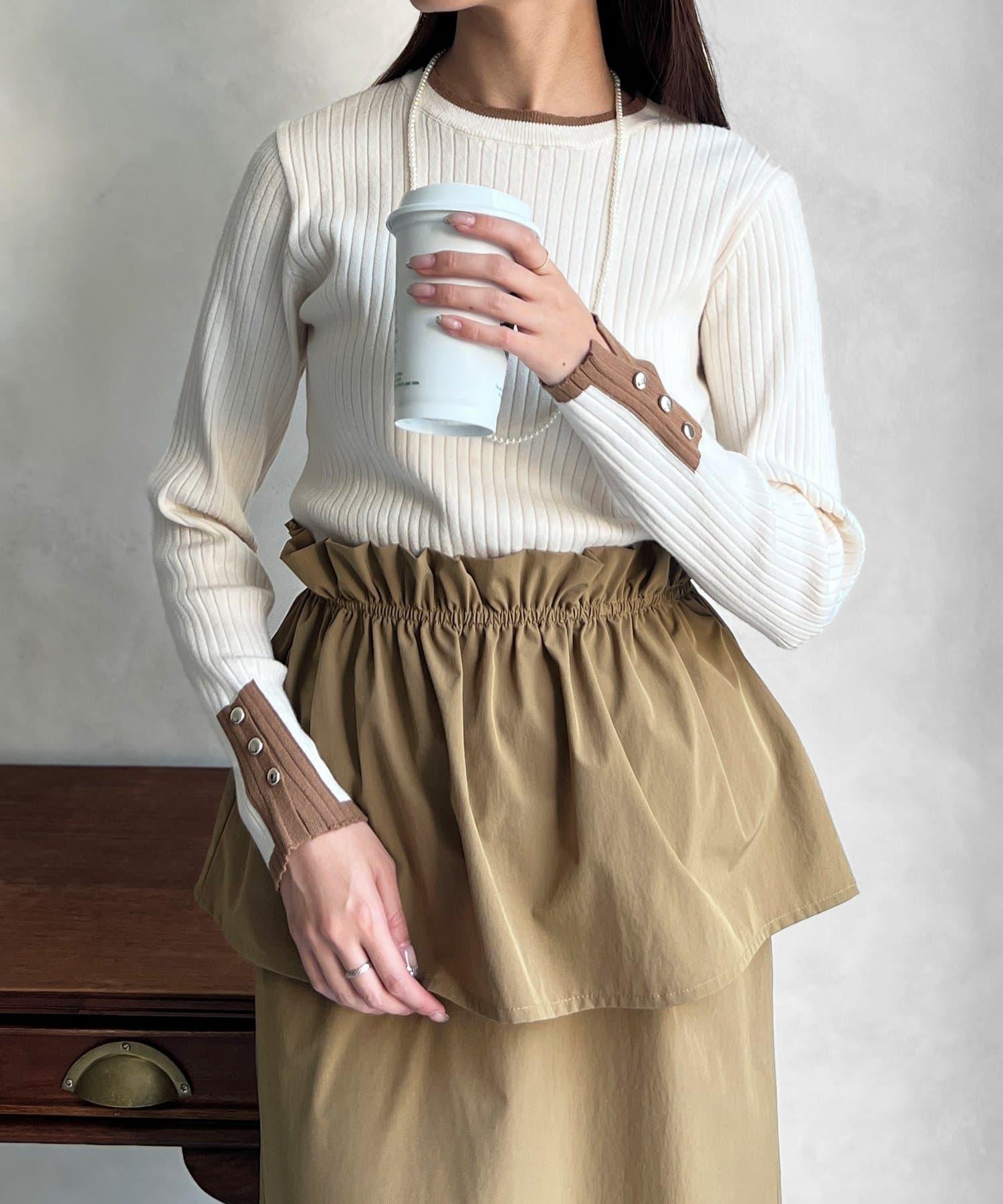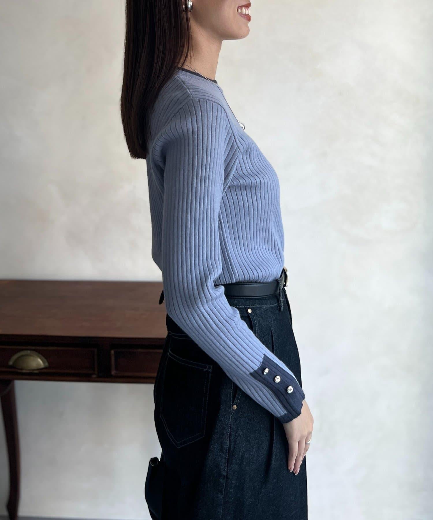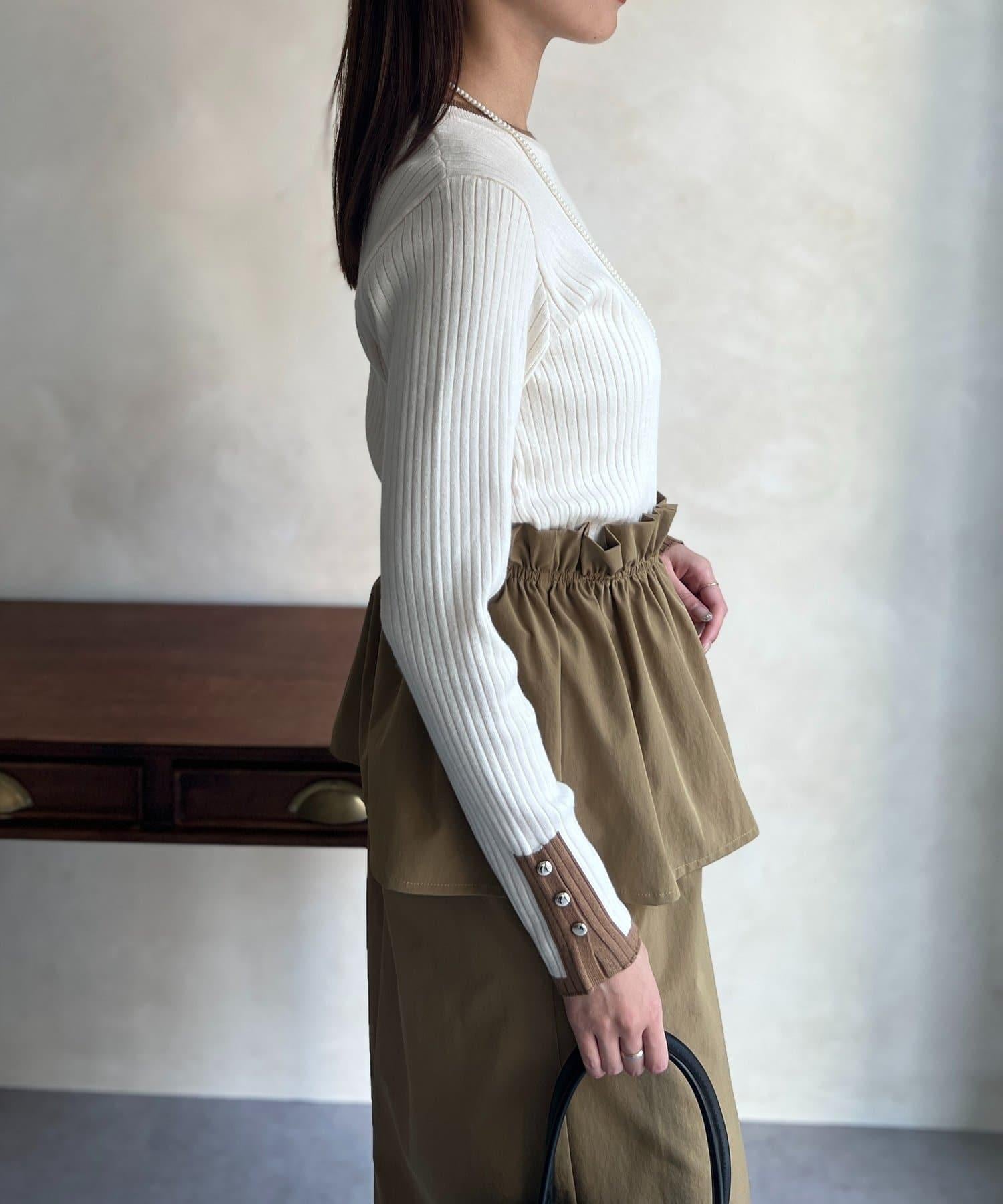 袖口紐扣拼色套頭衫