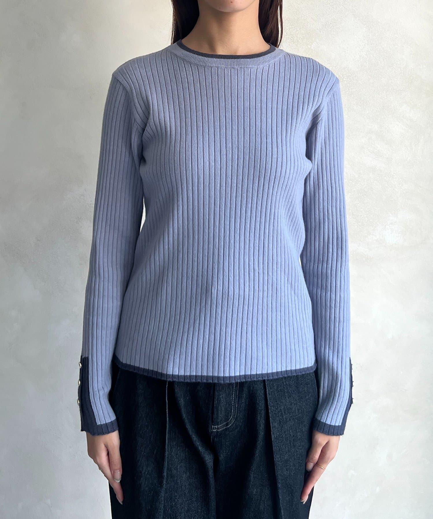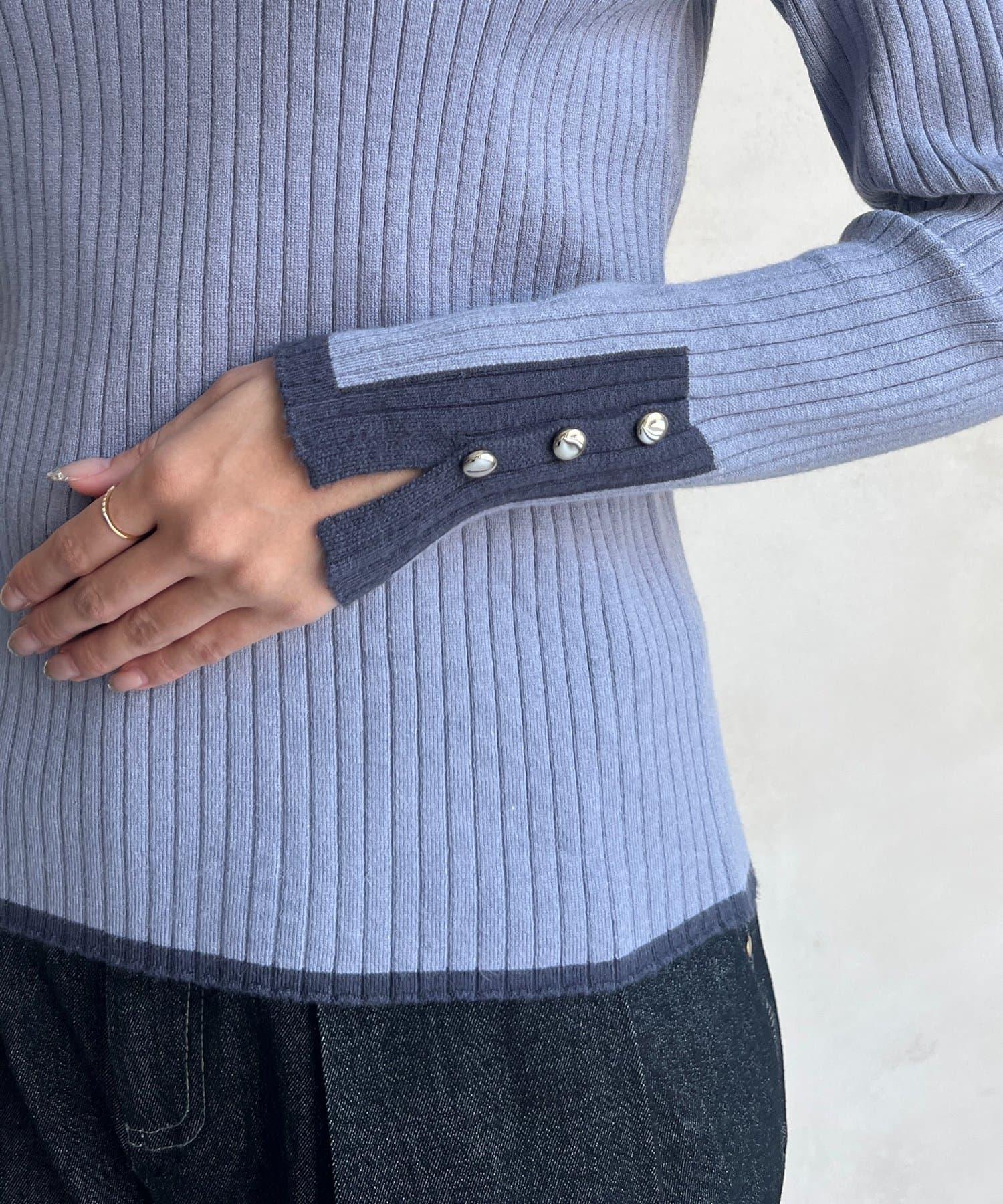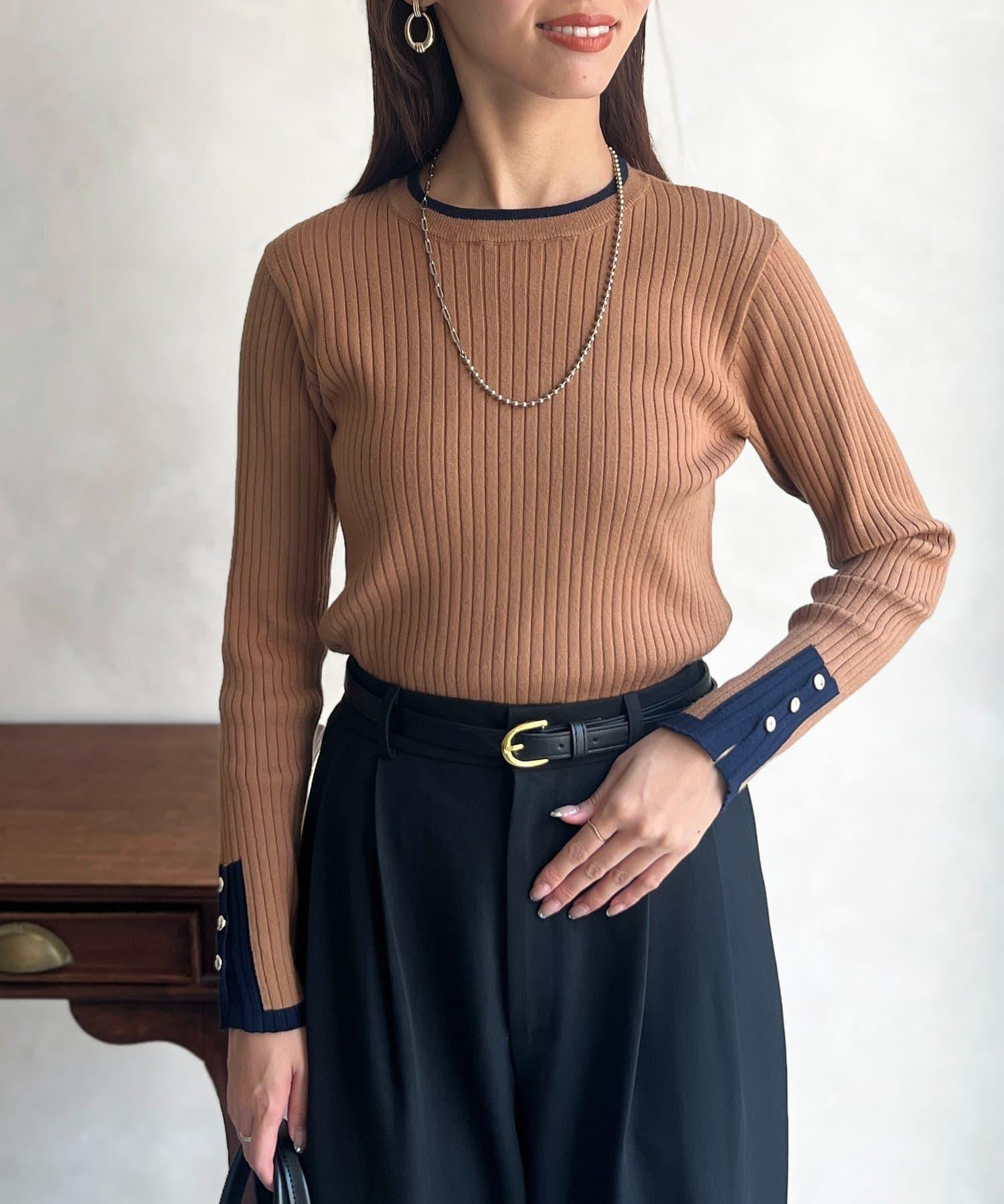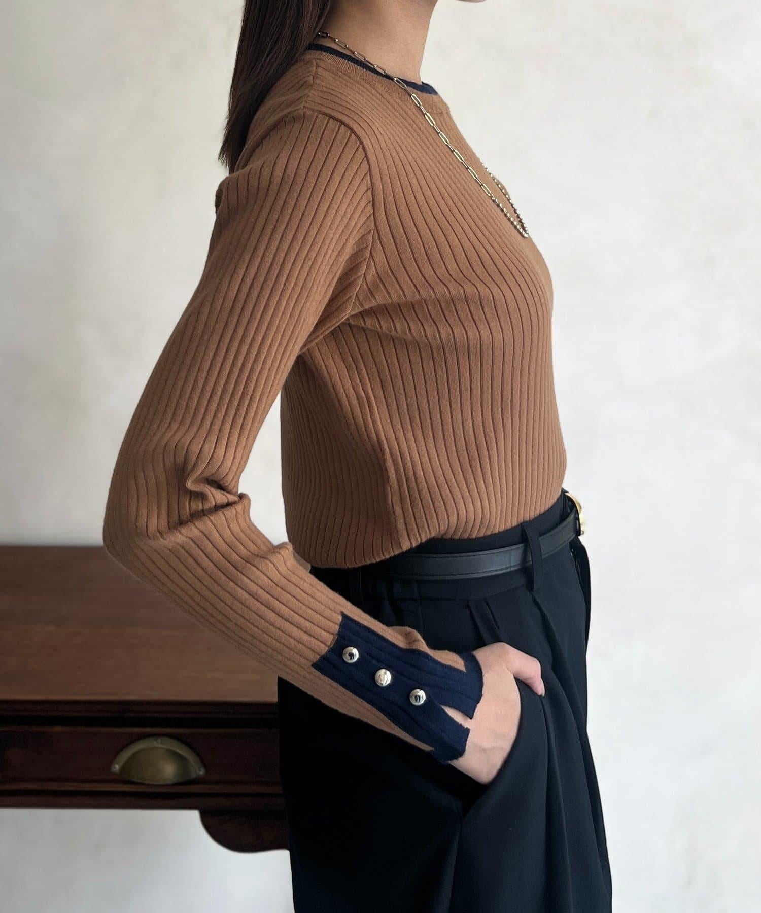 套頭衫,衣領和下襬顏色協調,袖口有金色紐扣。