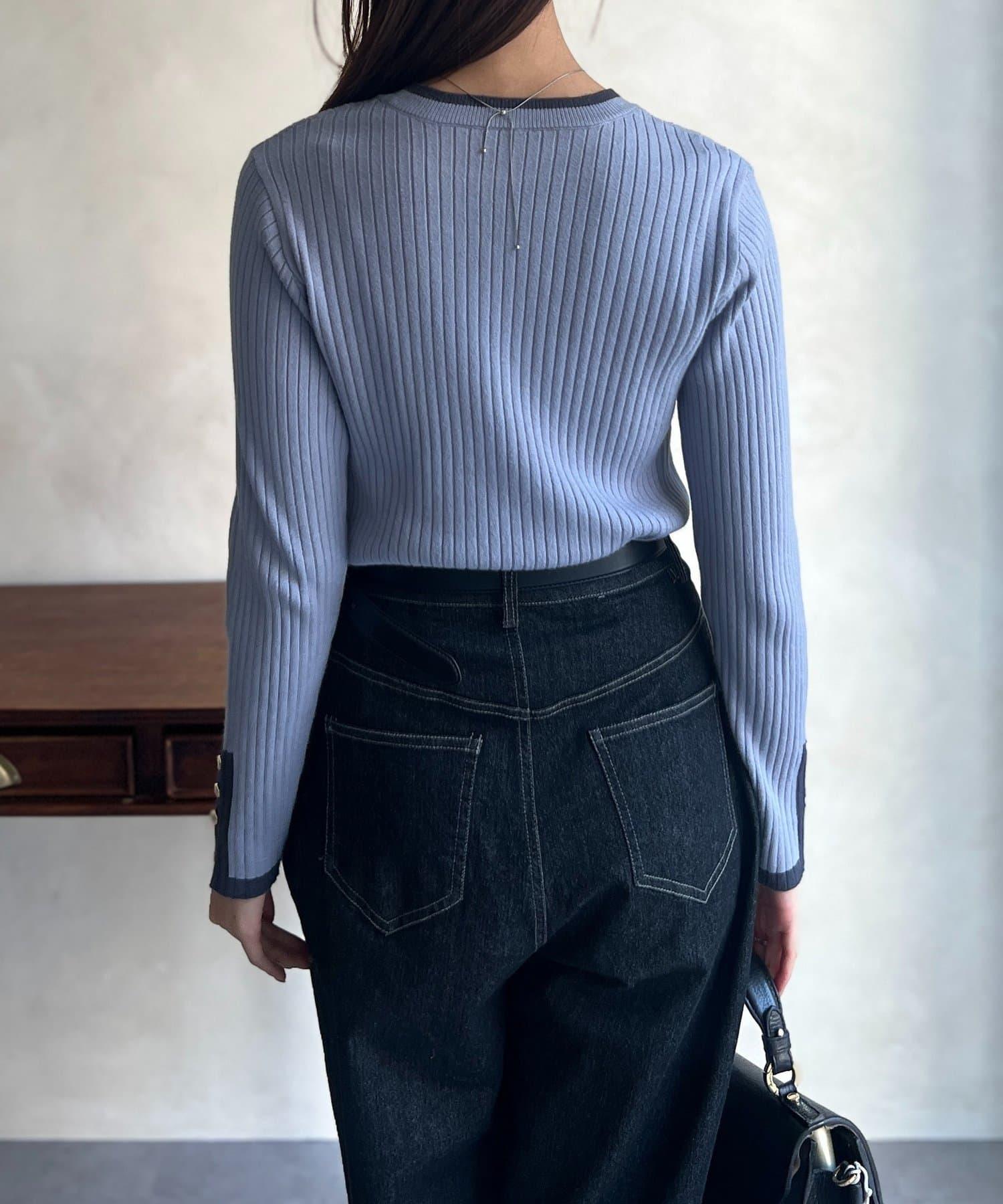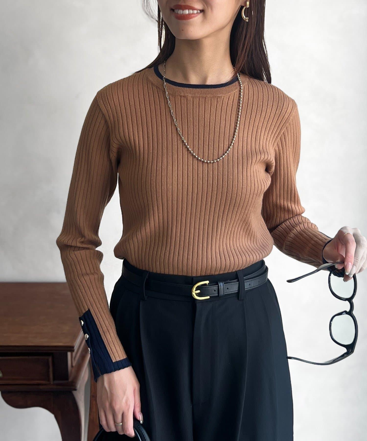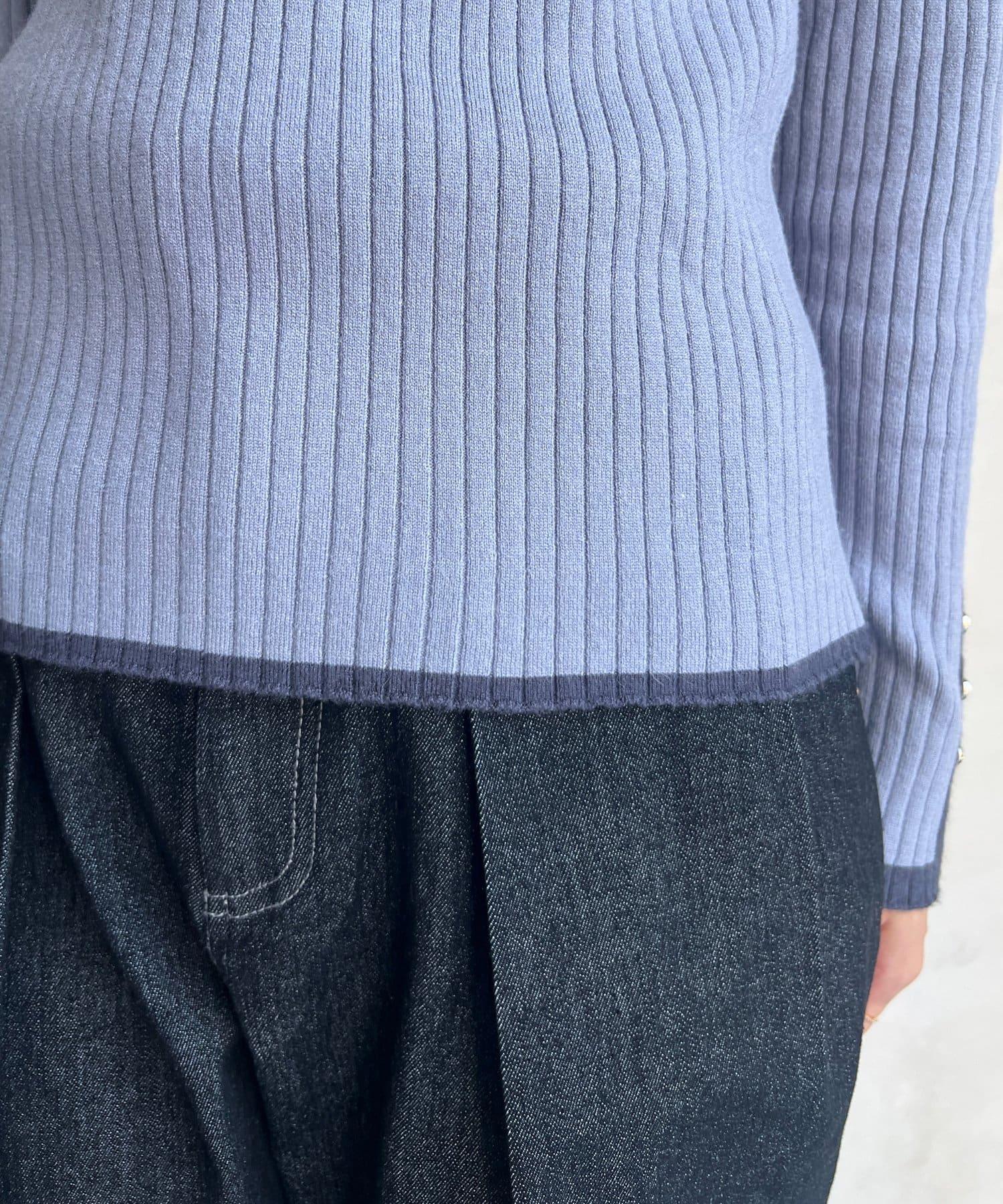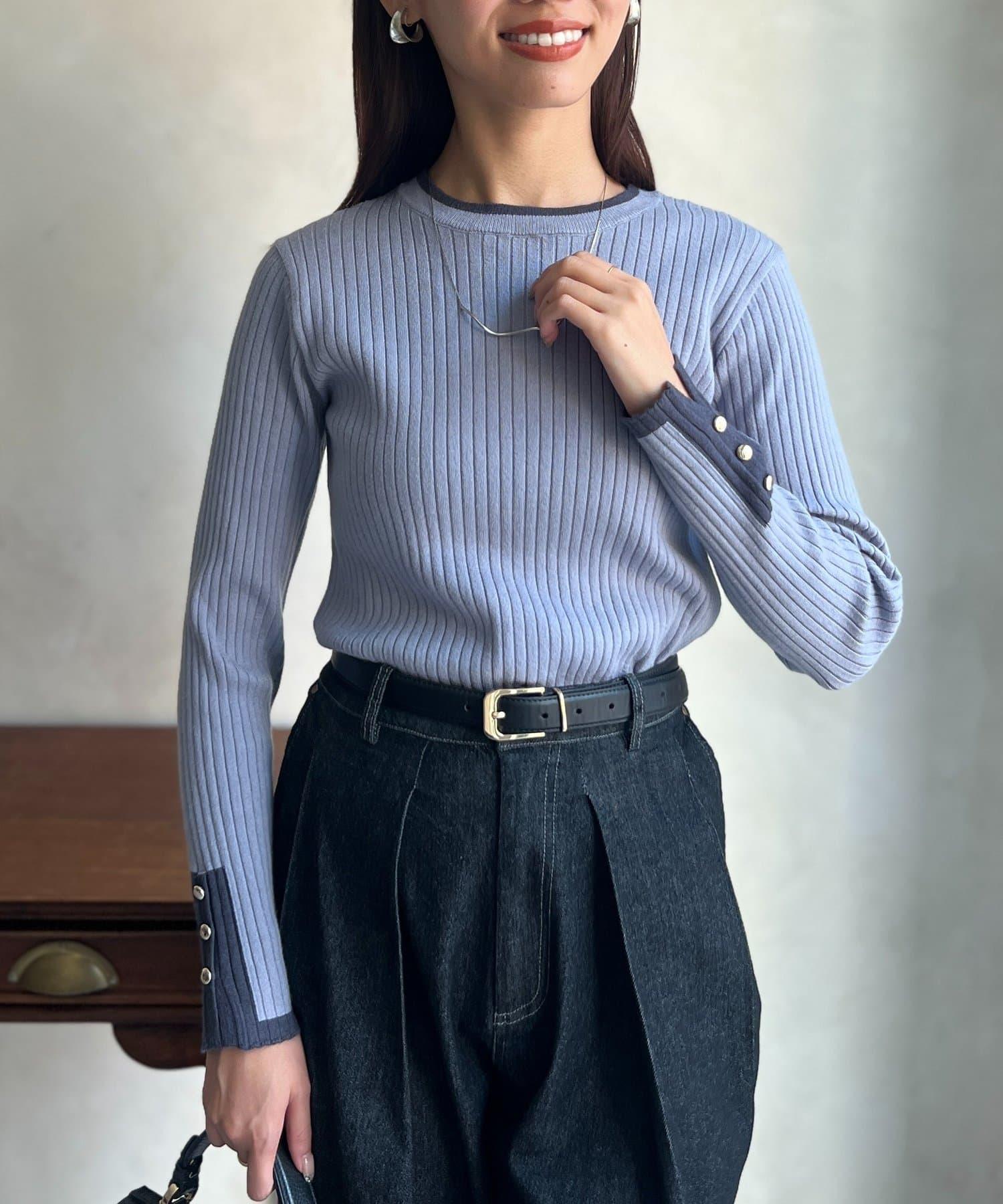 套頭衫,衣領和下襬顏色協調,袖口有金色紐扣。