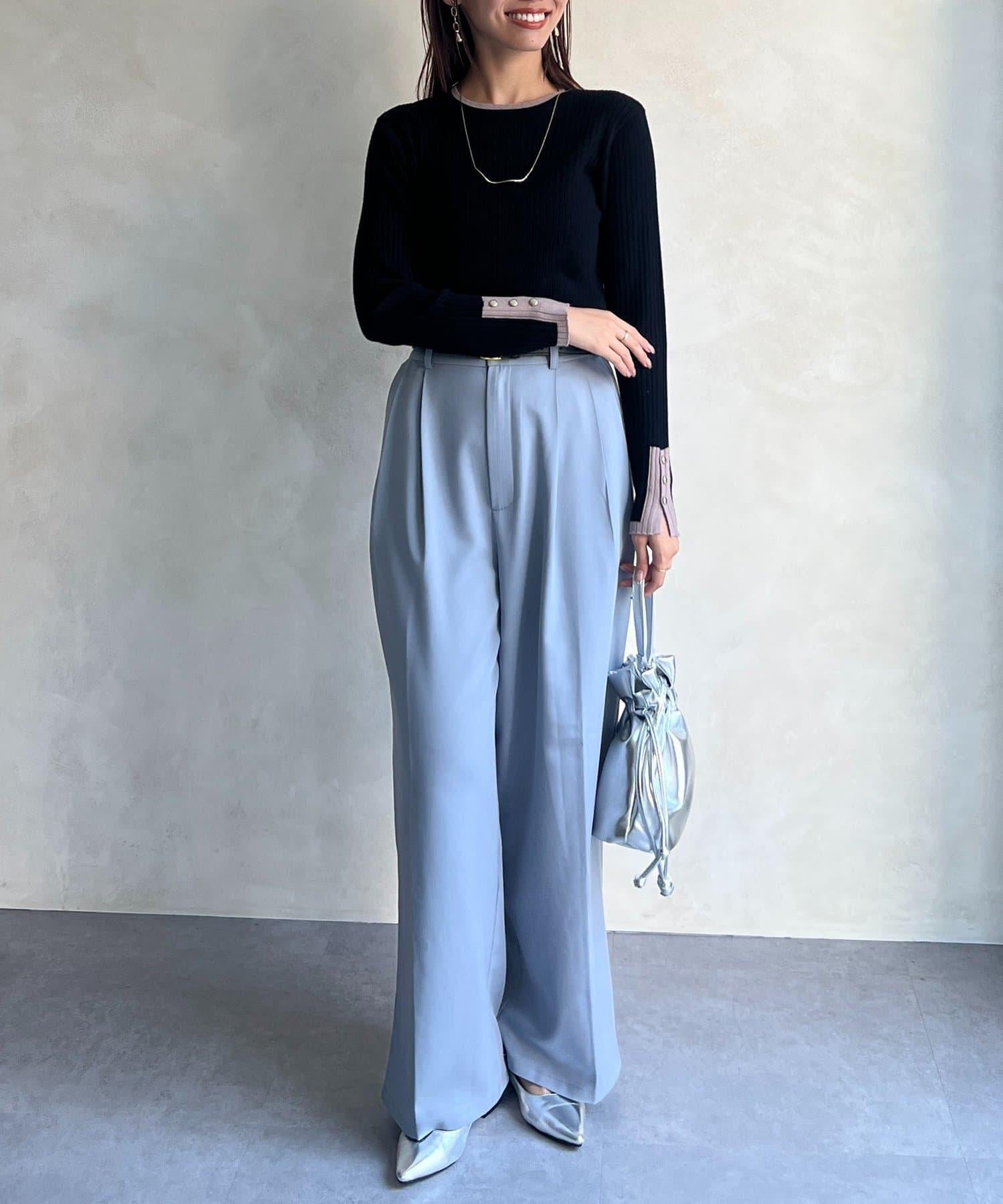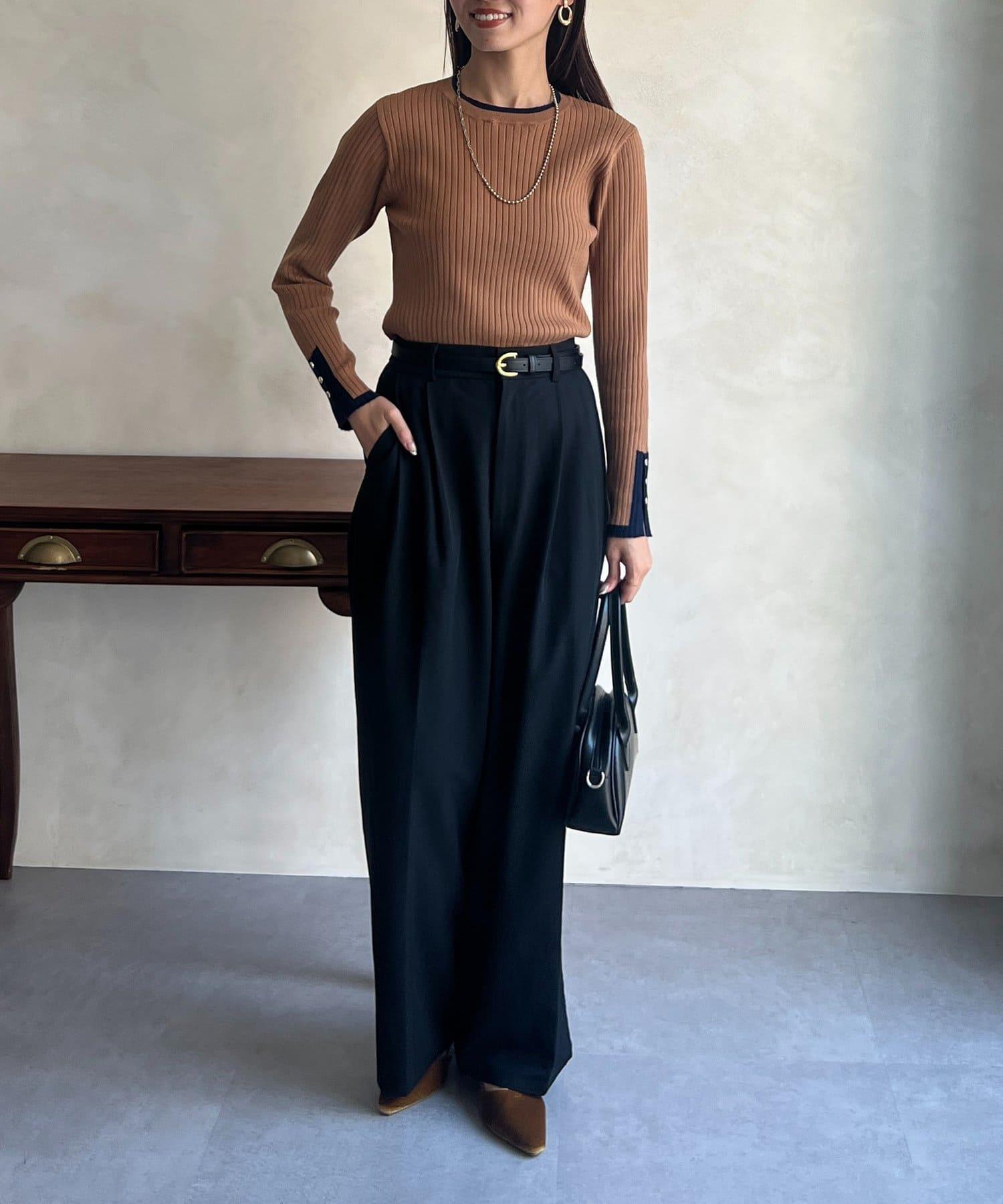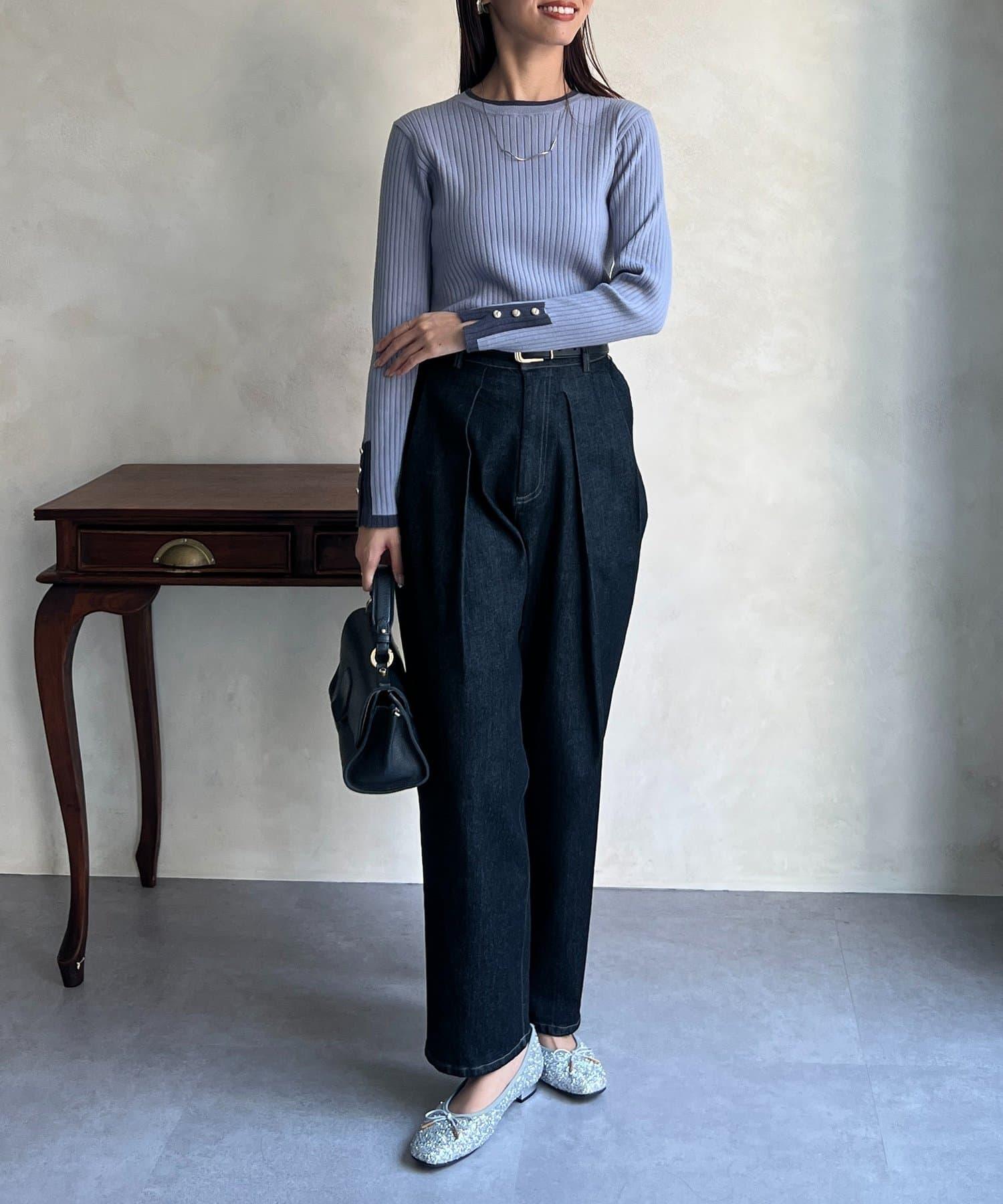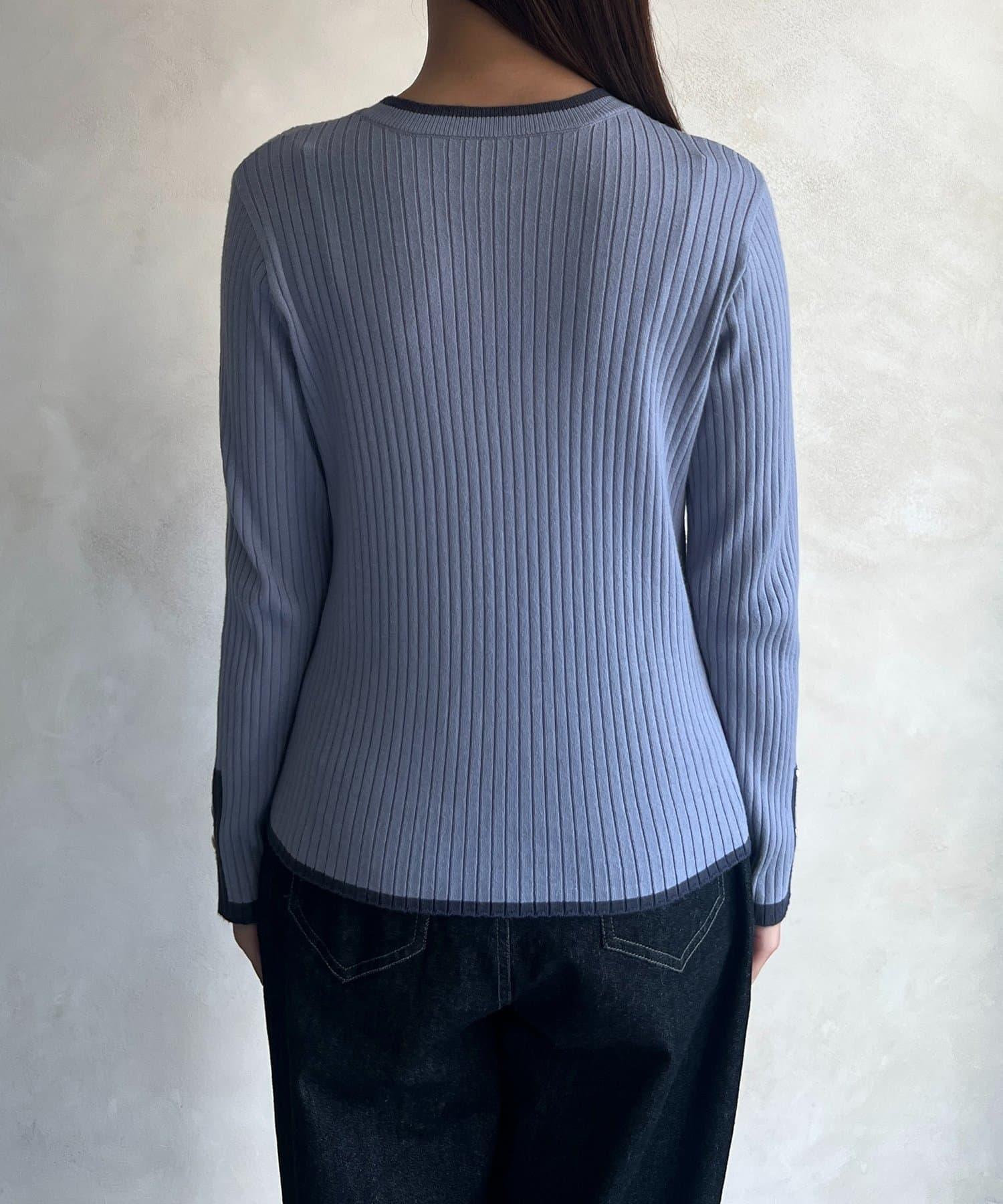 套頭衫,衣領和下襬顏色協調,袖口有金色紐扣。