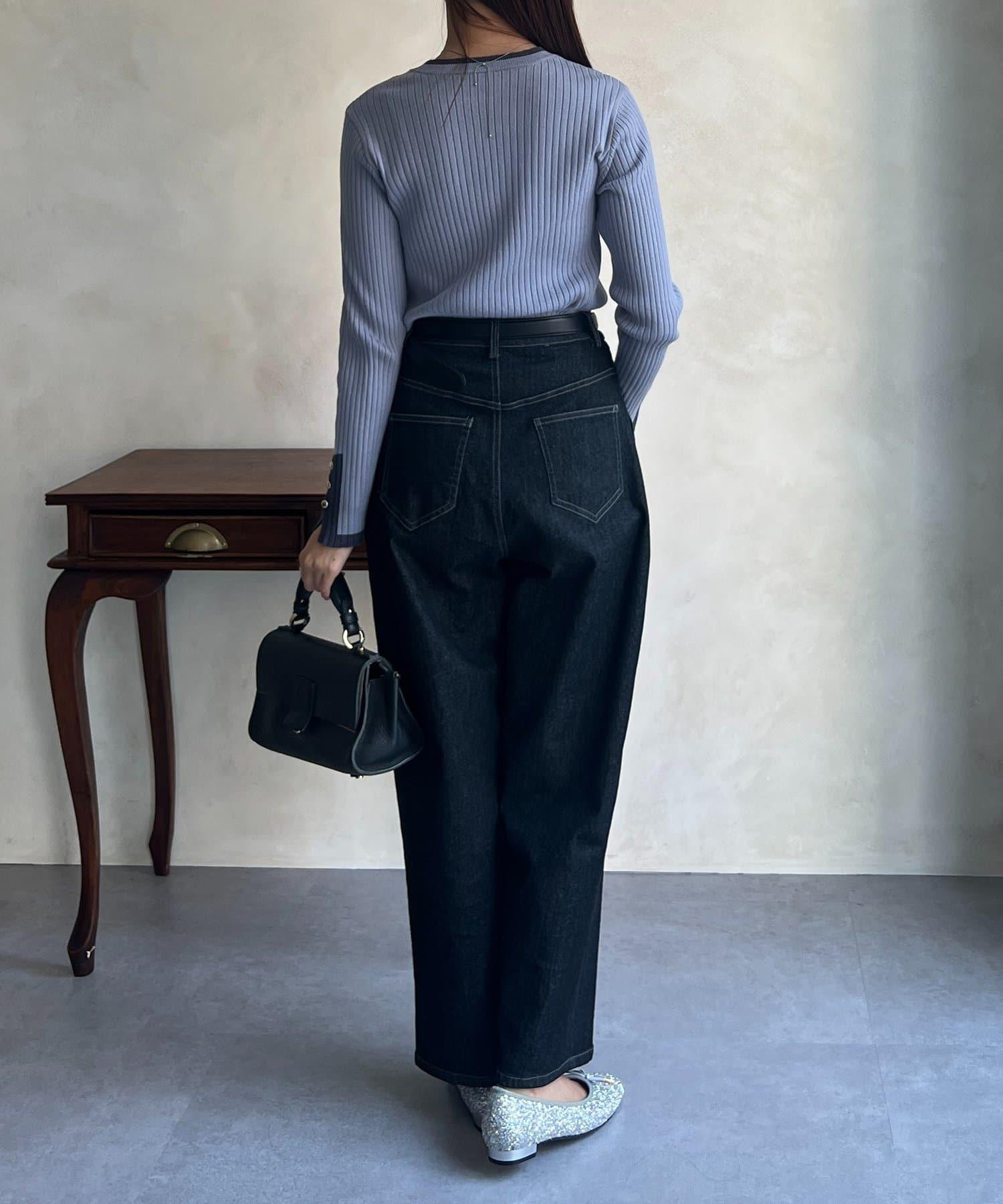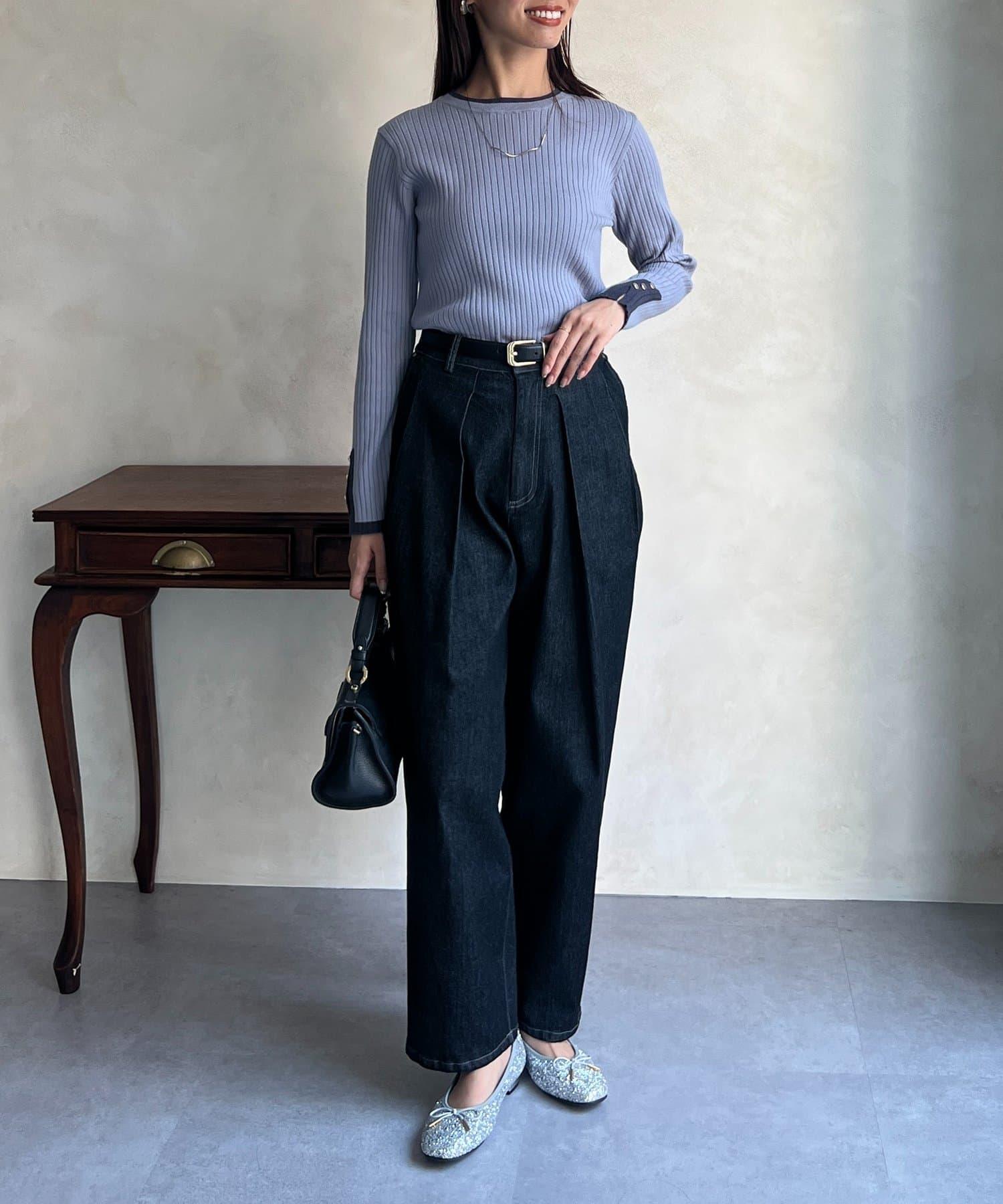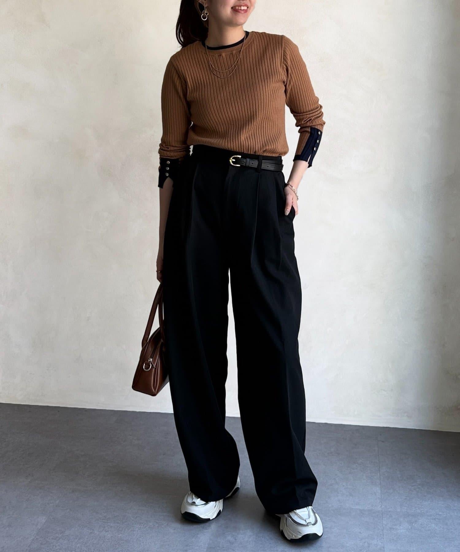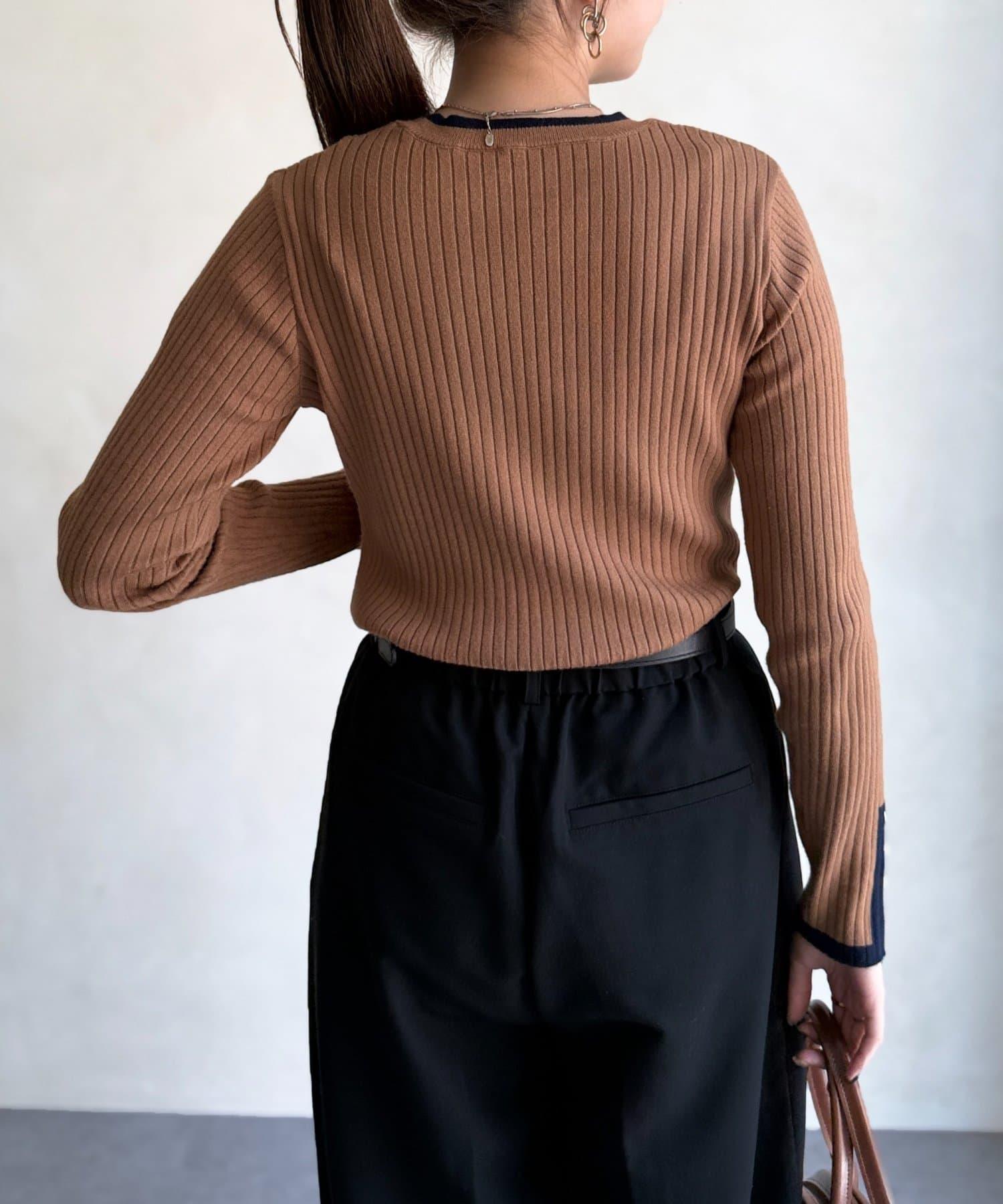 套頭衫,衣領和下襬顏色協調,袖口有金色紐扣。