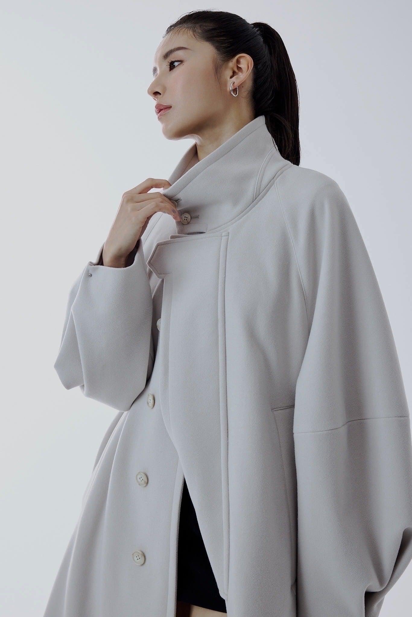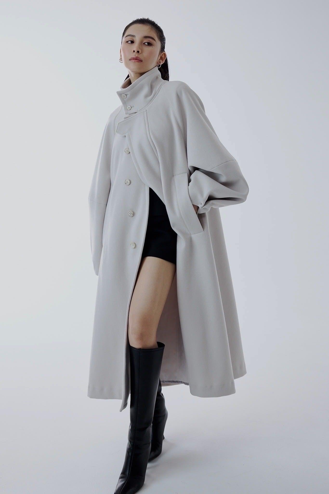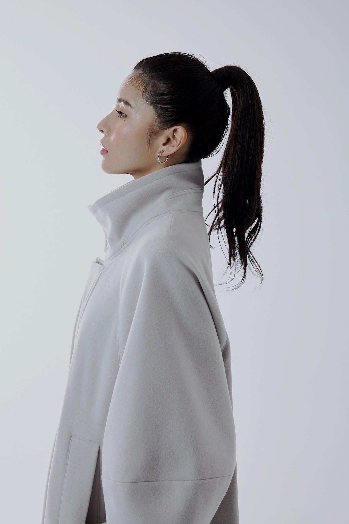 適度嫵媚的 A 字形輪廓和立體袖子設計營造出女性的柔美曲線,而背部的收褶設計則為背面增添了美感。