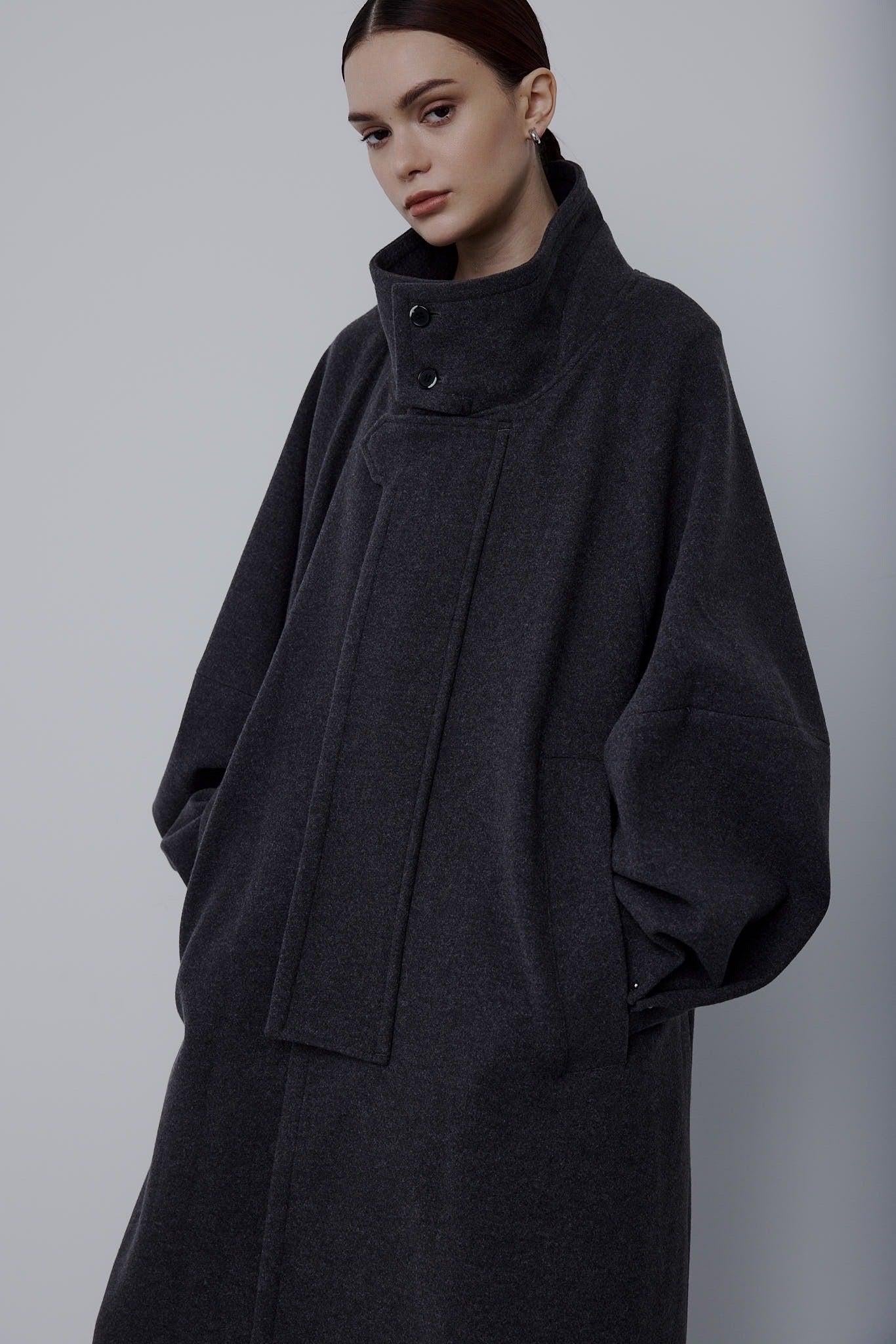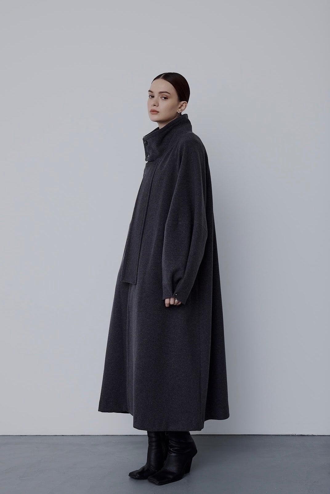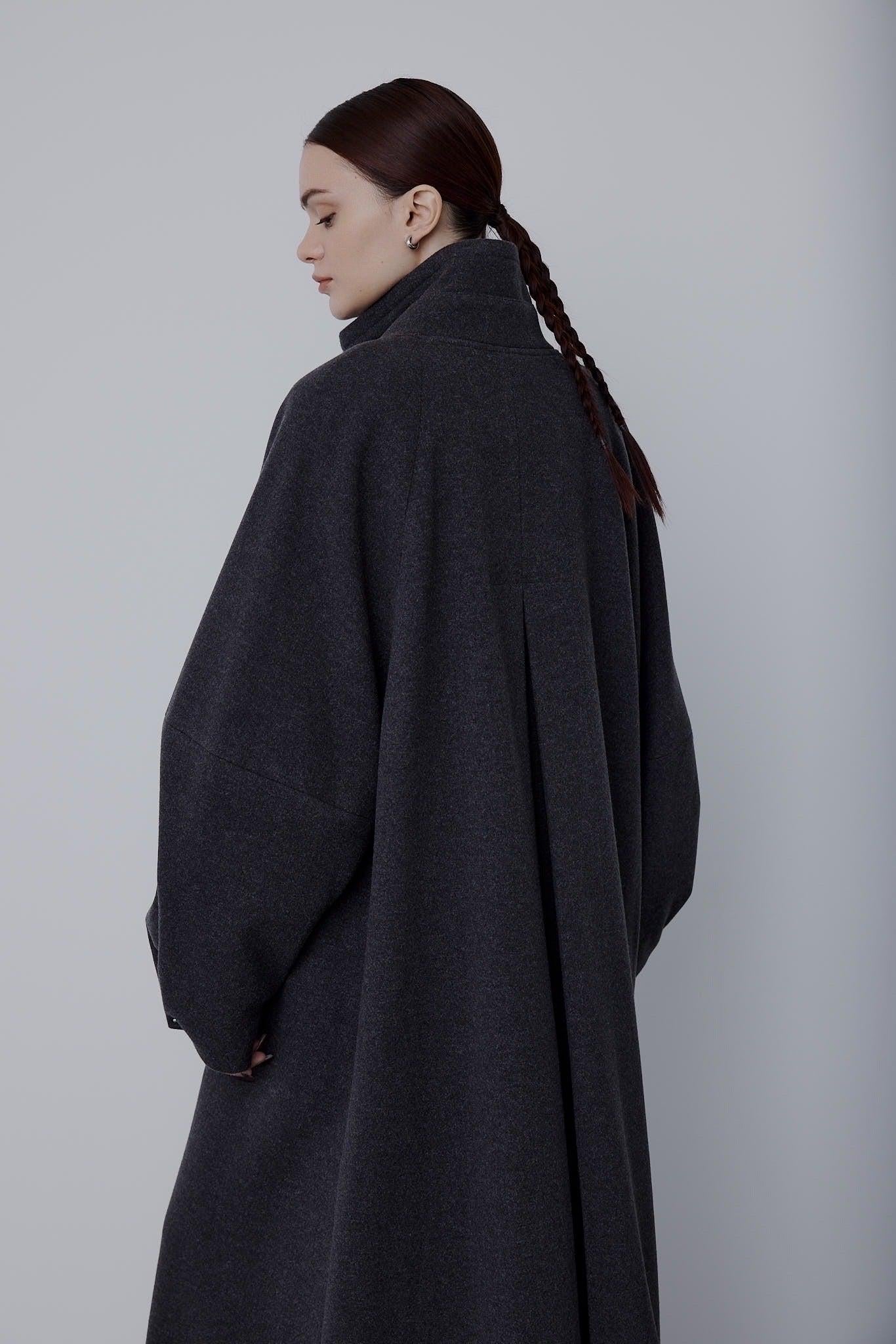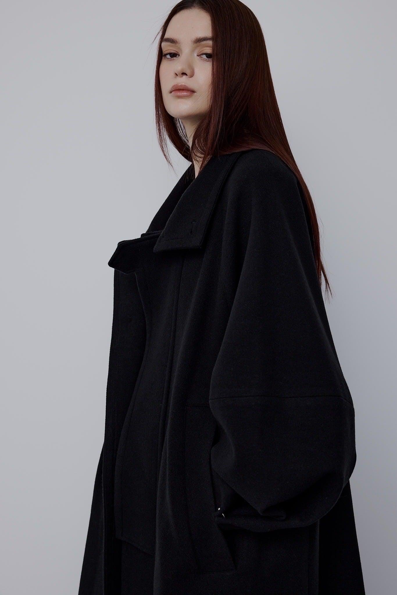 適度嫵媚的 A 字形輪廓和立體袖子設計營造出女性的柔美曲線,而背部的收褶設計則為背面增添了美感。