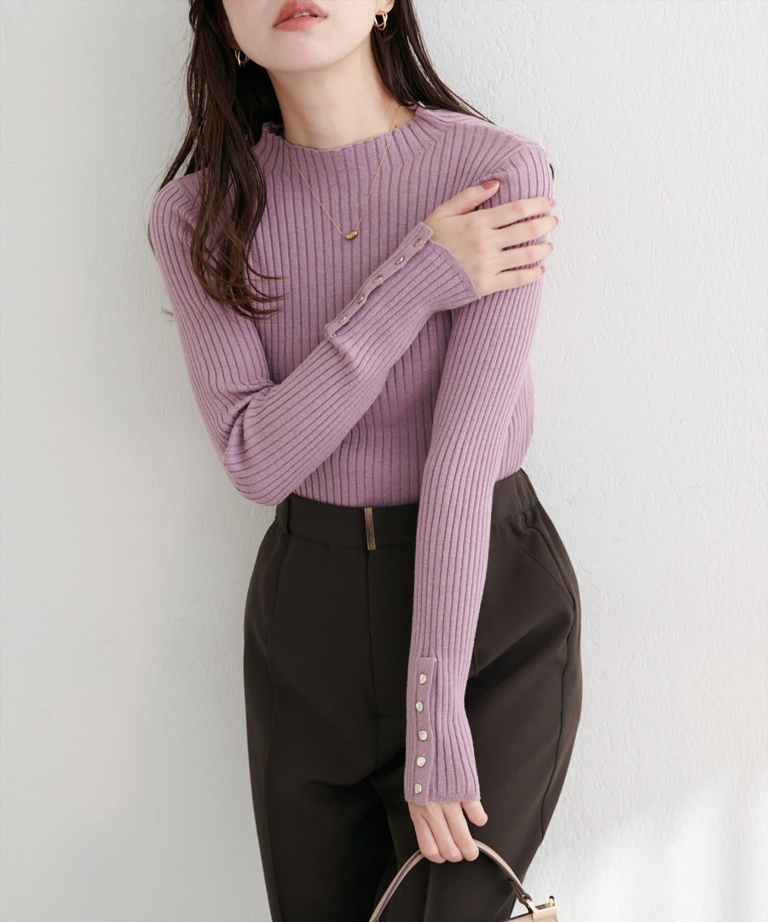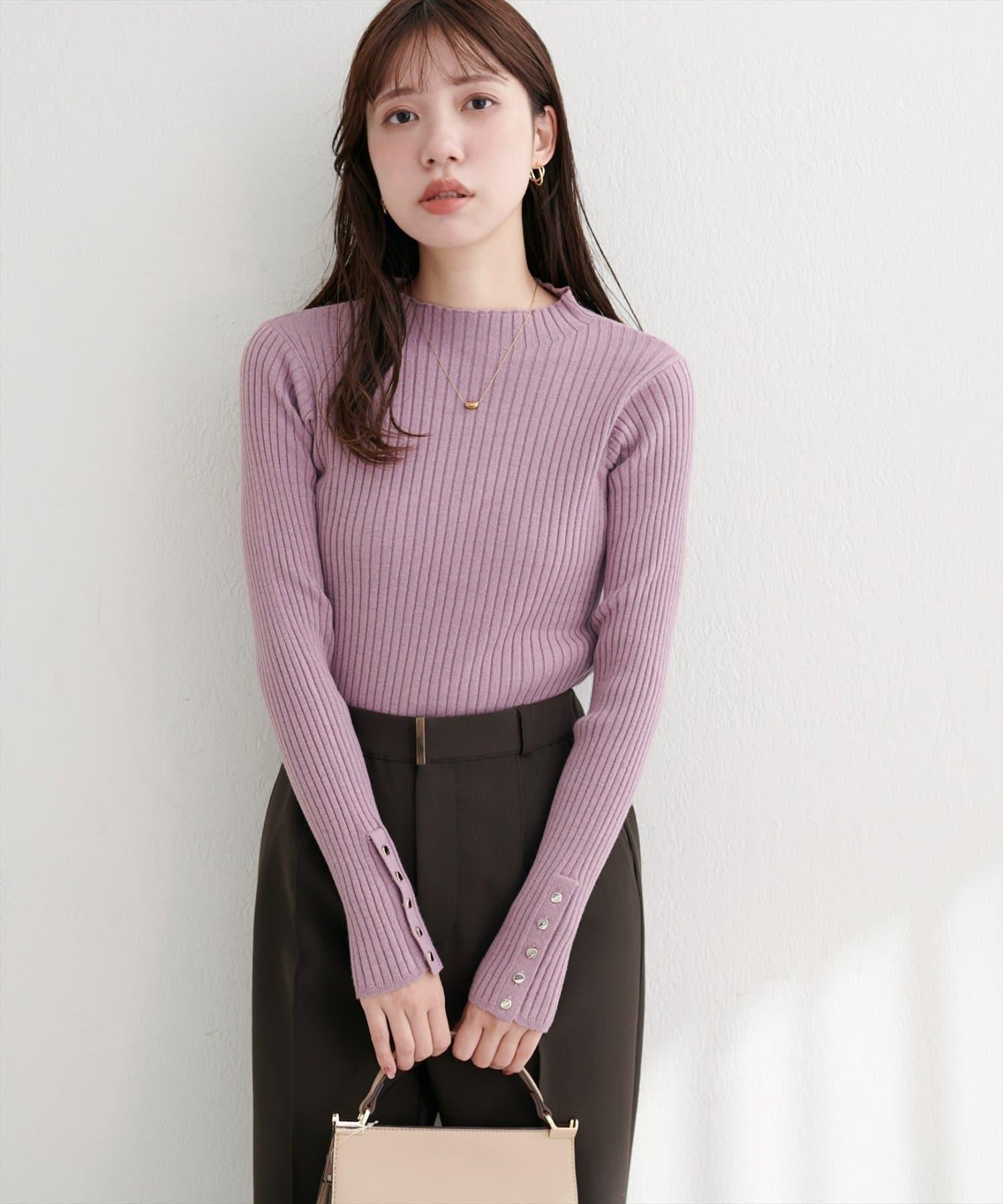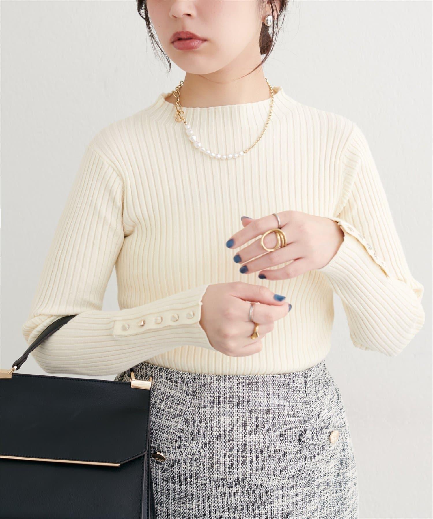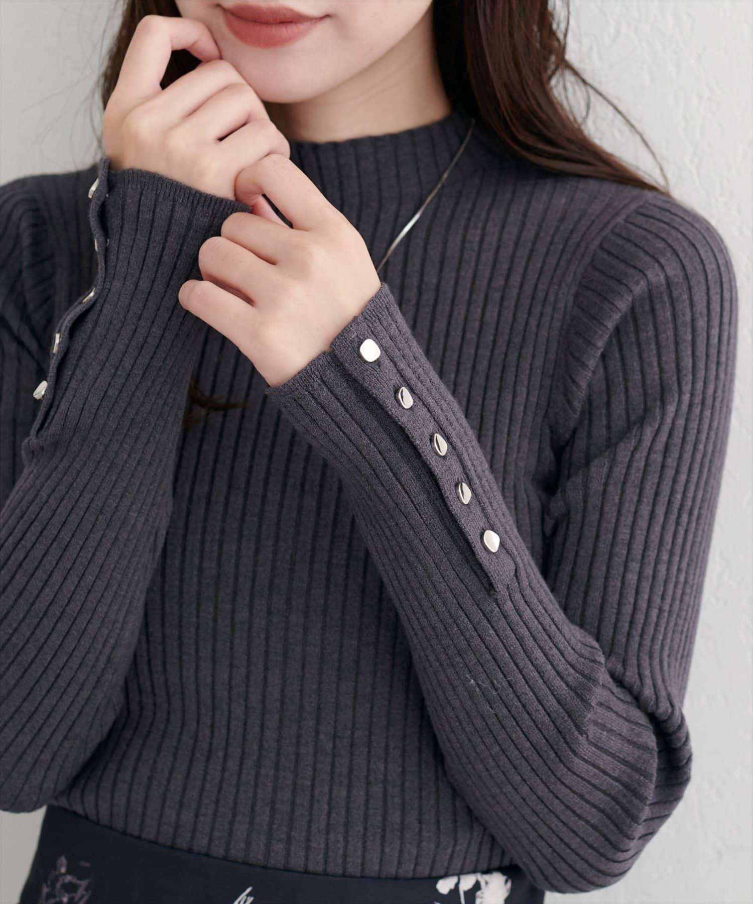 高領羅紋針織衫採用柔軟蓬鬆的面料製成,袖子上的粘扣自然美觀。