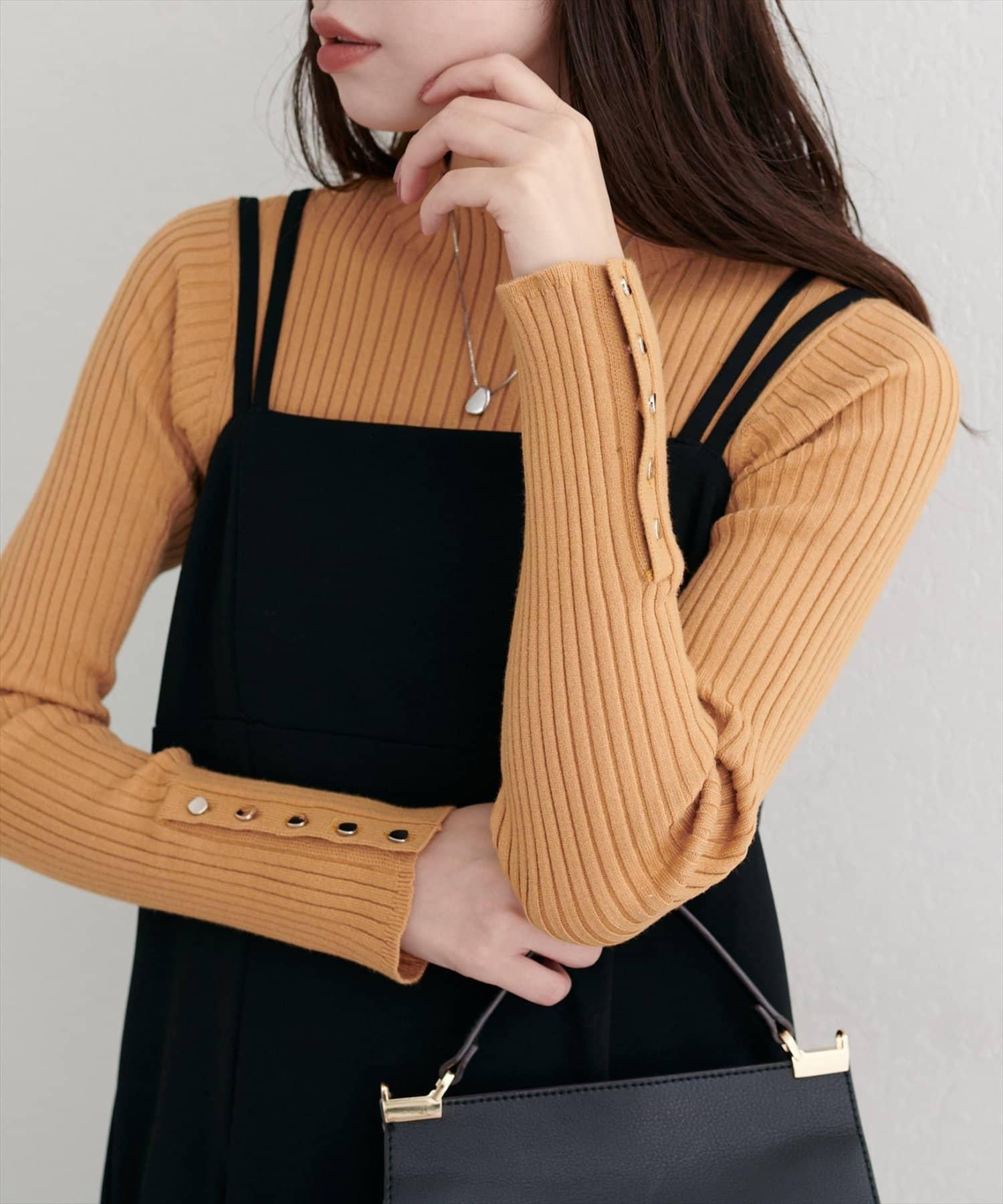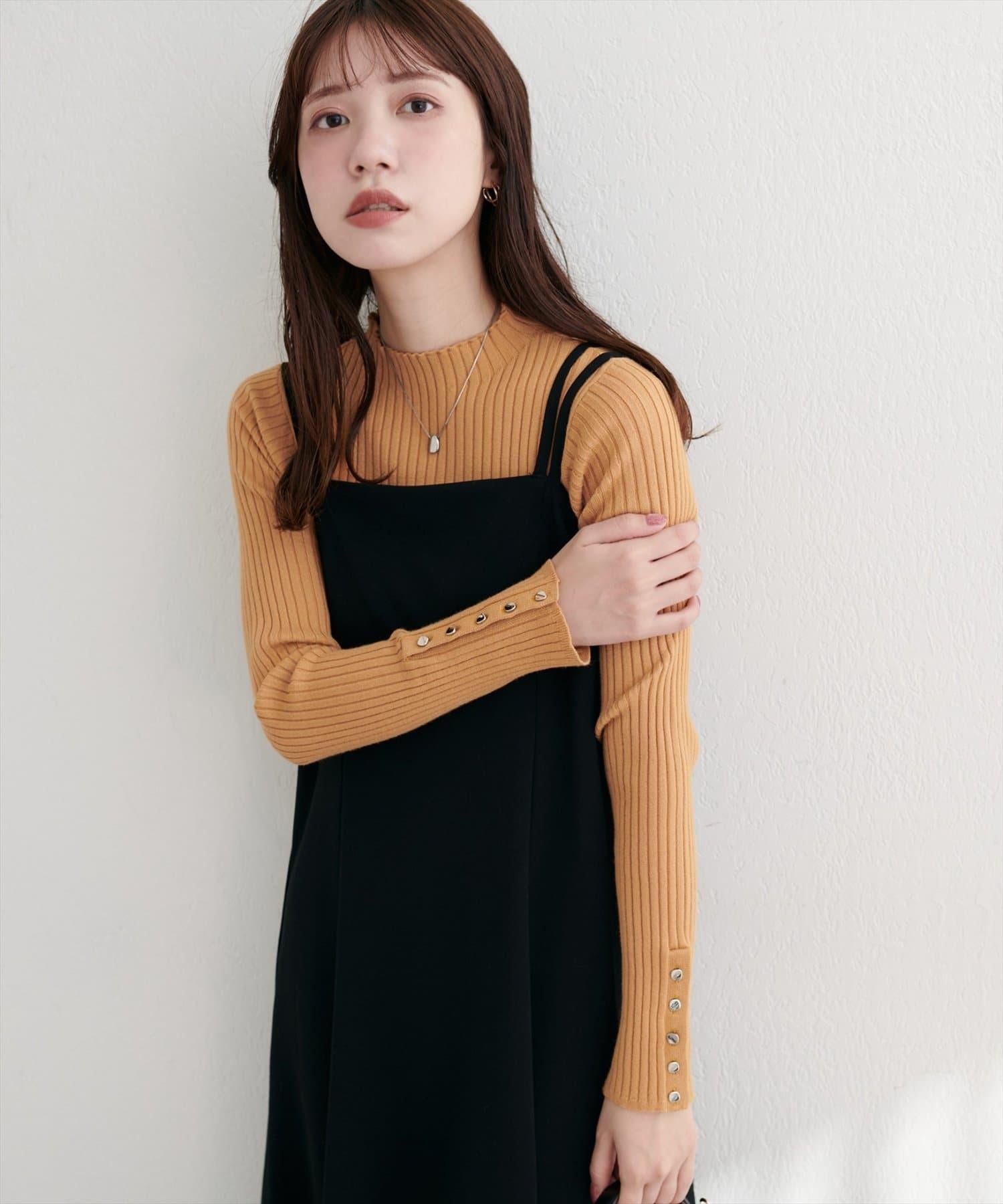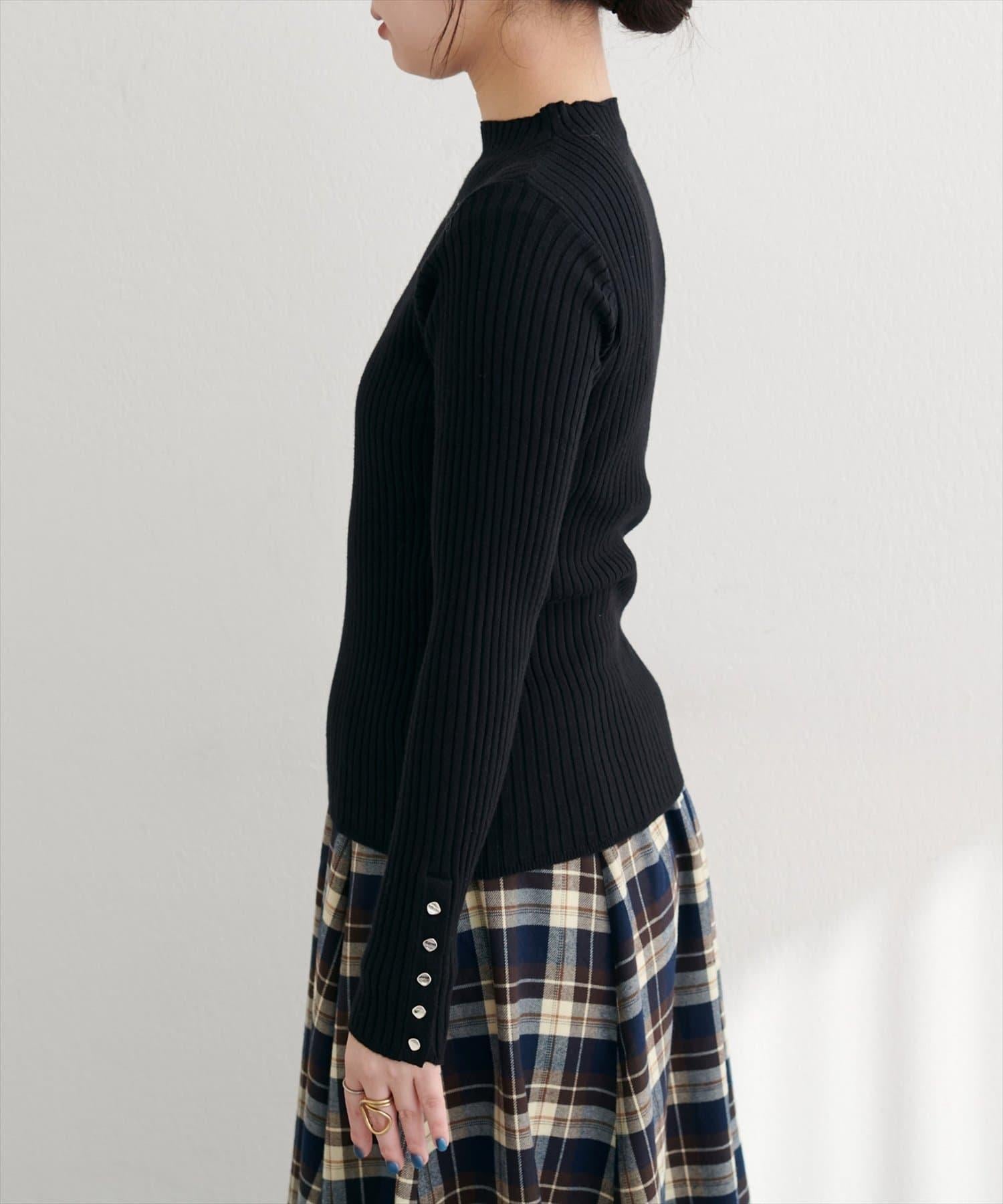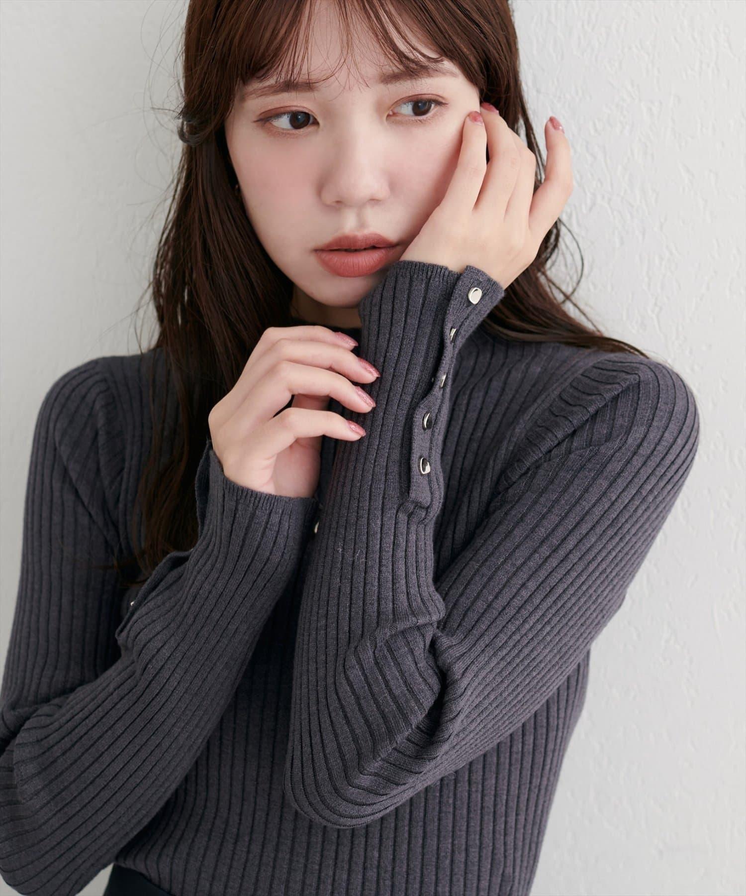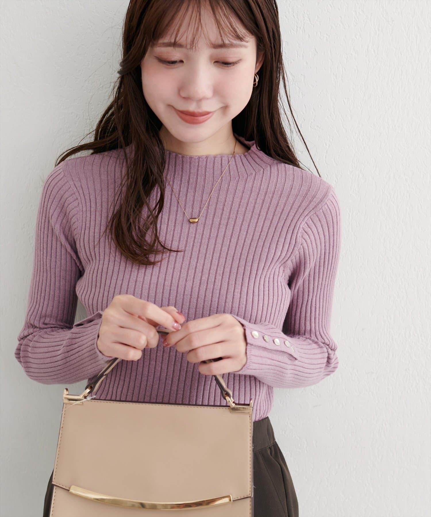 高領羅紋針織衫採用柔軟蓬鬆的面料製成,袖子上的粘扣自然美觀。