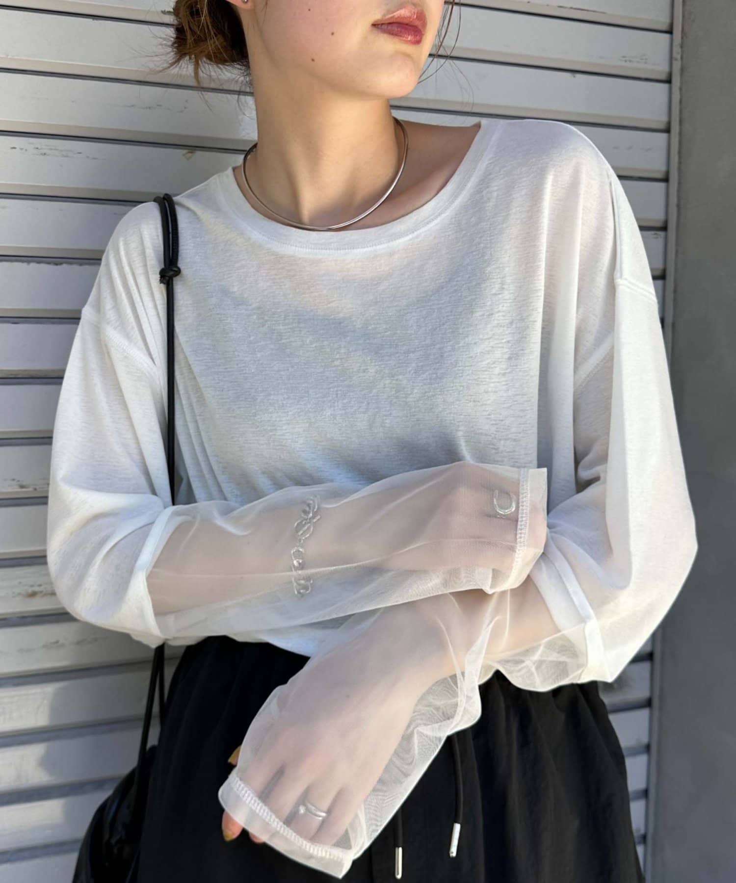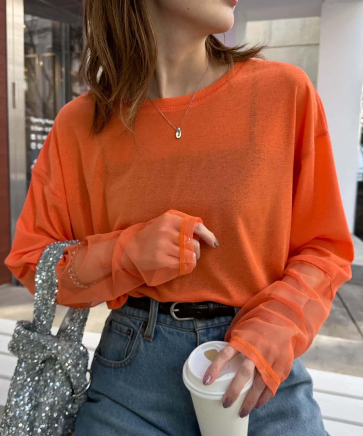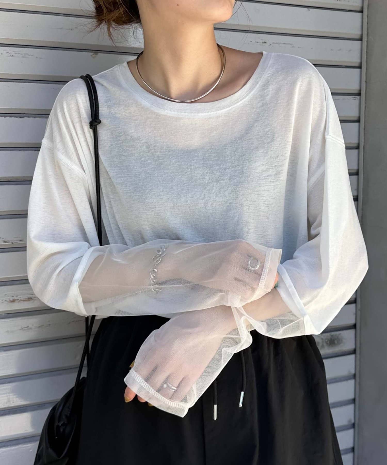 \"備受歡迎的袖子切換透視 TEE 有了新顏色!/