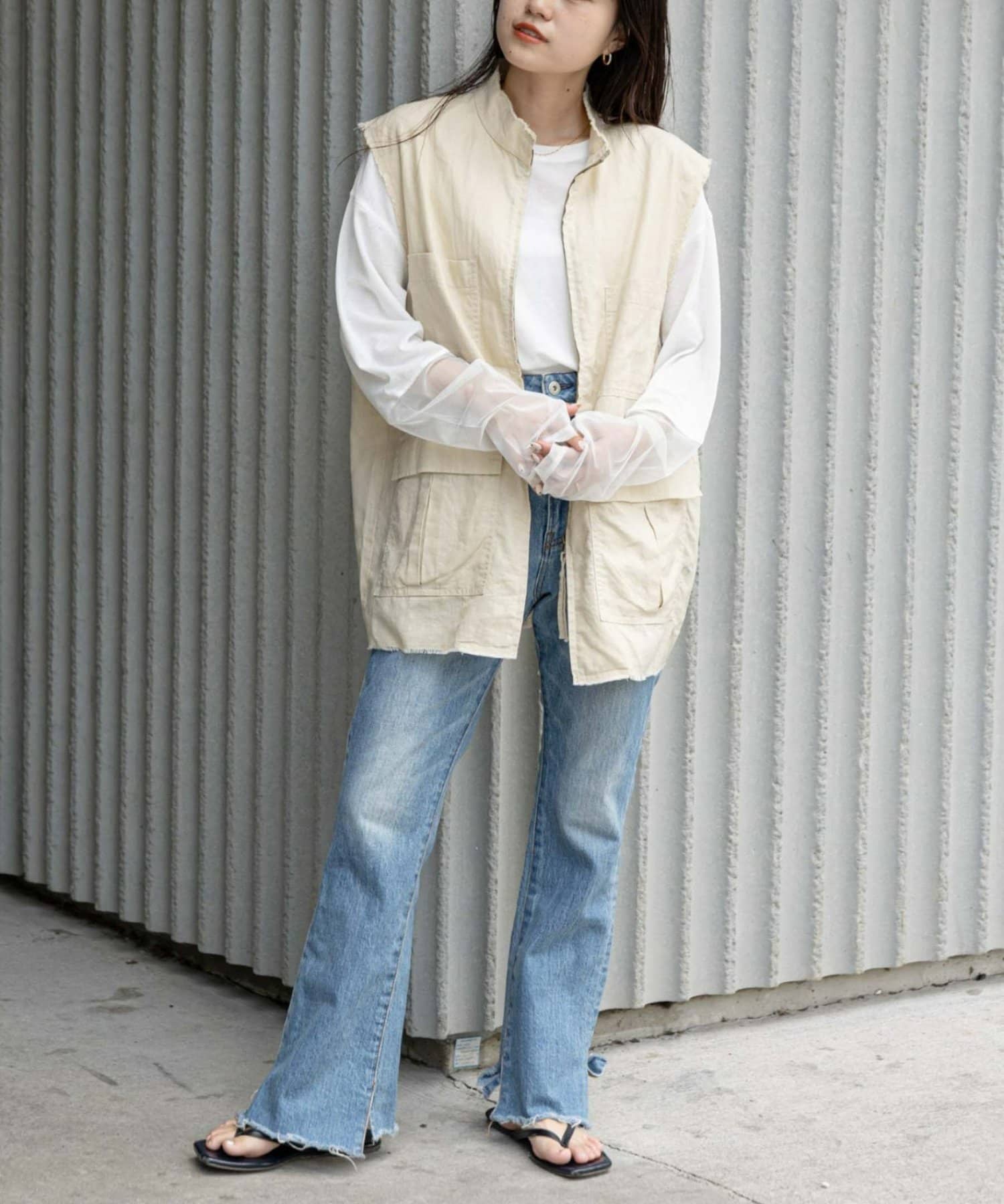 薄透感和袖子開關是它的主要特點,因此既可單獨使用,也可作為內層使用。