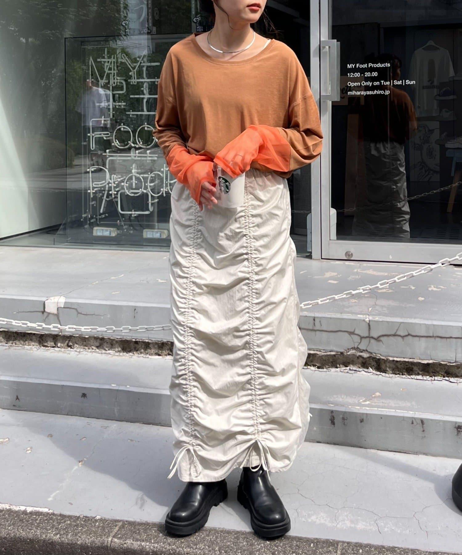 運用薄紗材料的切換設計,營造出與眾不同的時尚氛圍!