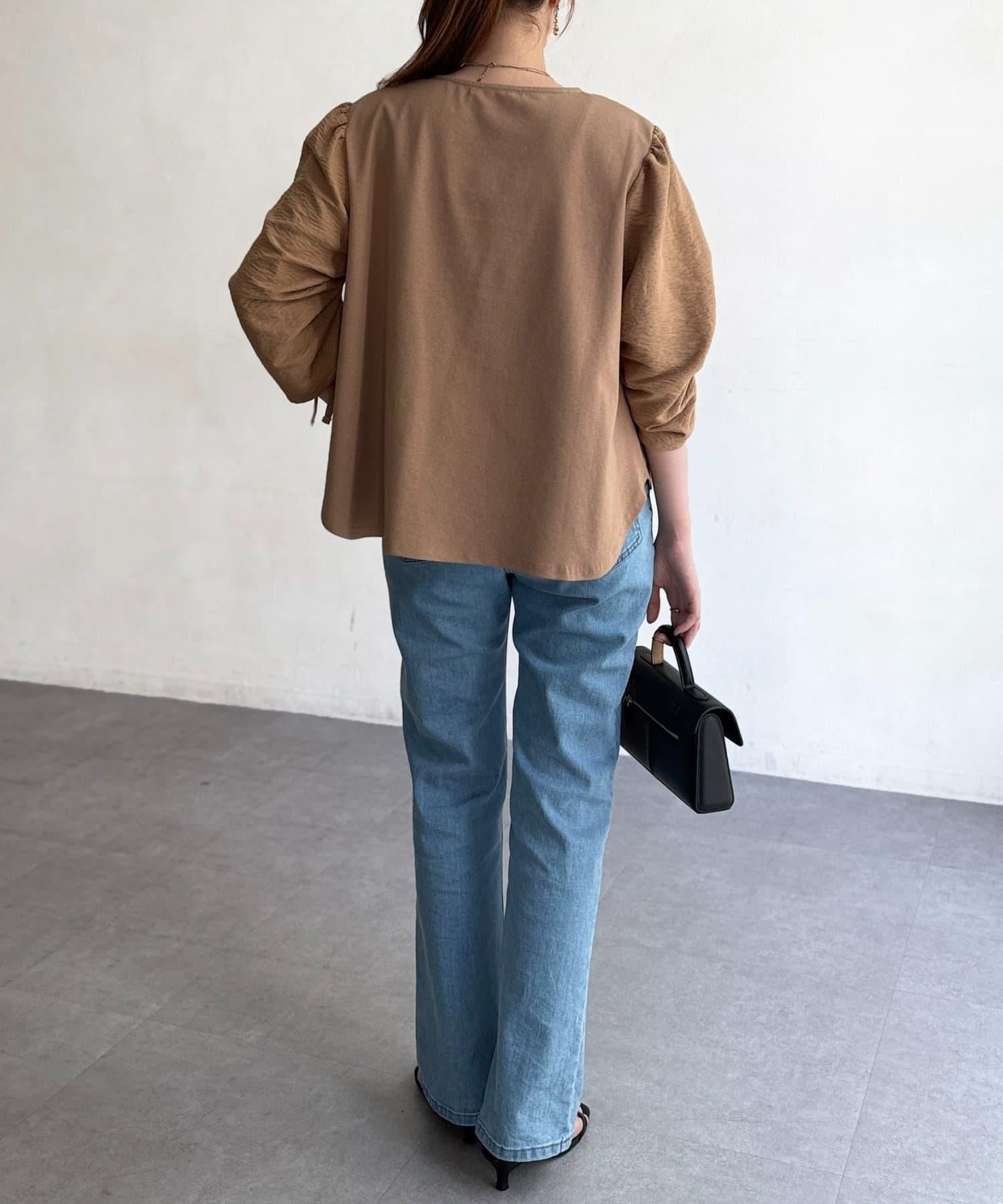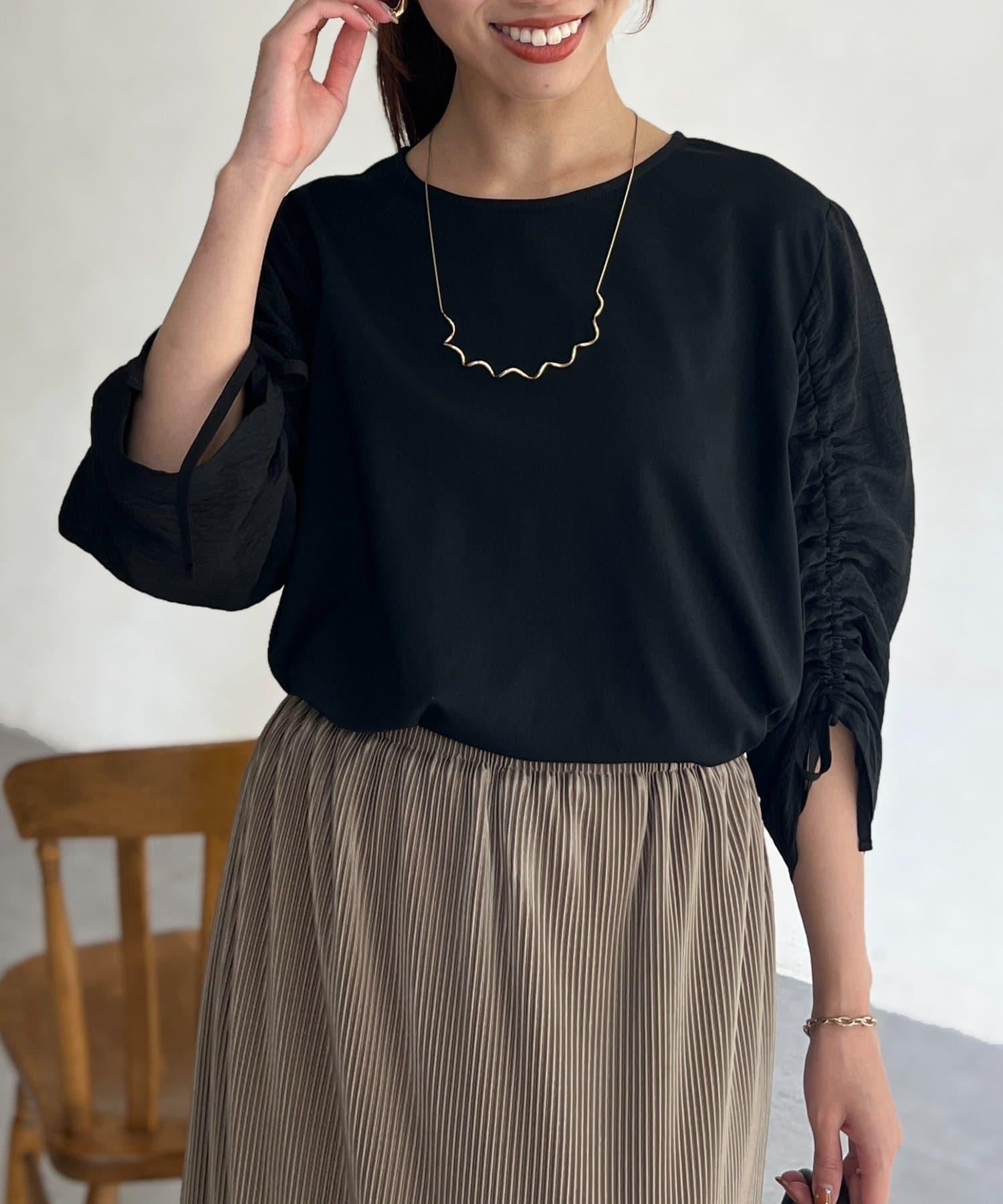 袖子上的褶皺增添了女性的柔美,柔軟涼爽的面料穿著非常舒適。
