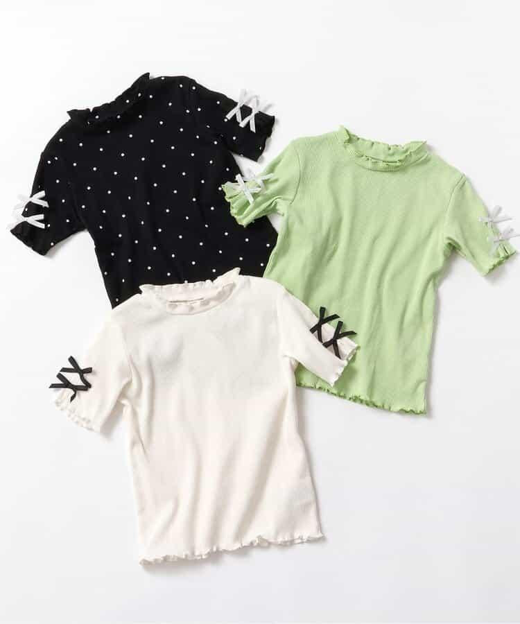 apres les cours 短袖T恤 "WEB only Sleeve 緞帶T恤 "是一款時尚單品,為自然風格*增添了微妙的設計感。