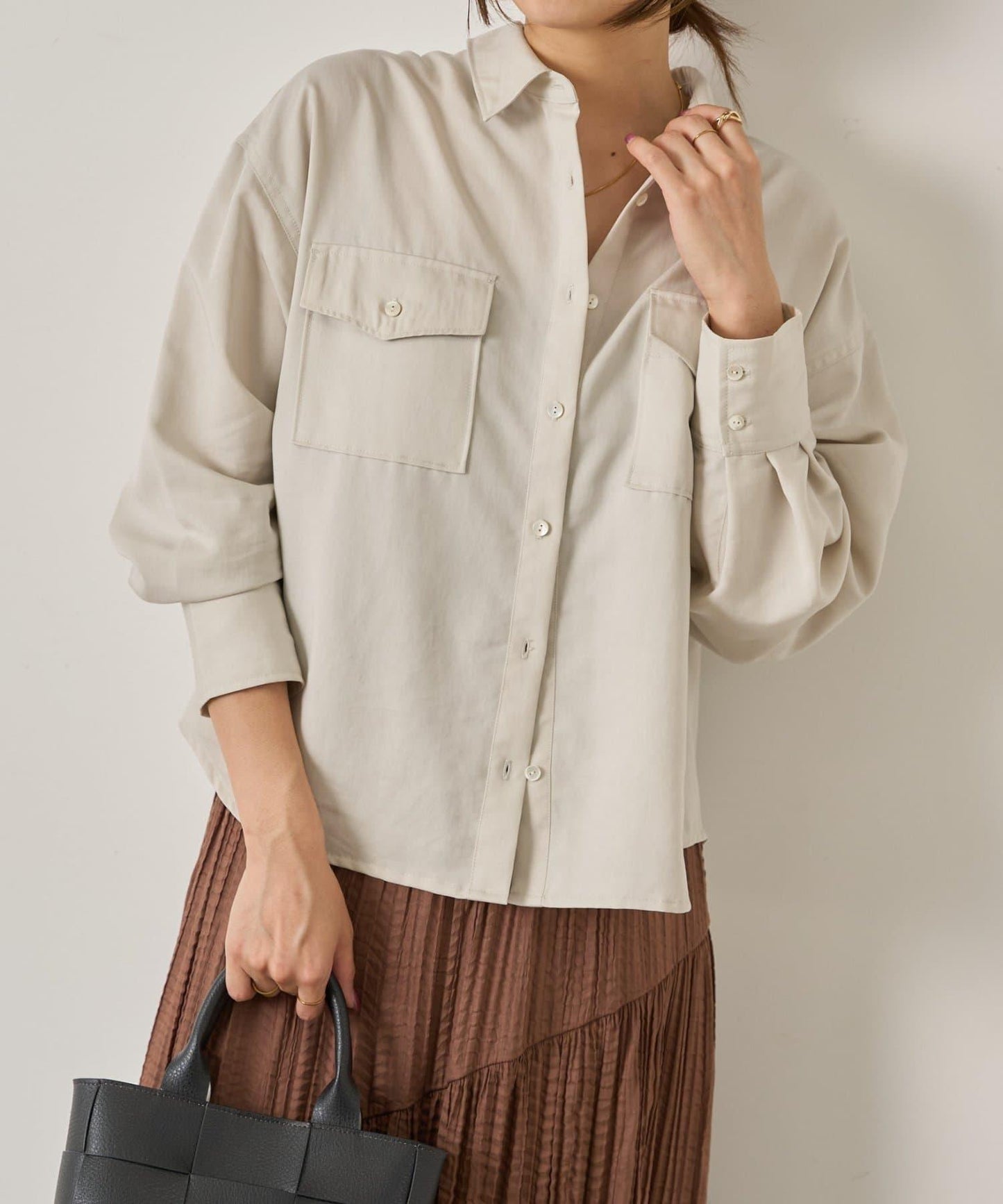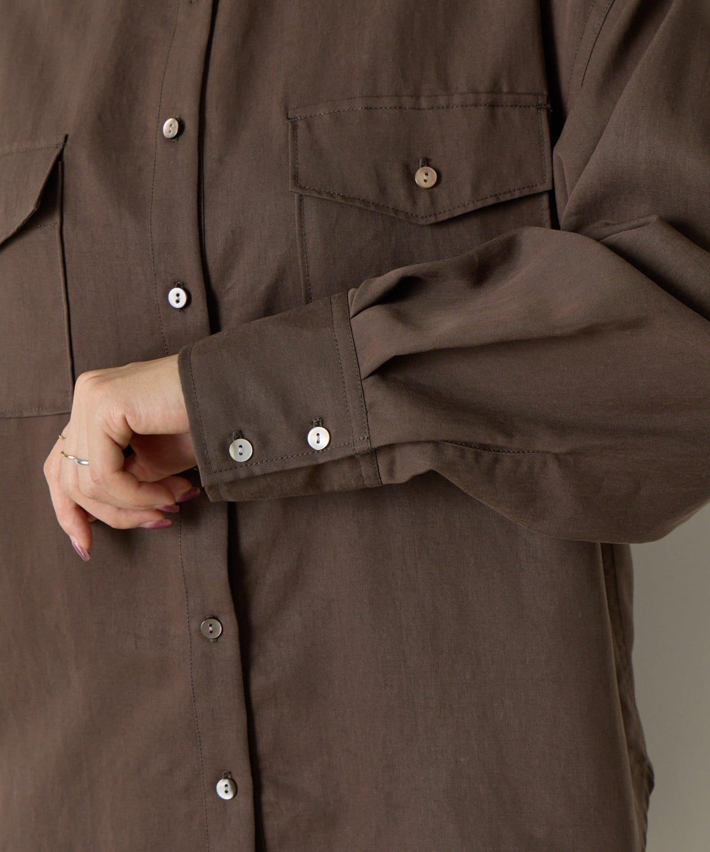 袖褶雙口袋襯衫