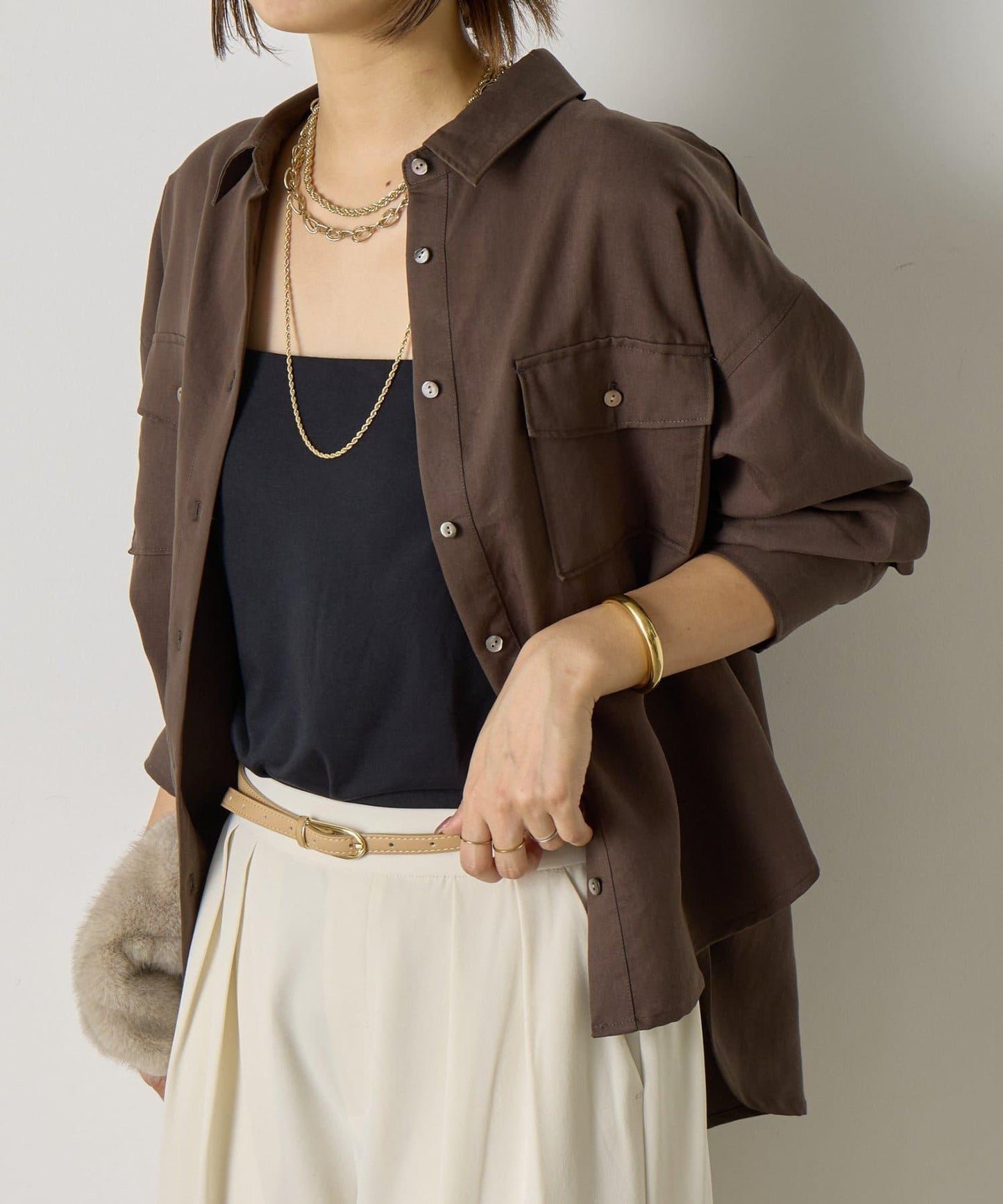 當襯衫釦子扣上後作為上衣穿著,或者疊穿在粗糙的編織物上時,也能很好地保持平衡。