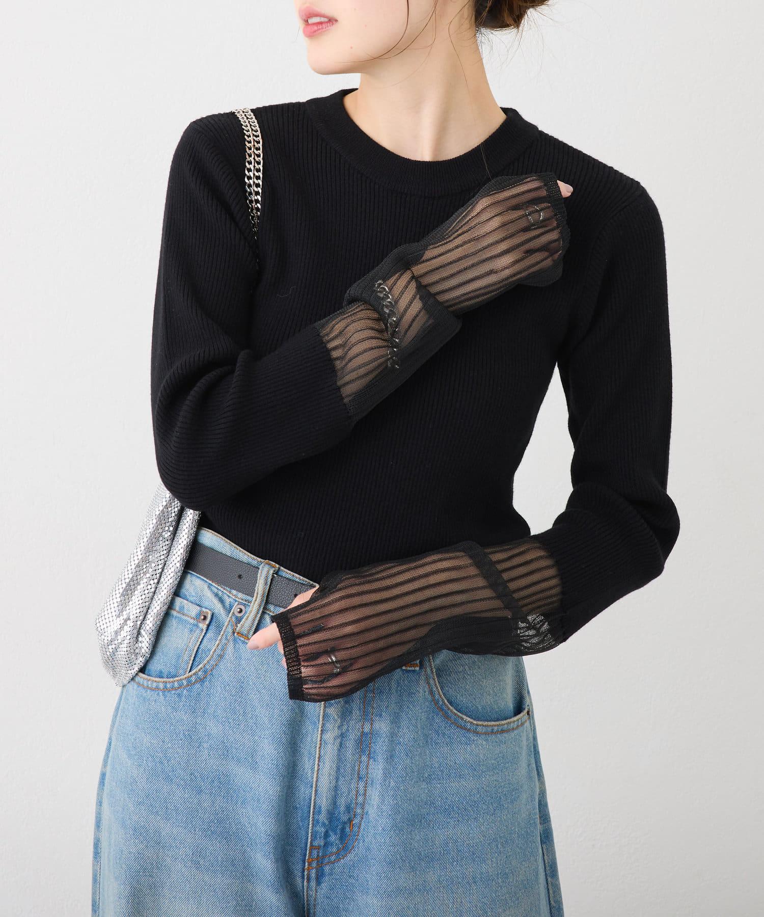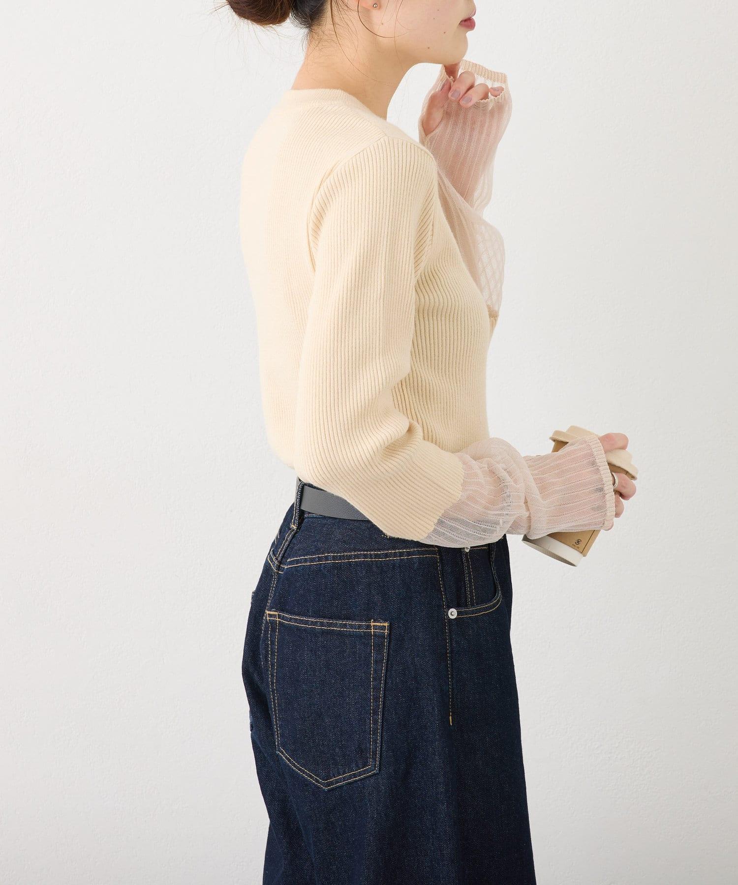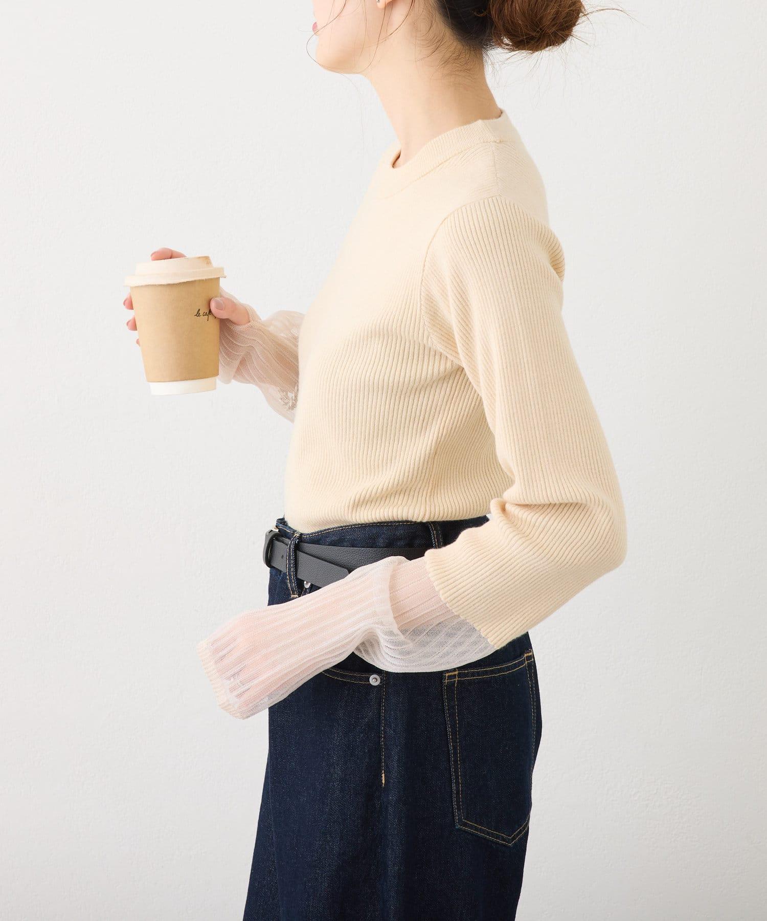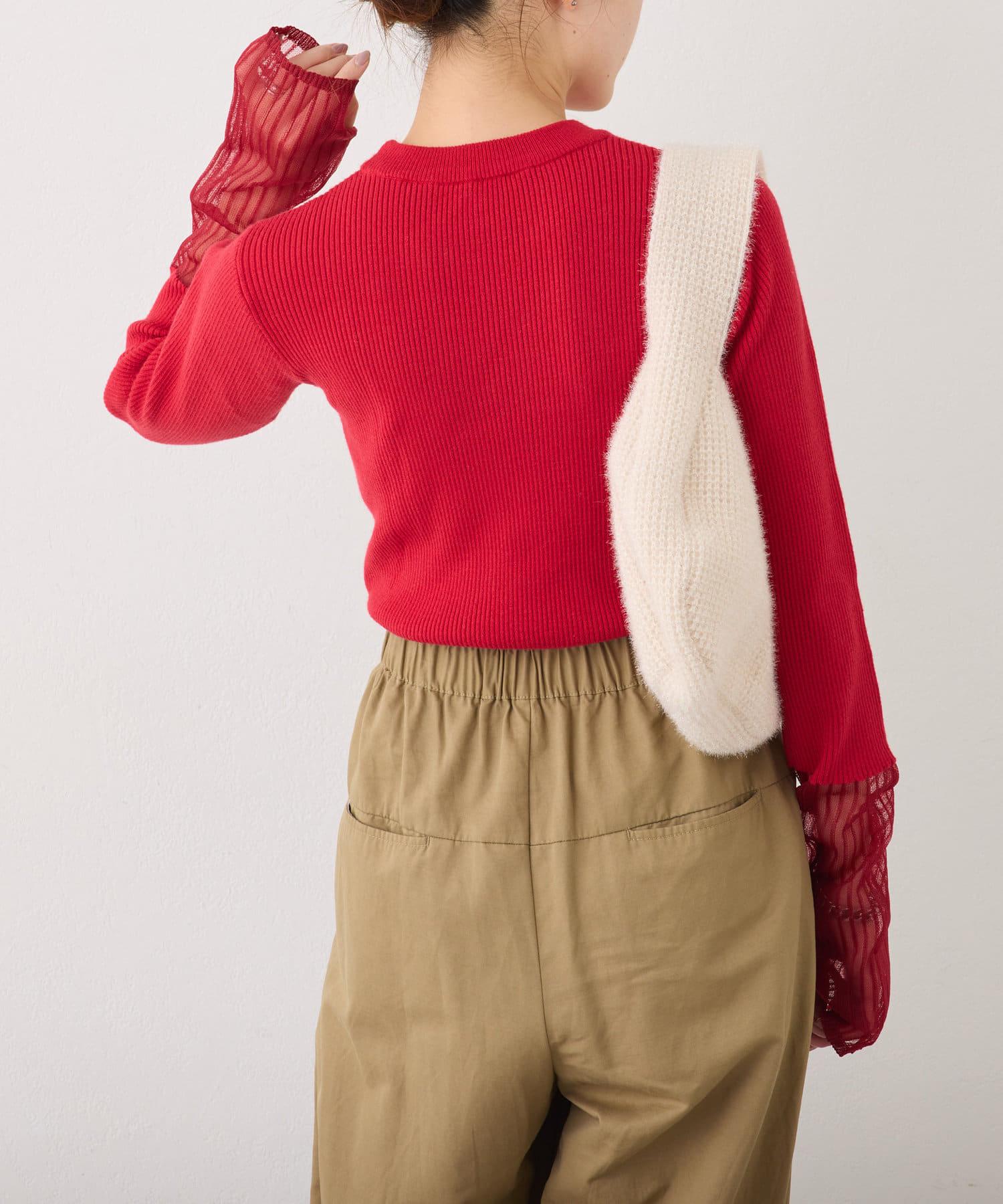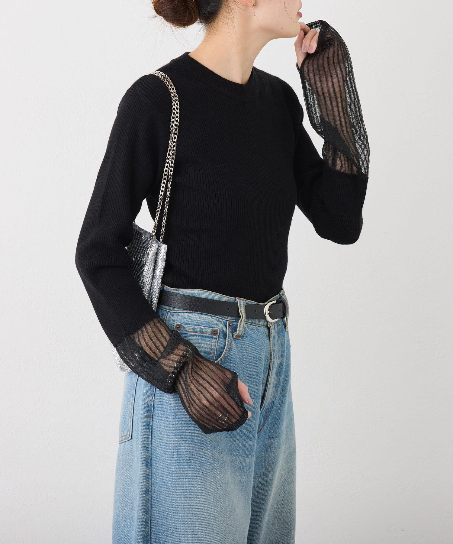 袖子是蕾絲的,所以是一款可愛的多功能針織衫,您可以盡情展示。