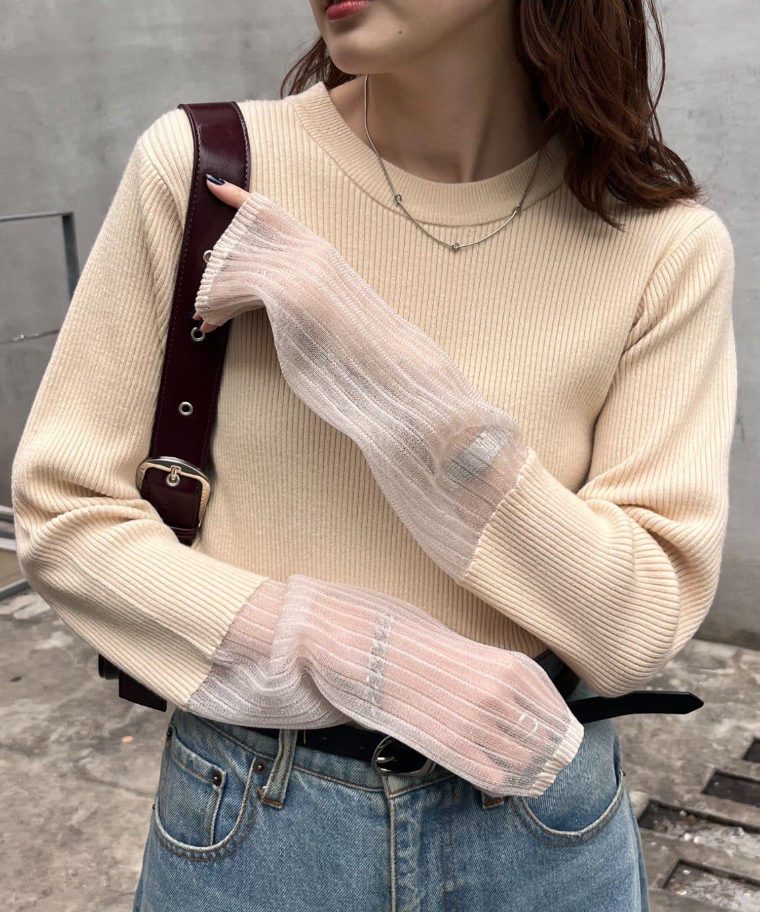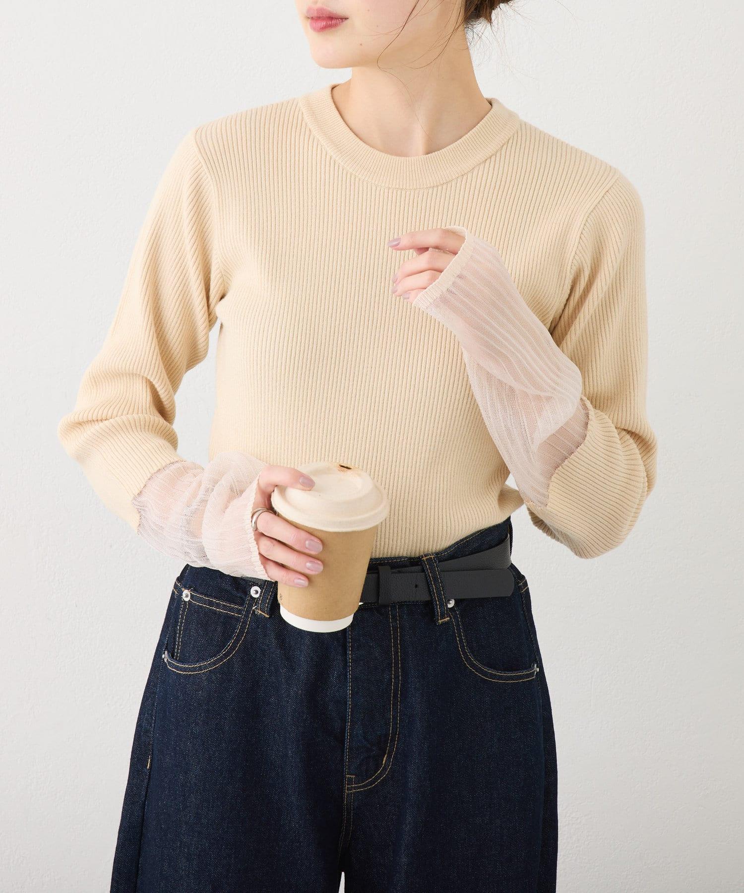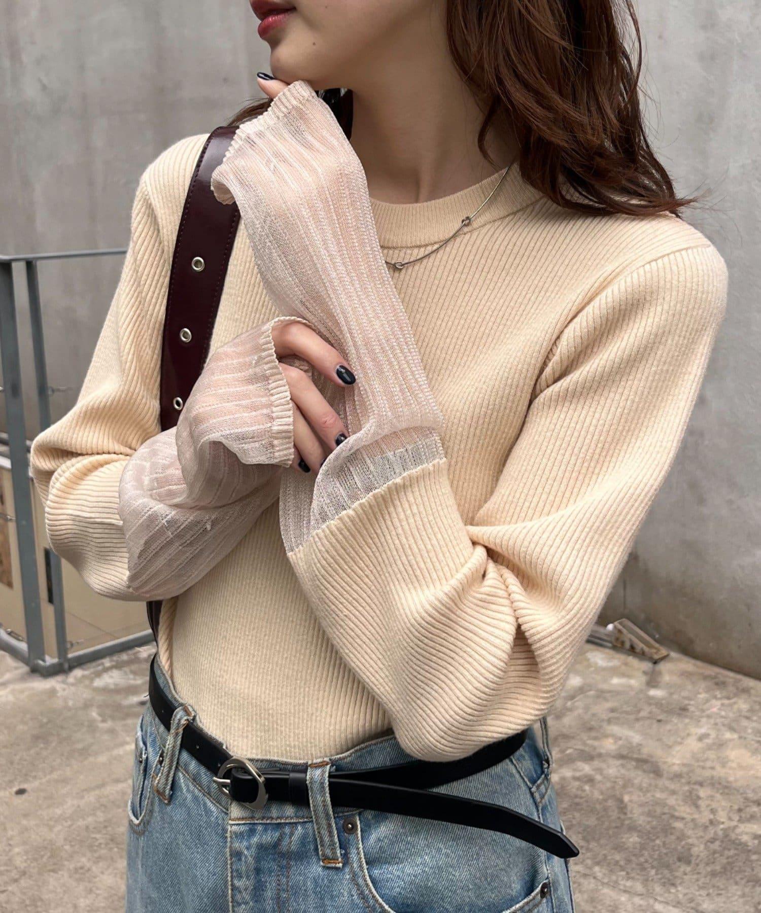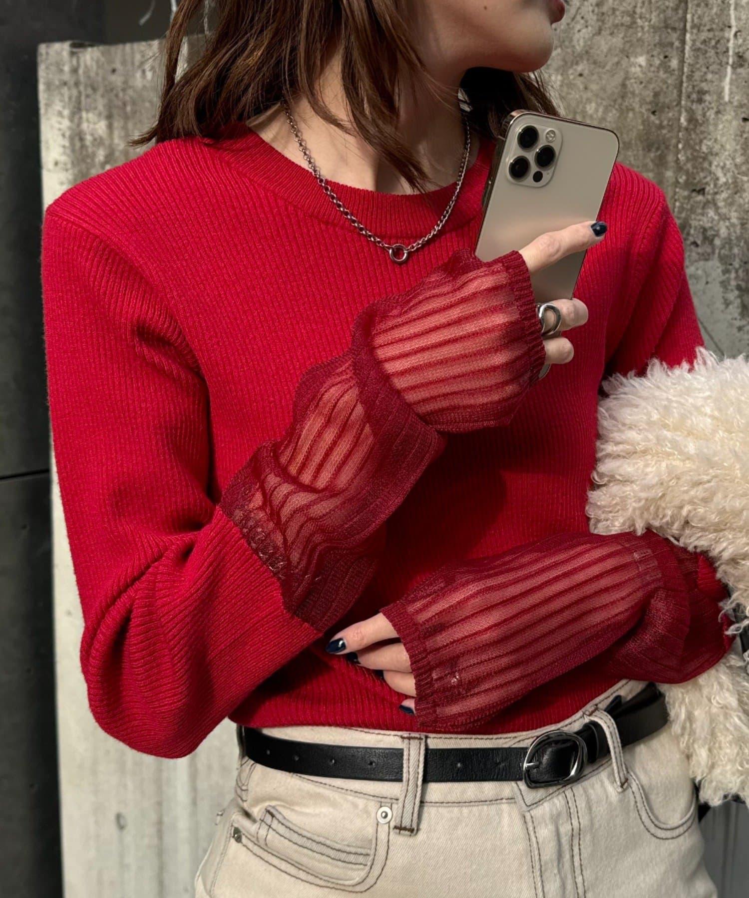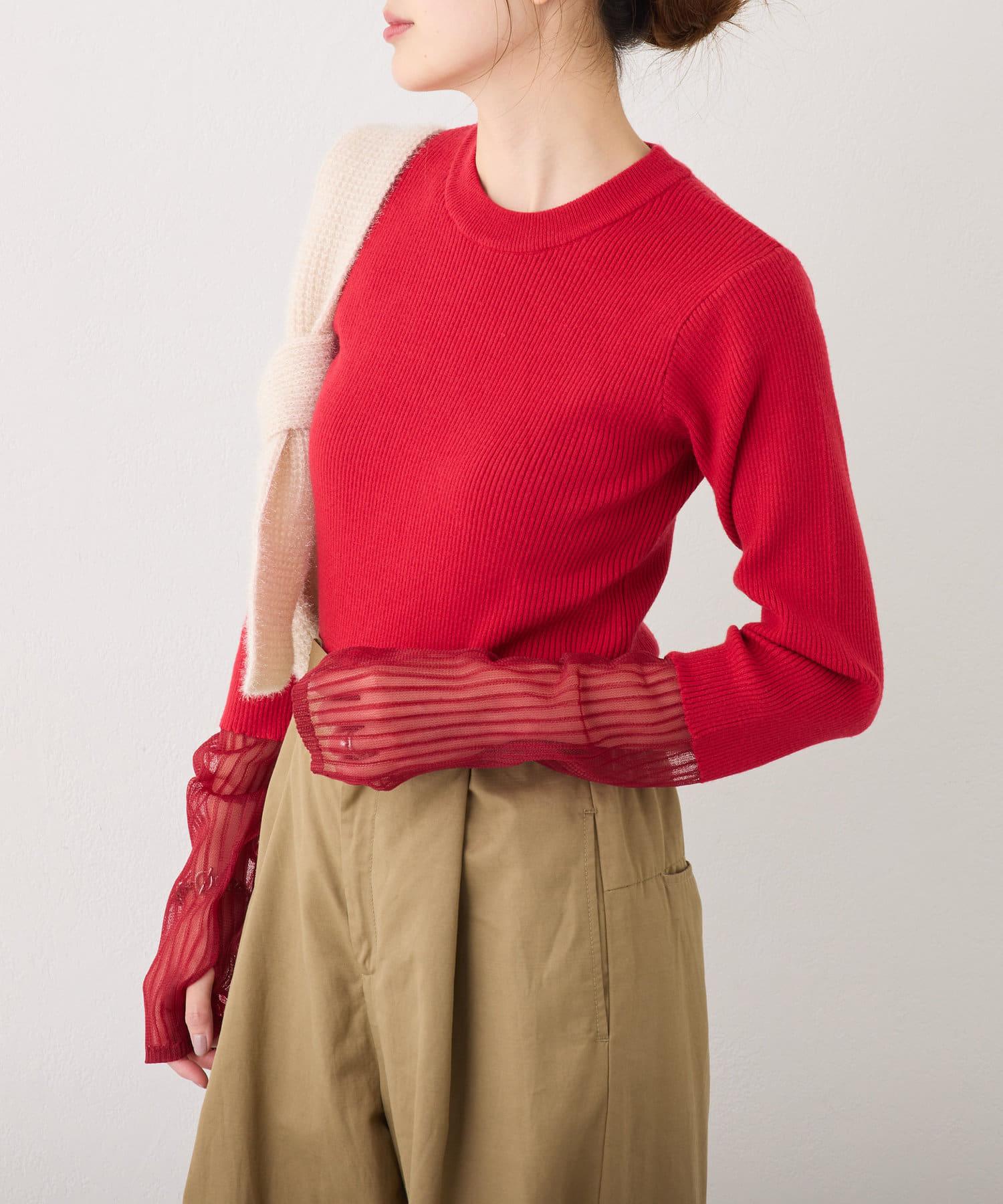 袖子是蕾絲的,所以是一款可愛的多功能針織衫,您可以盡情展示。