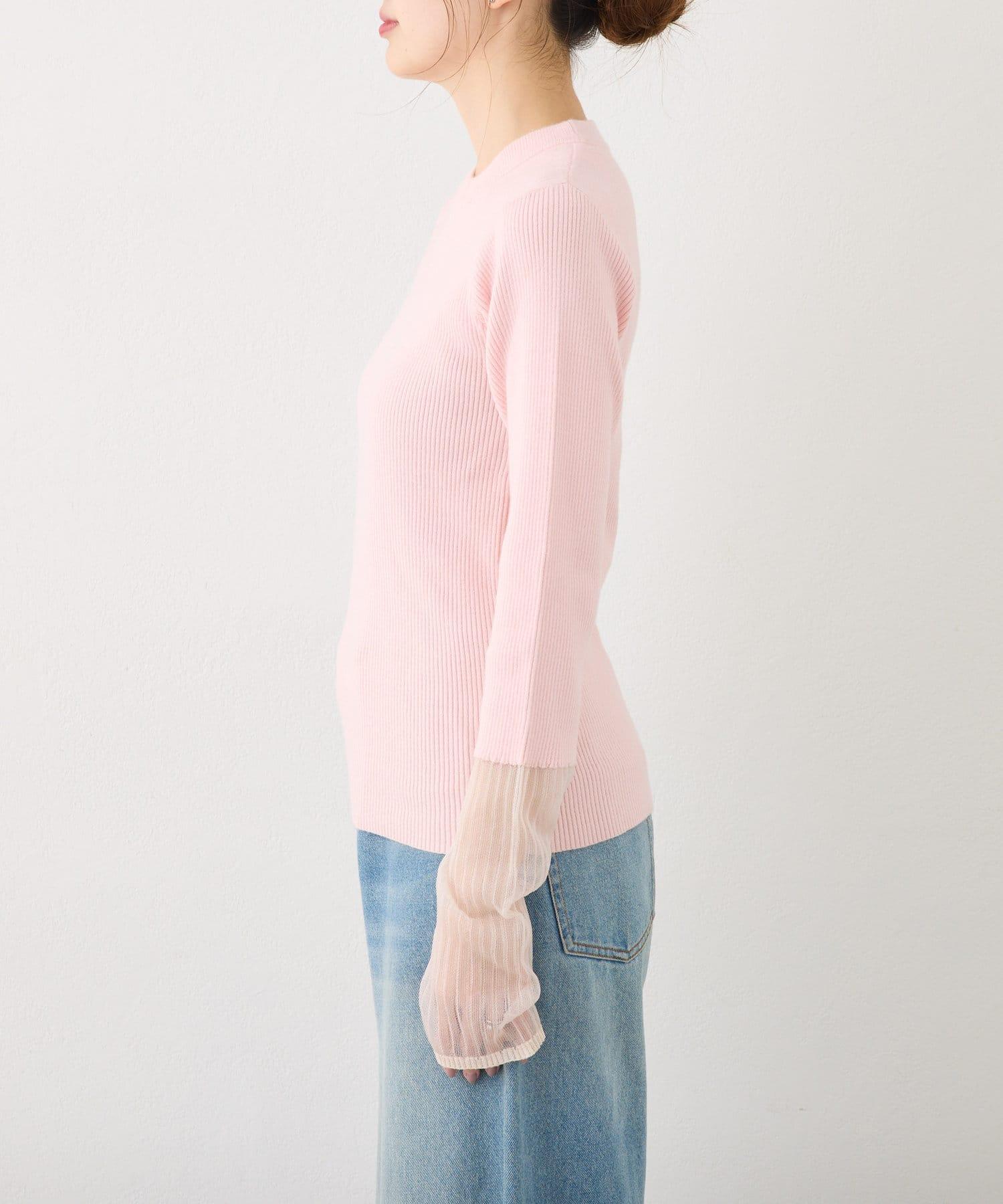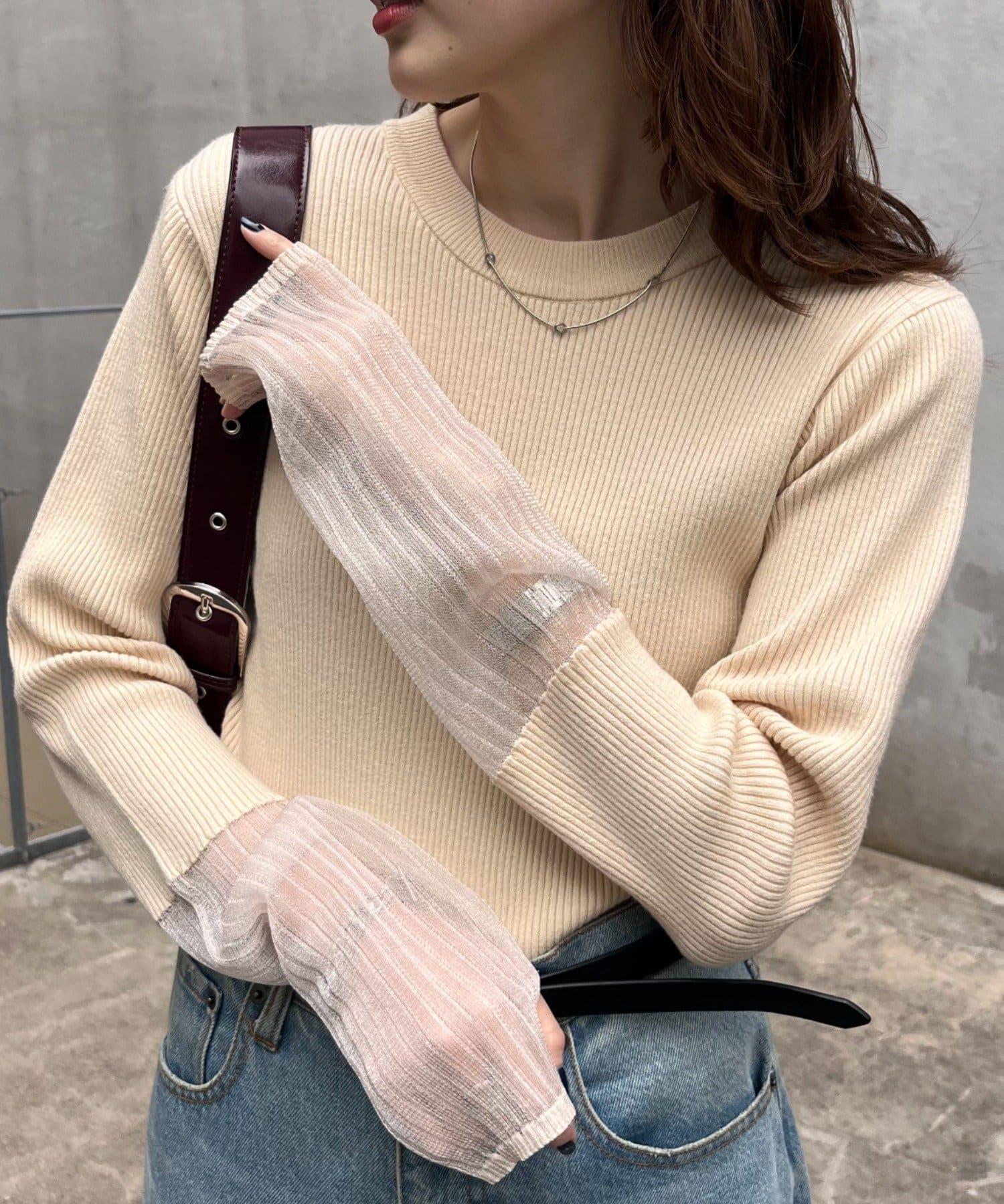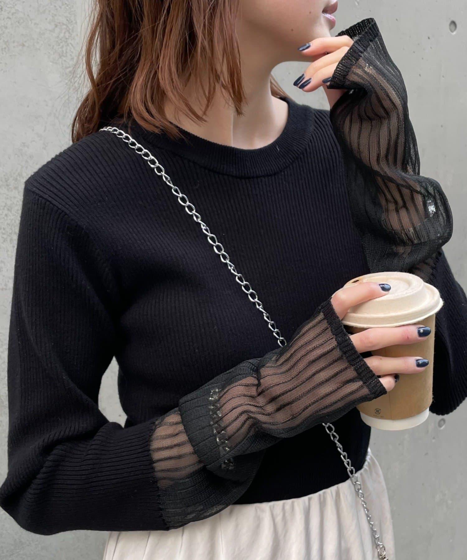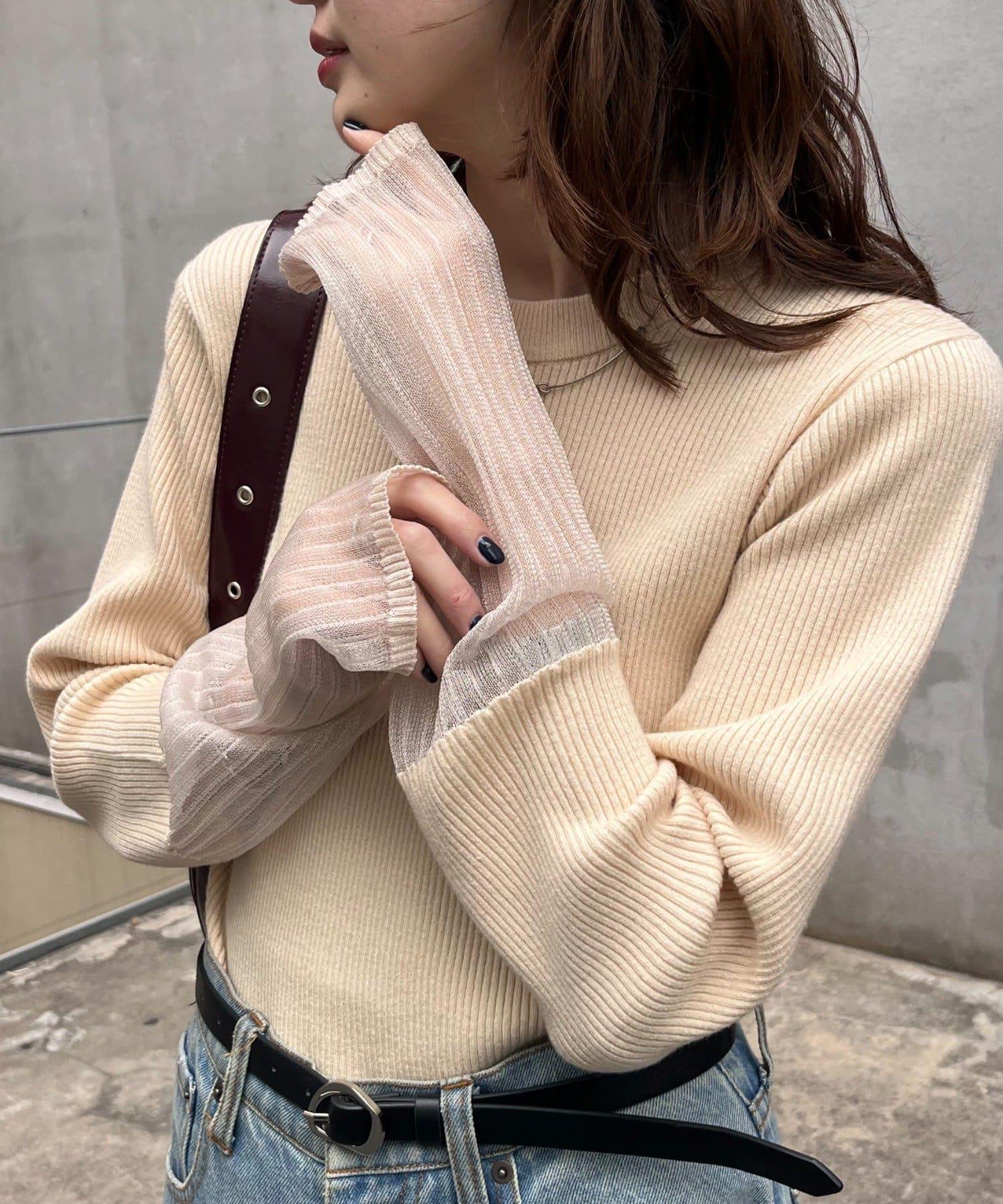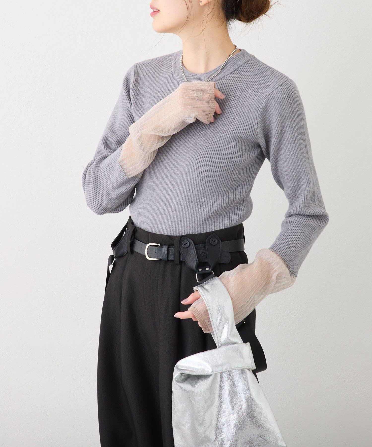 袖子是蕾絲的,所以是一款可愛的多功能針織衫,您可以盡情展示。