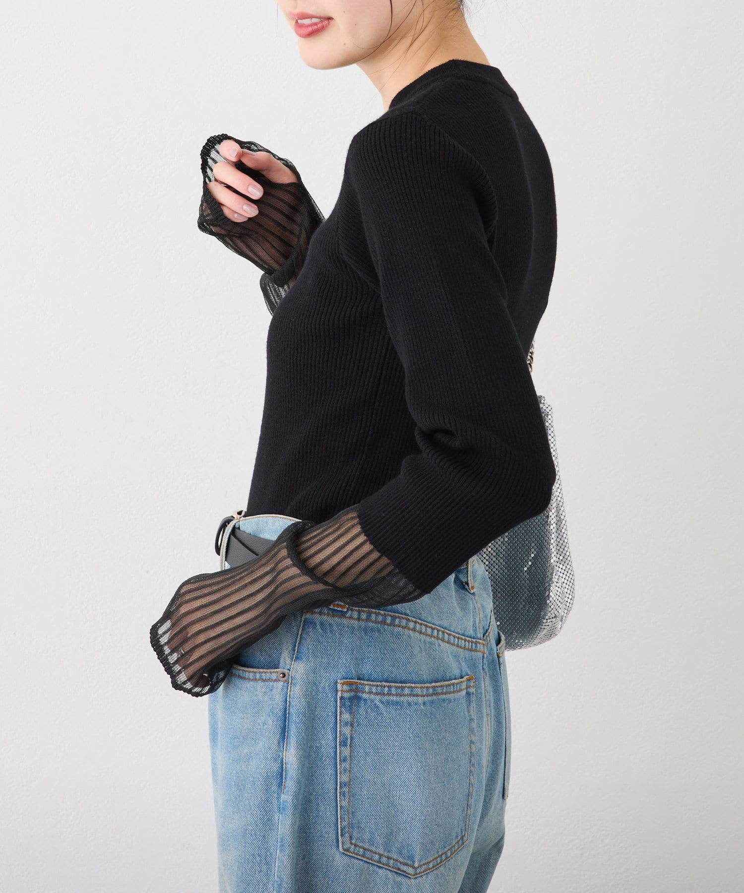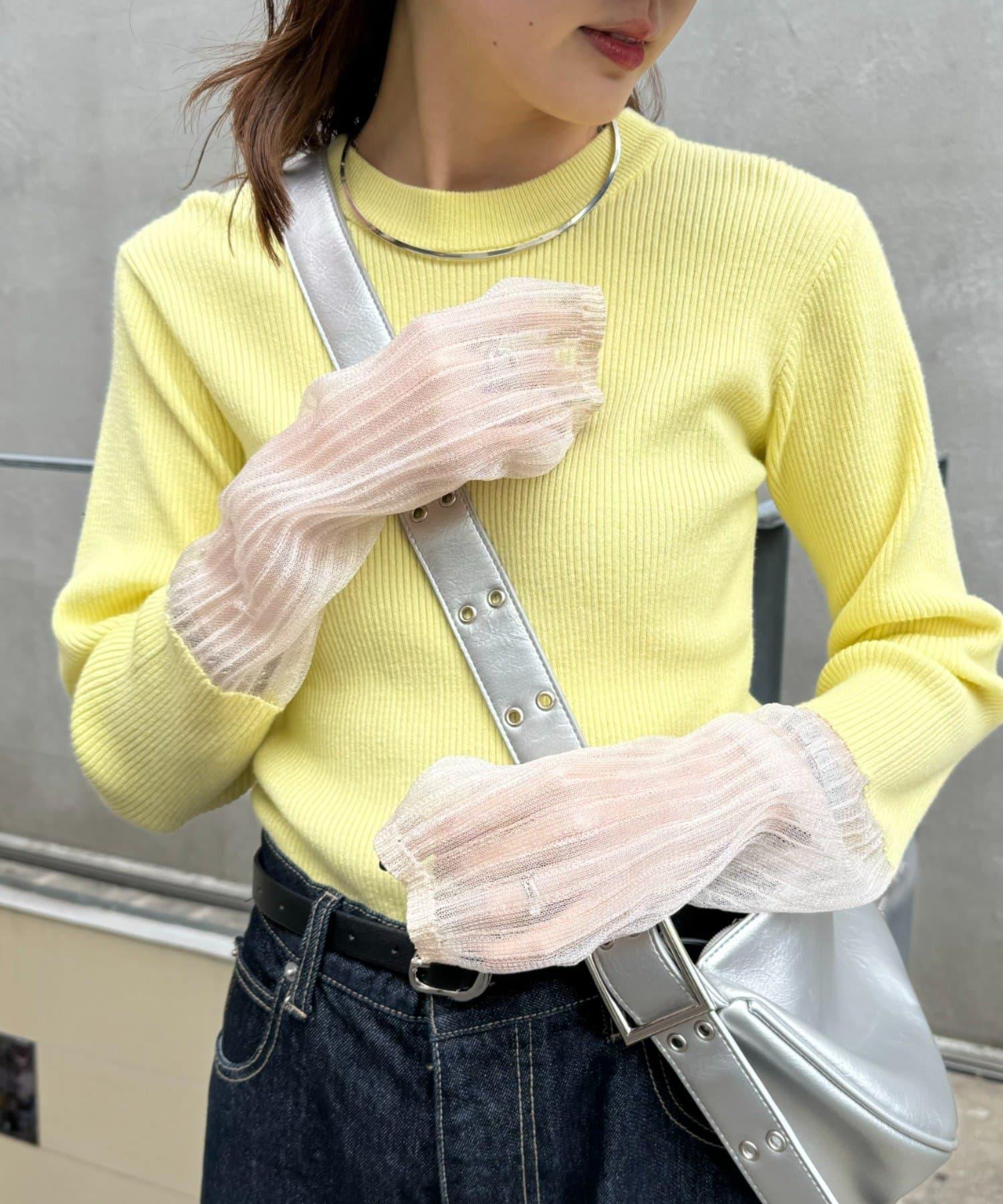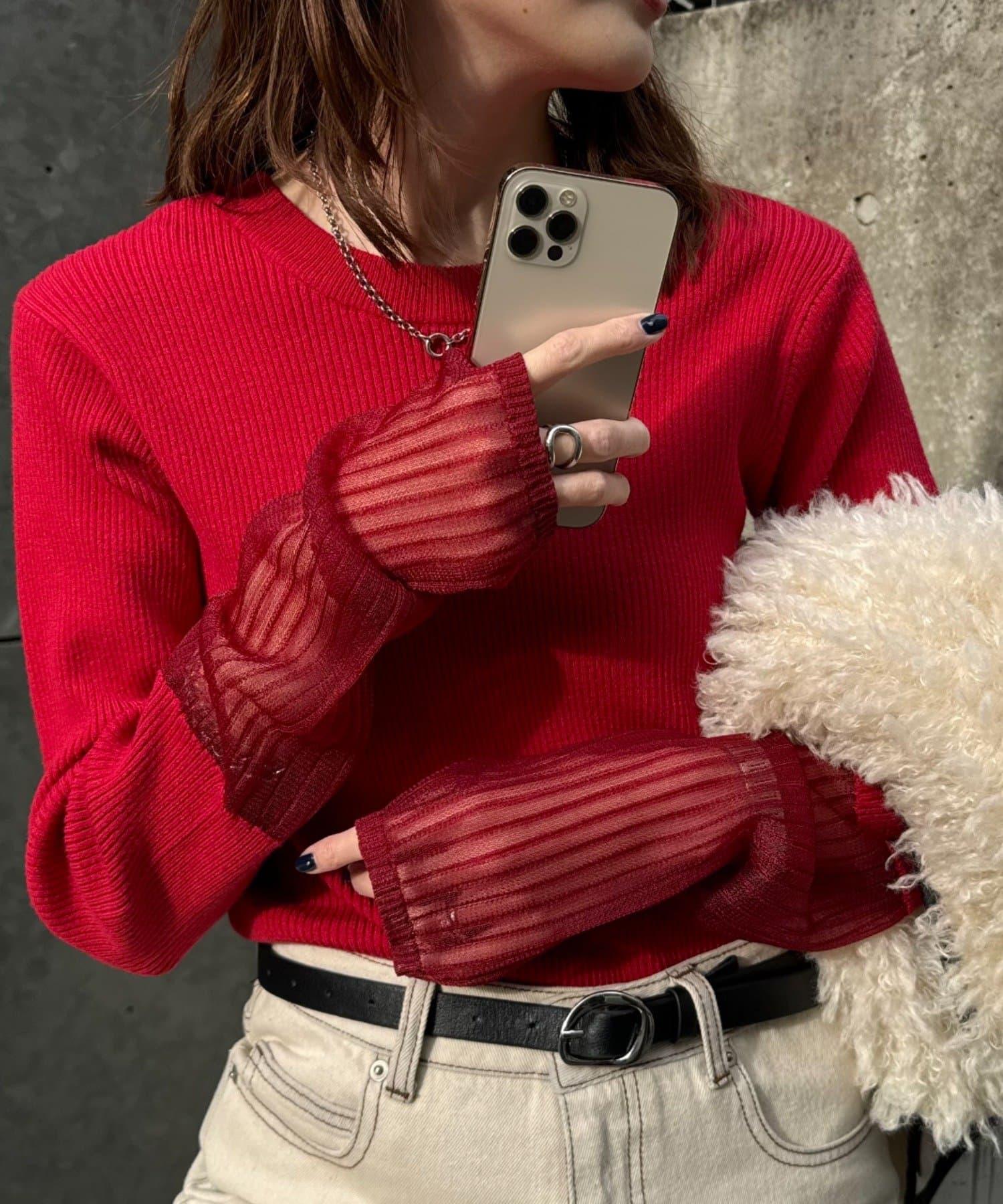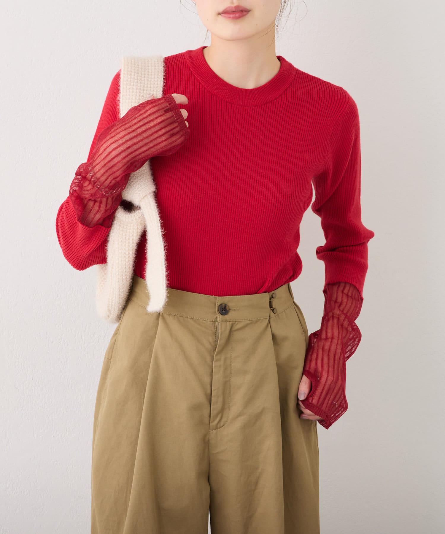袖子是蕾絲的,所以是一款可愛的多功能針織衫,您可以盡情展示。
