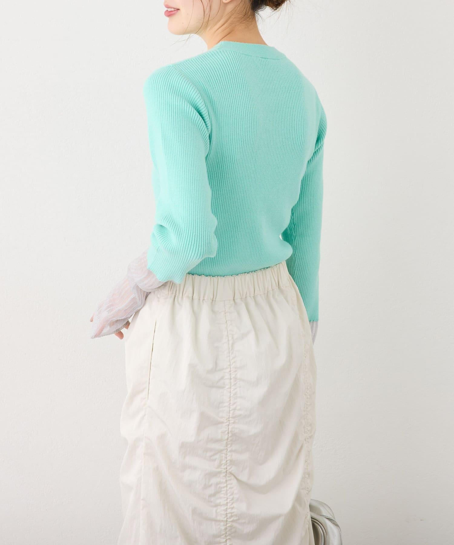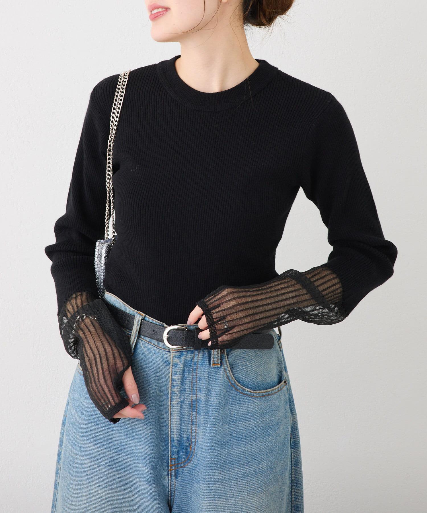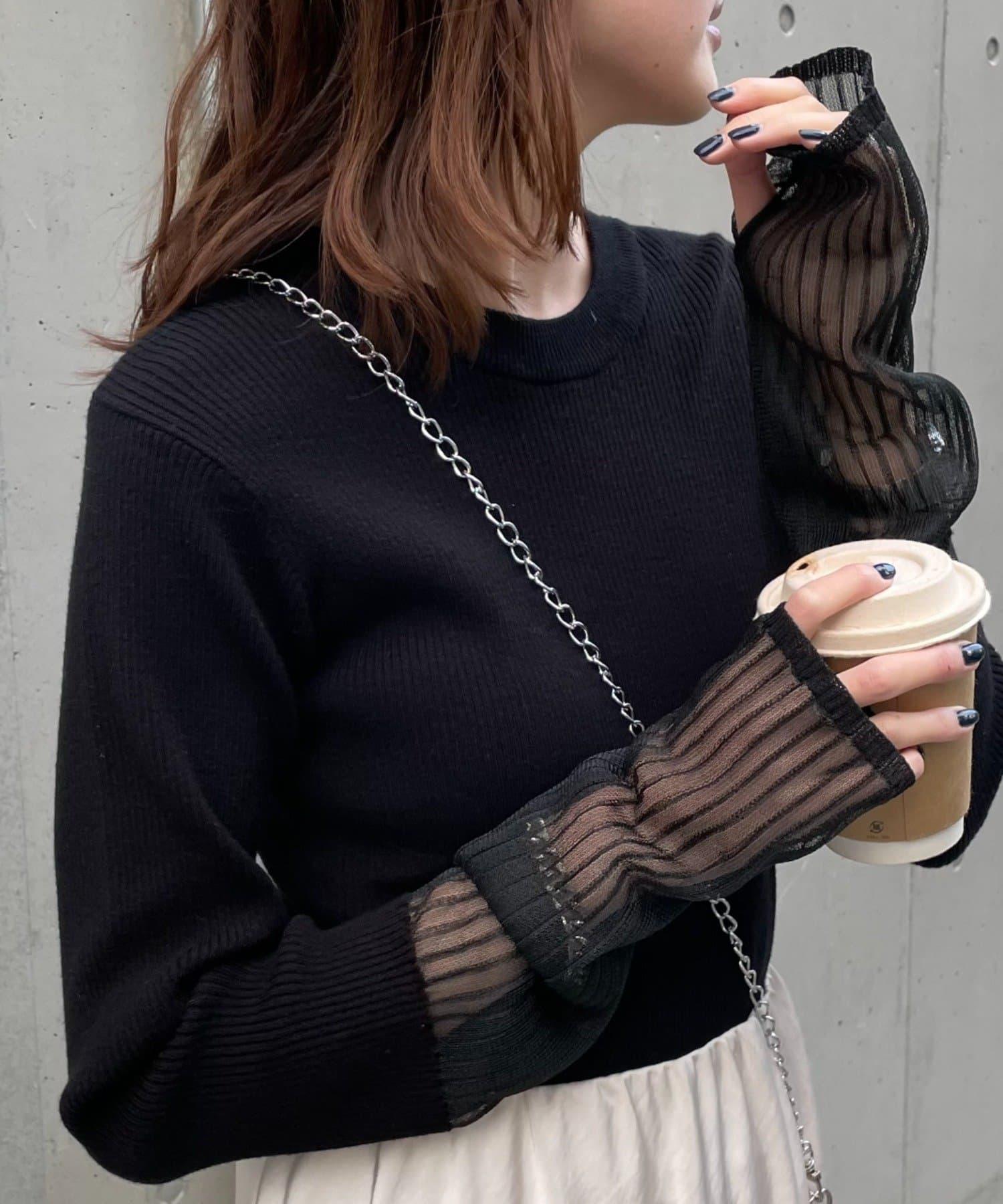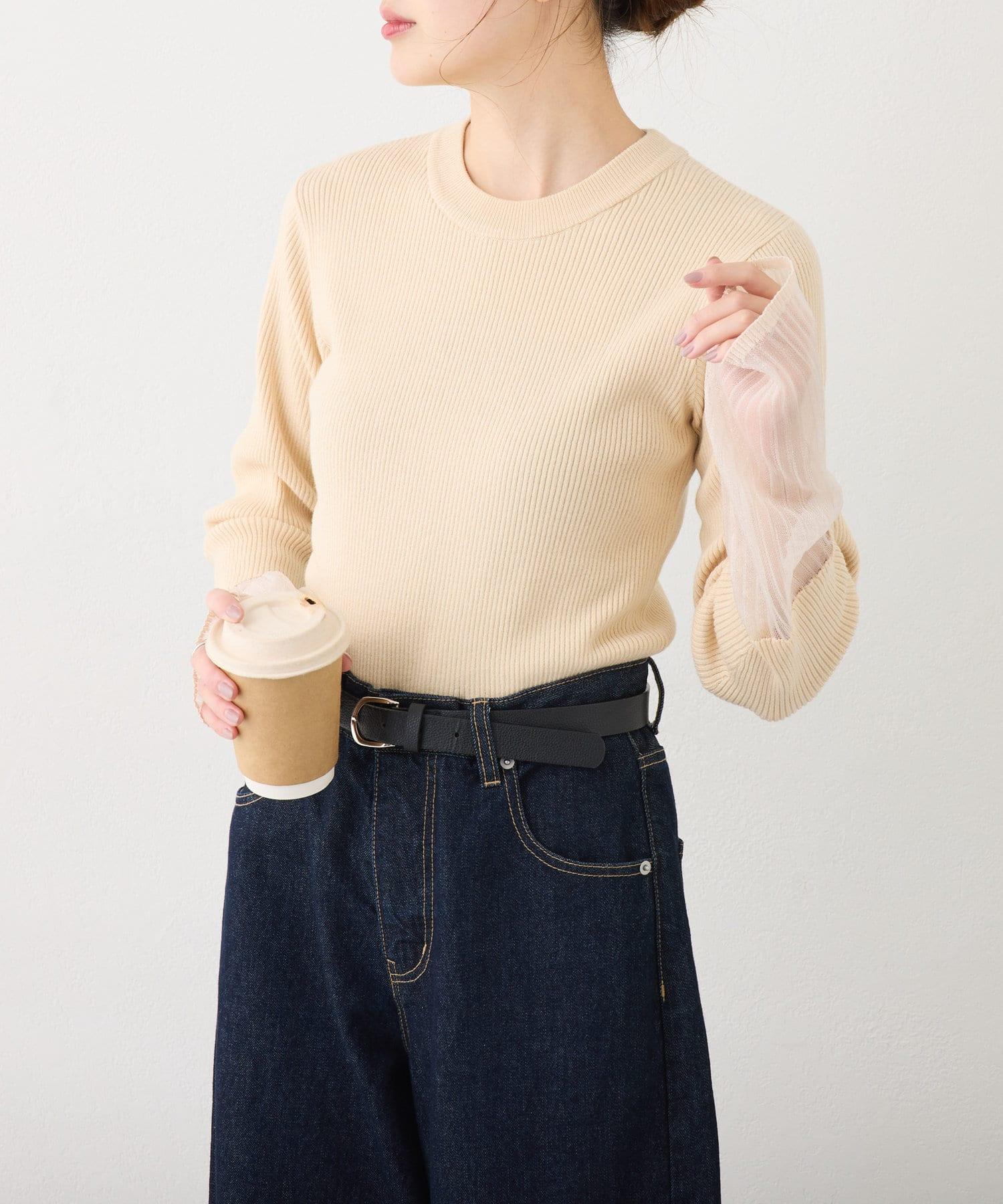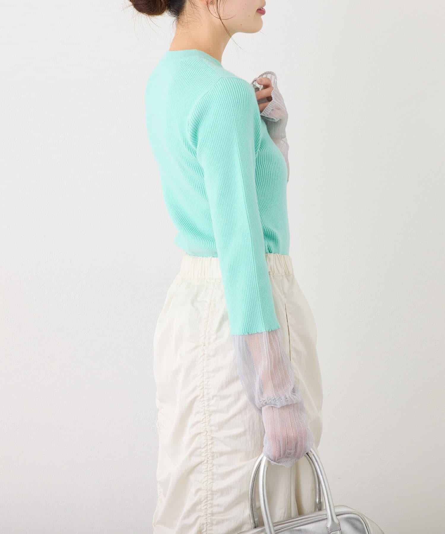 袖子是蕾絲的,所以是一款可愛的多功能針織衫,您可以盡情展示。