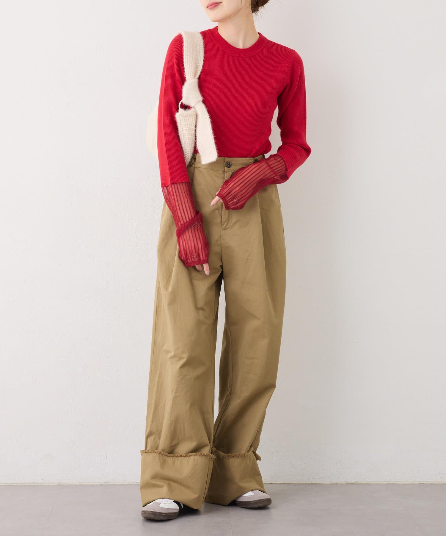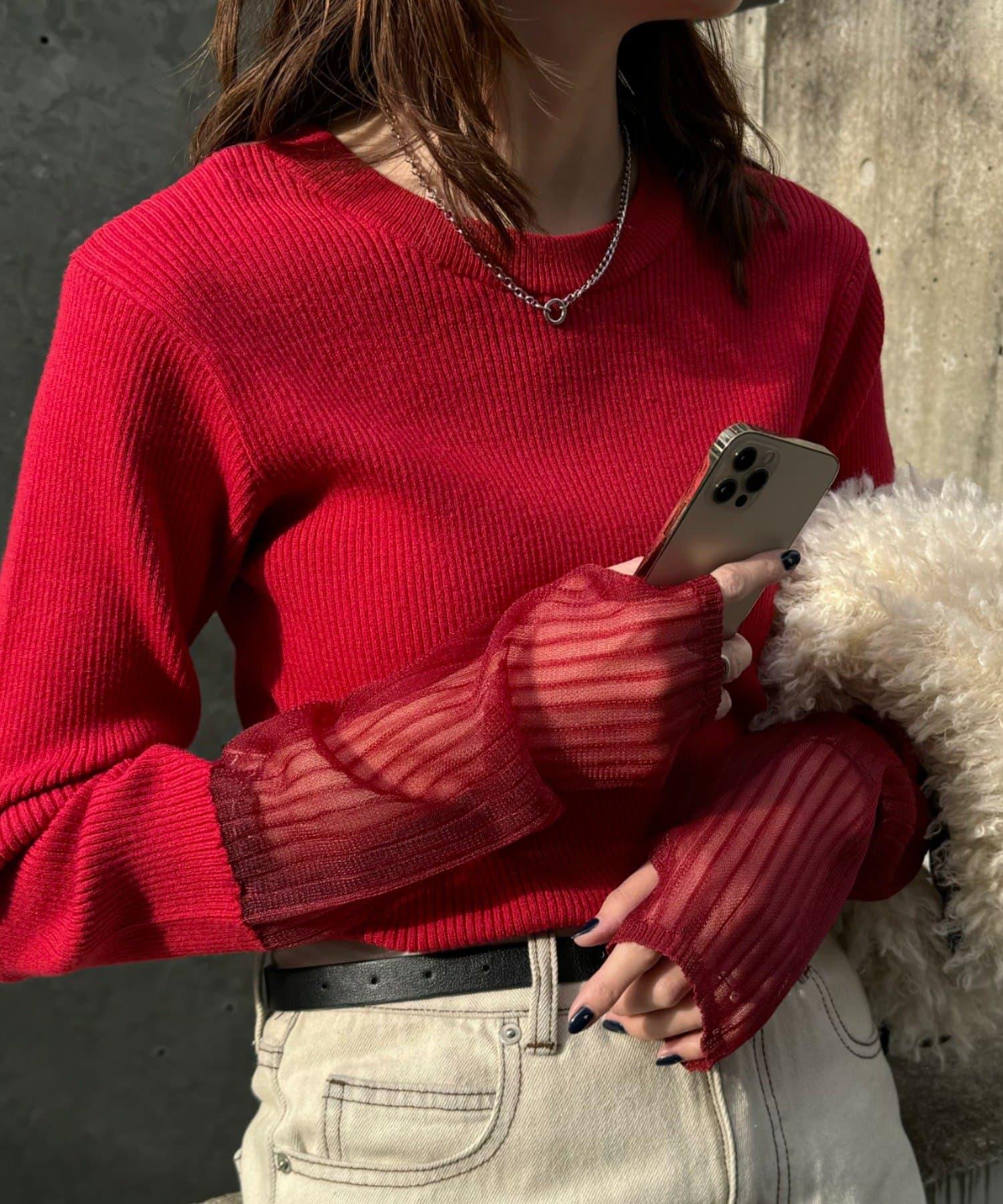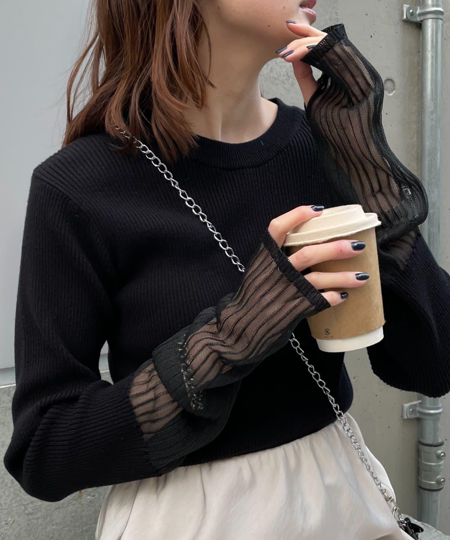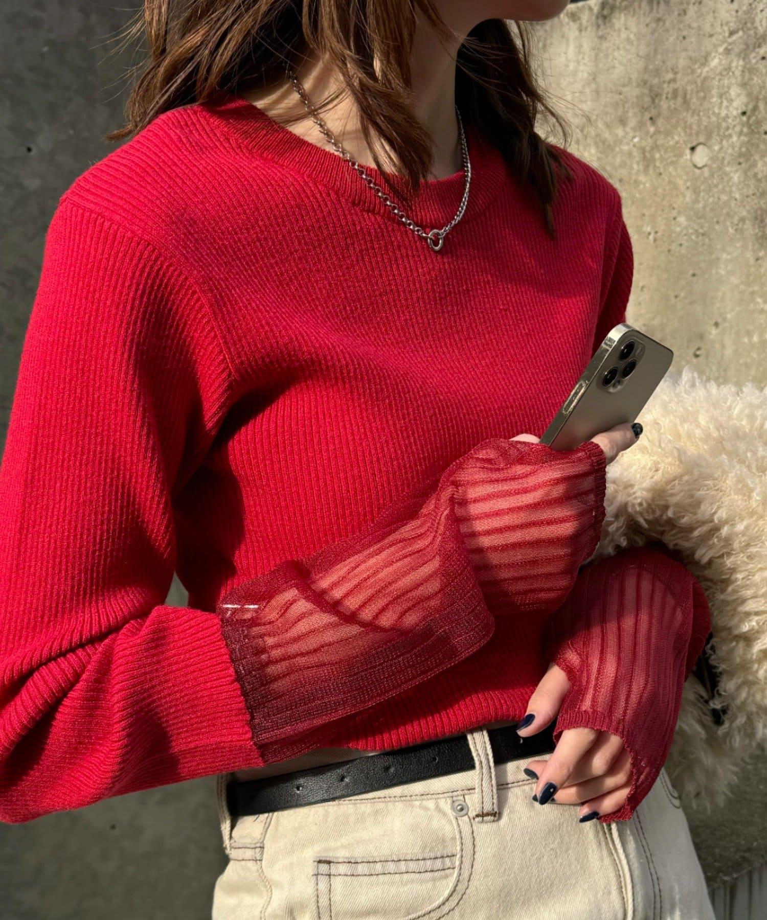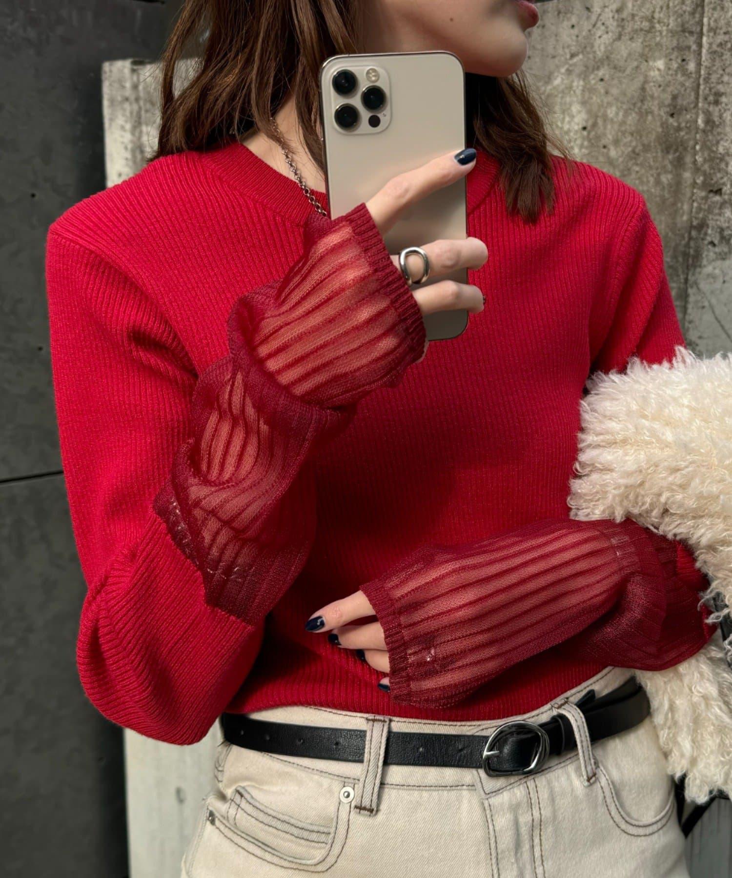袖子是蕾絲的,所以是一款可愛的多功能針織衫,您可以盡情展示。