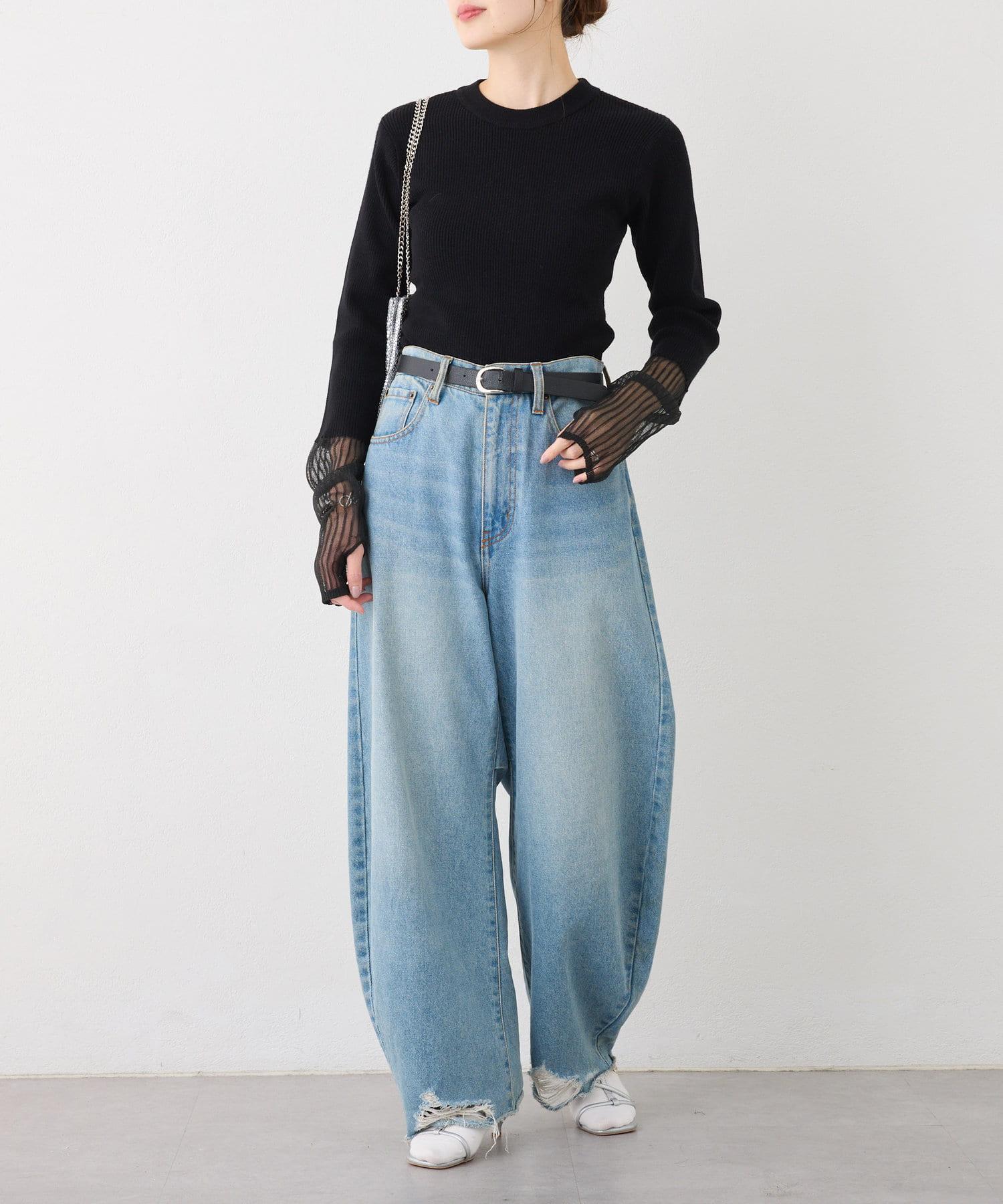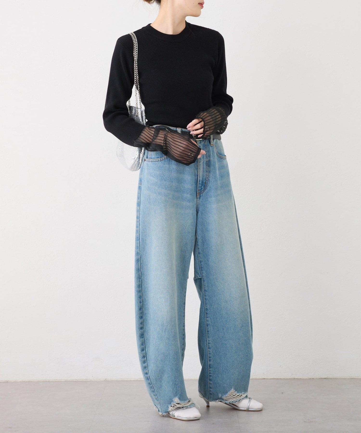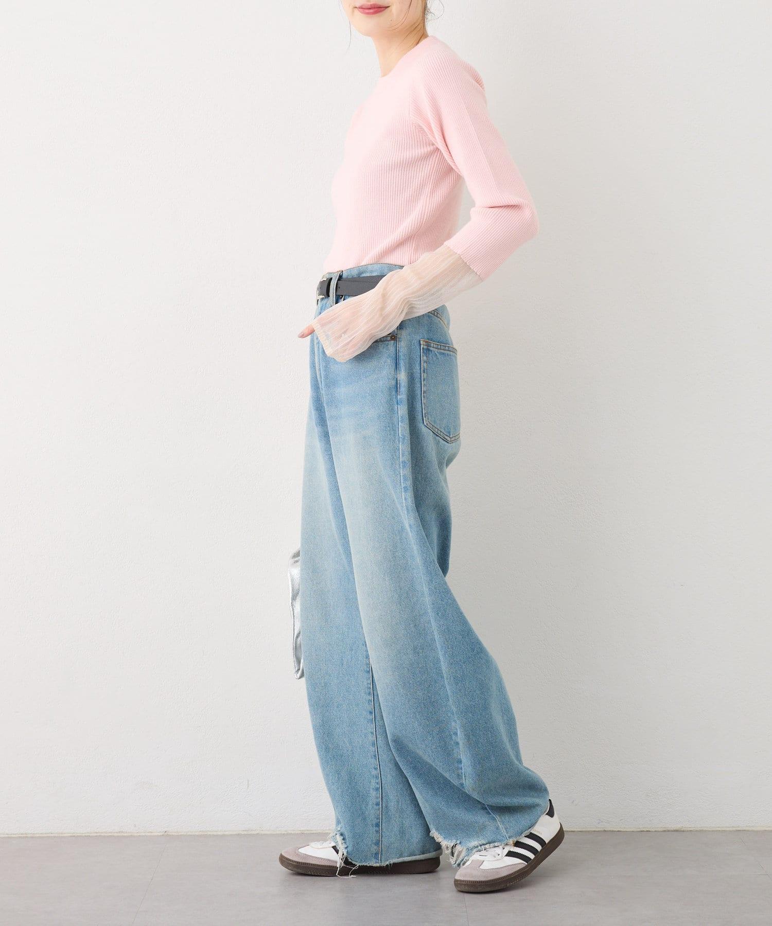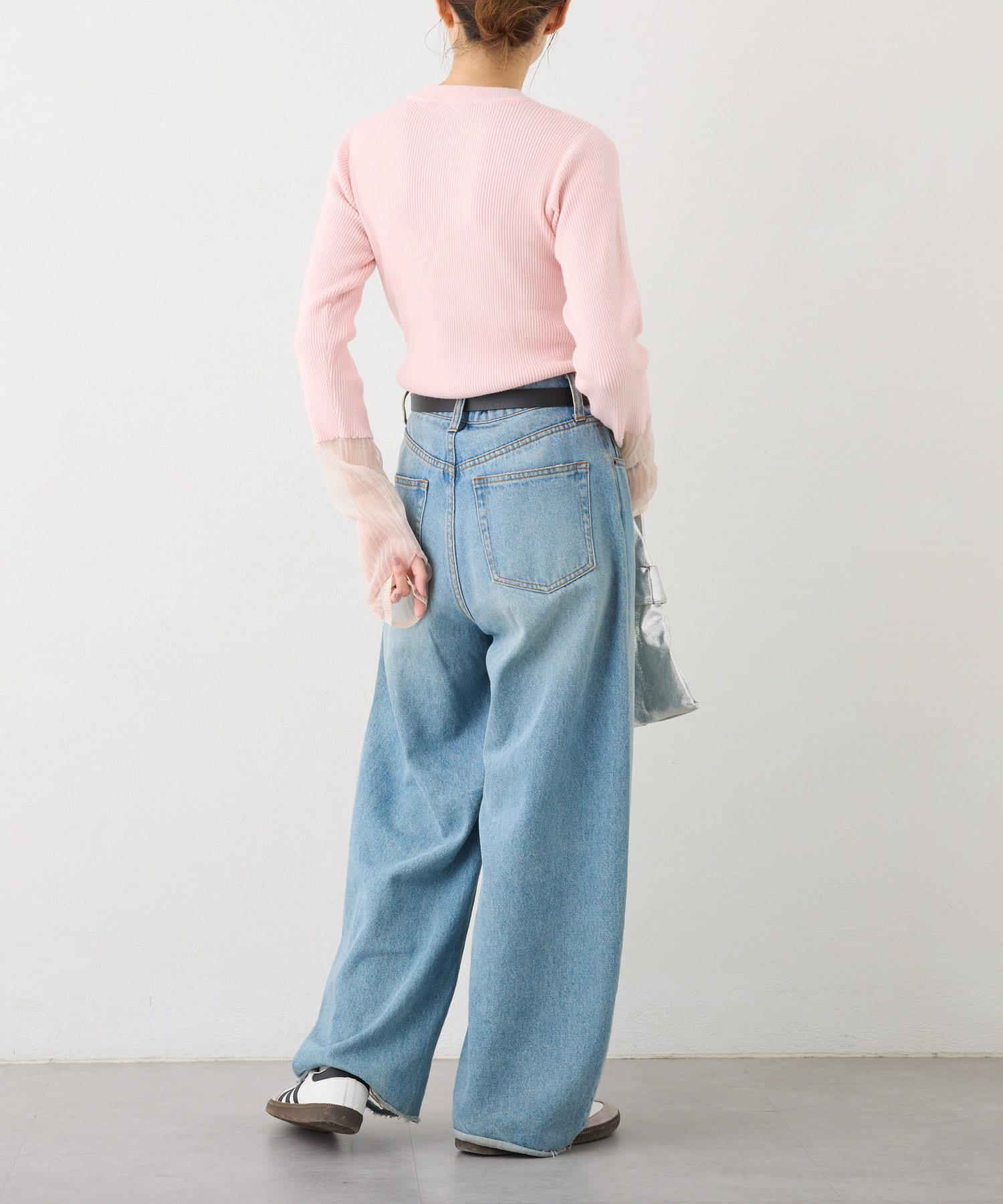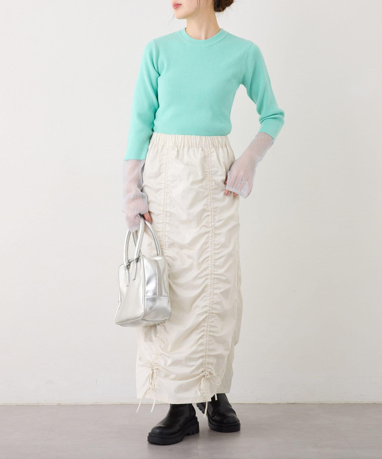 袖子是蕾絲的,所以是一款可愛的多功能針織衫,您可以盡情展示。