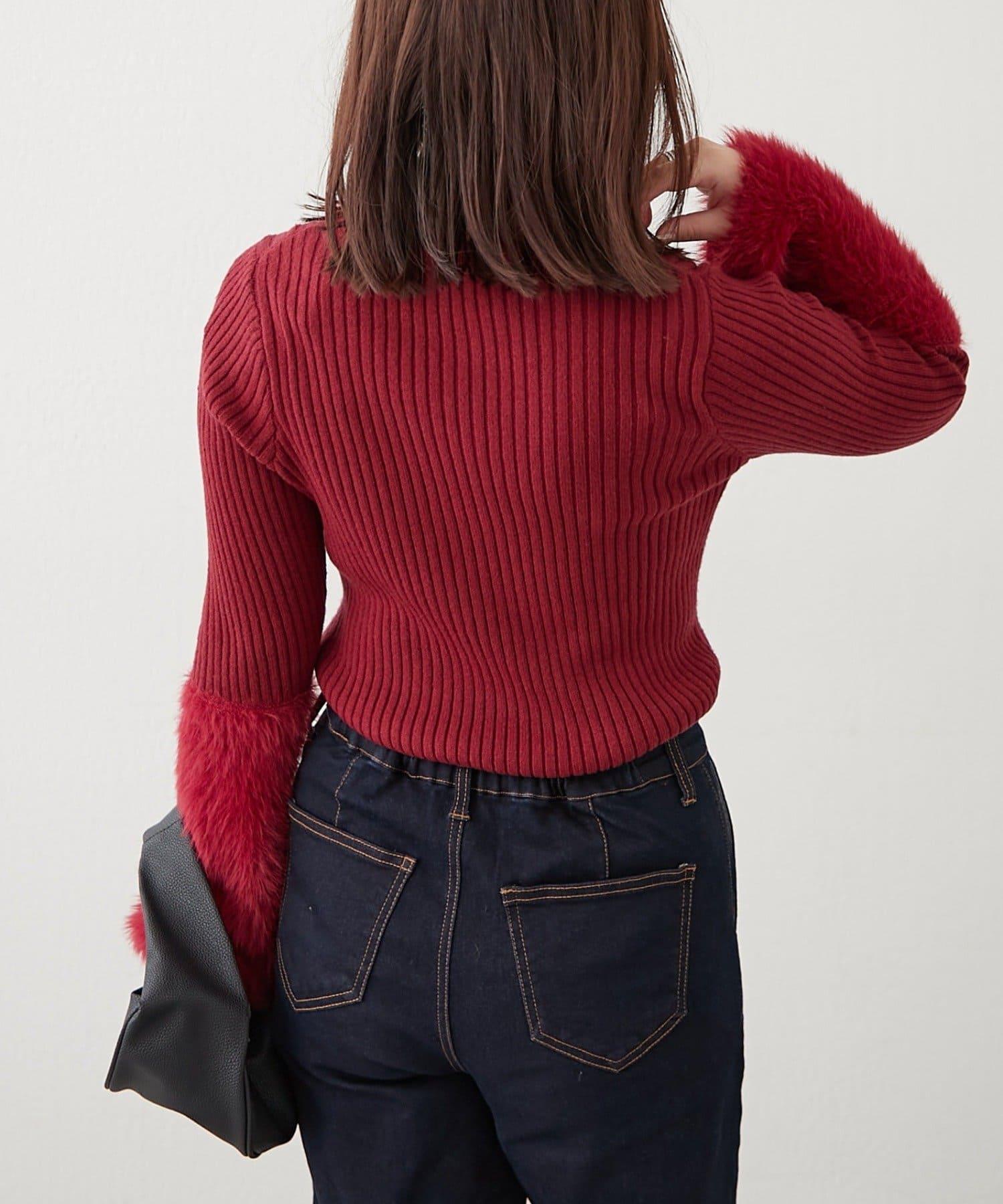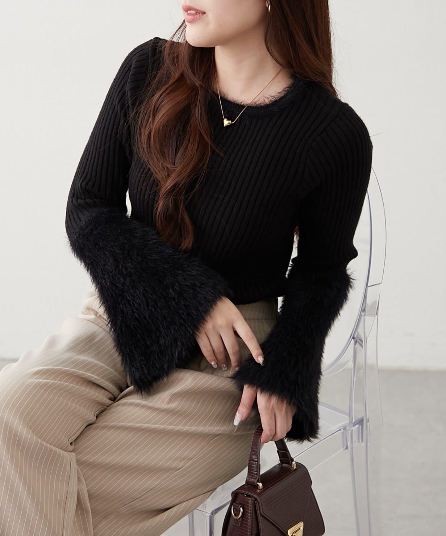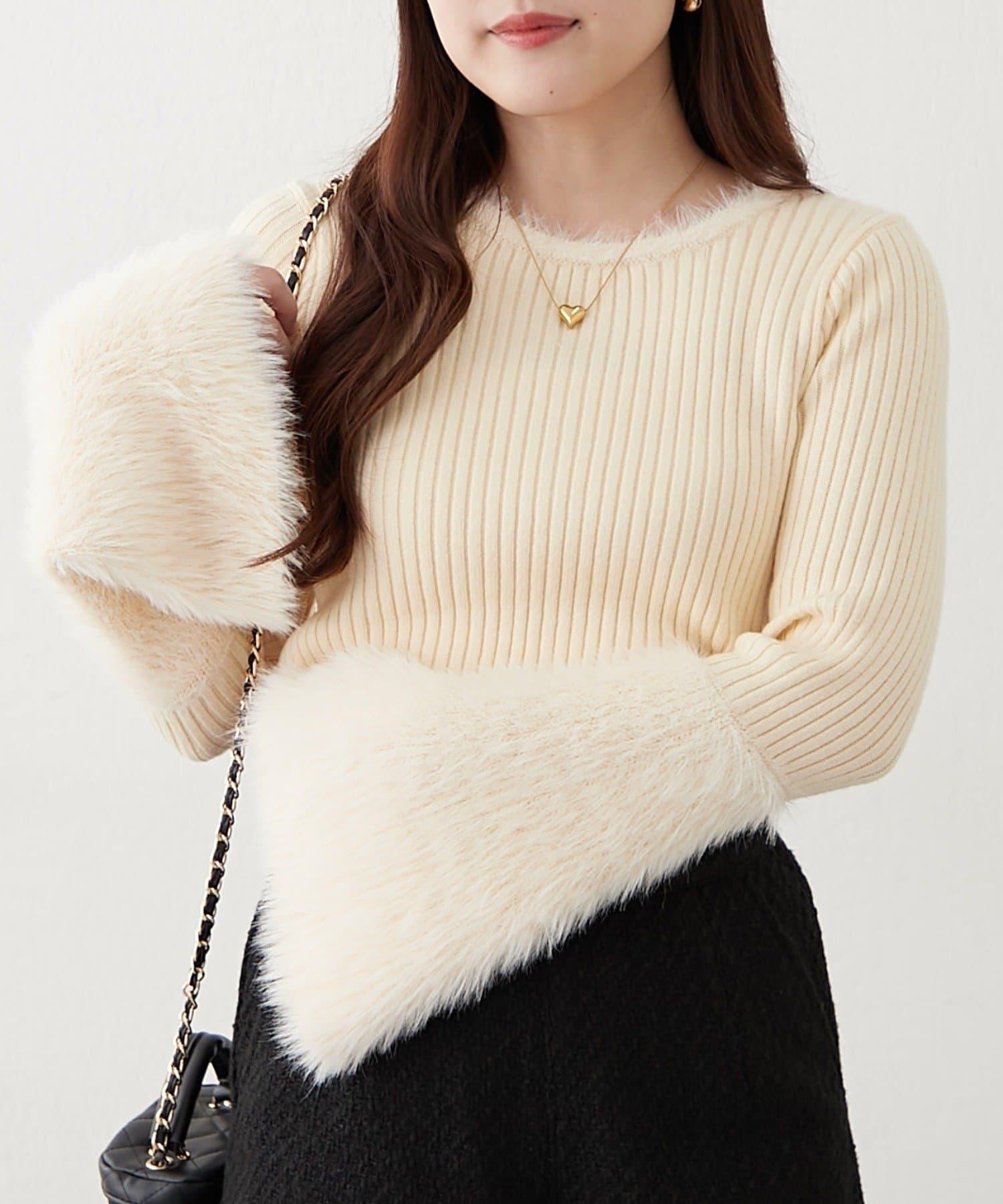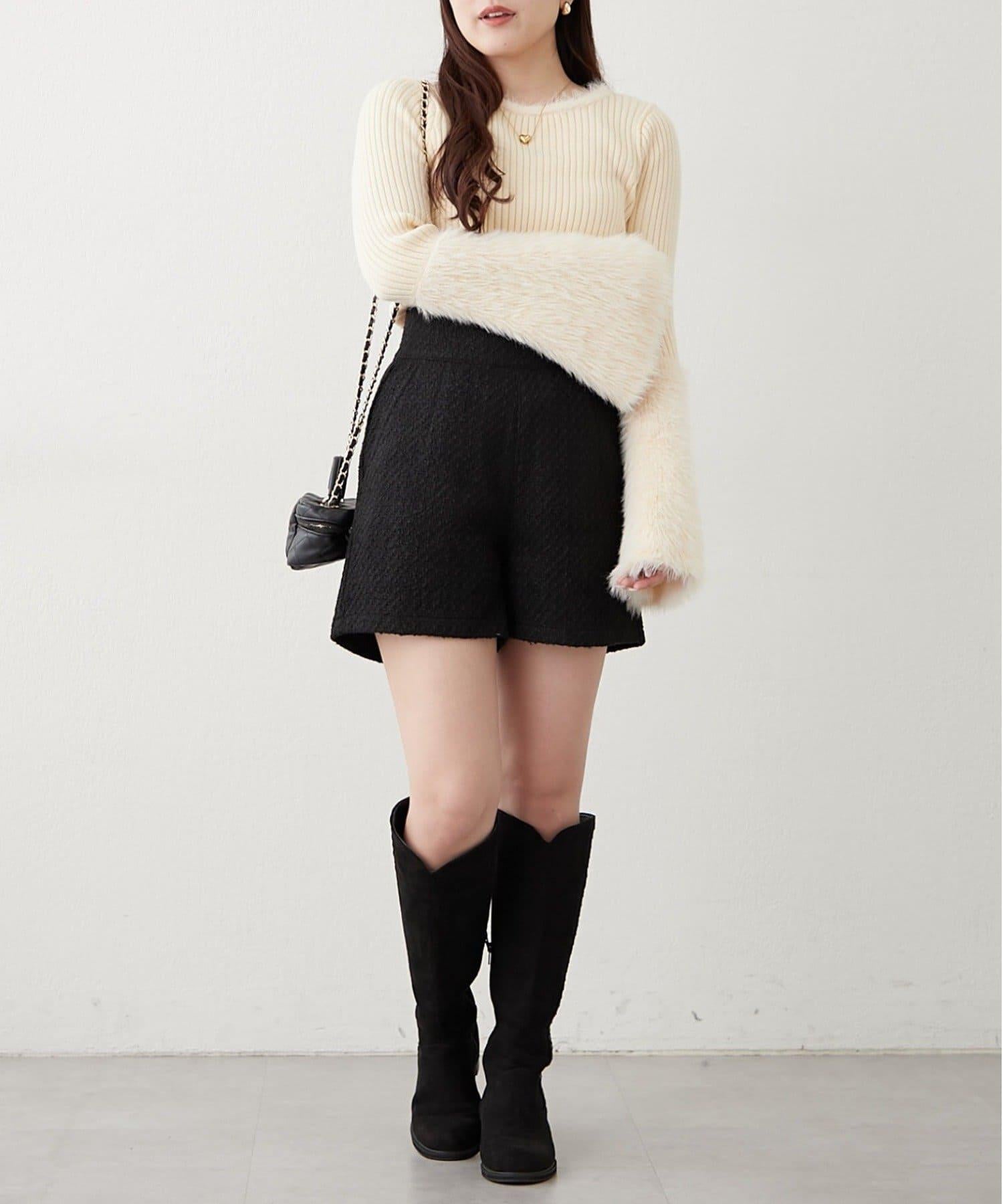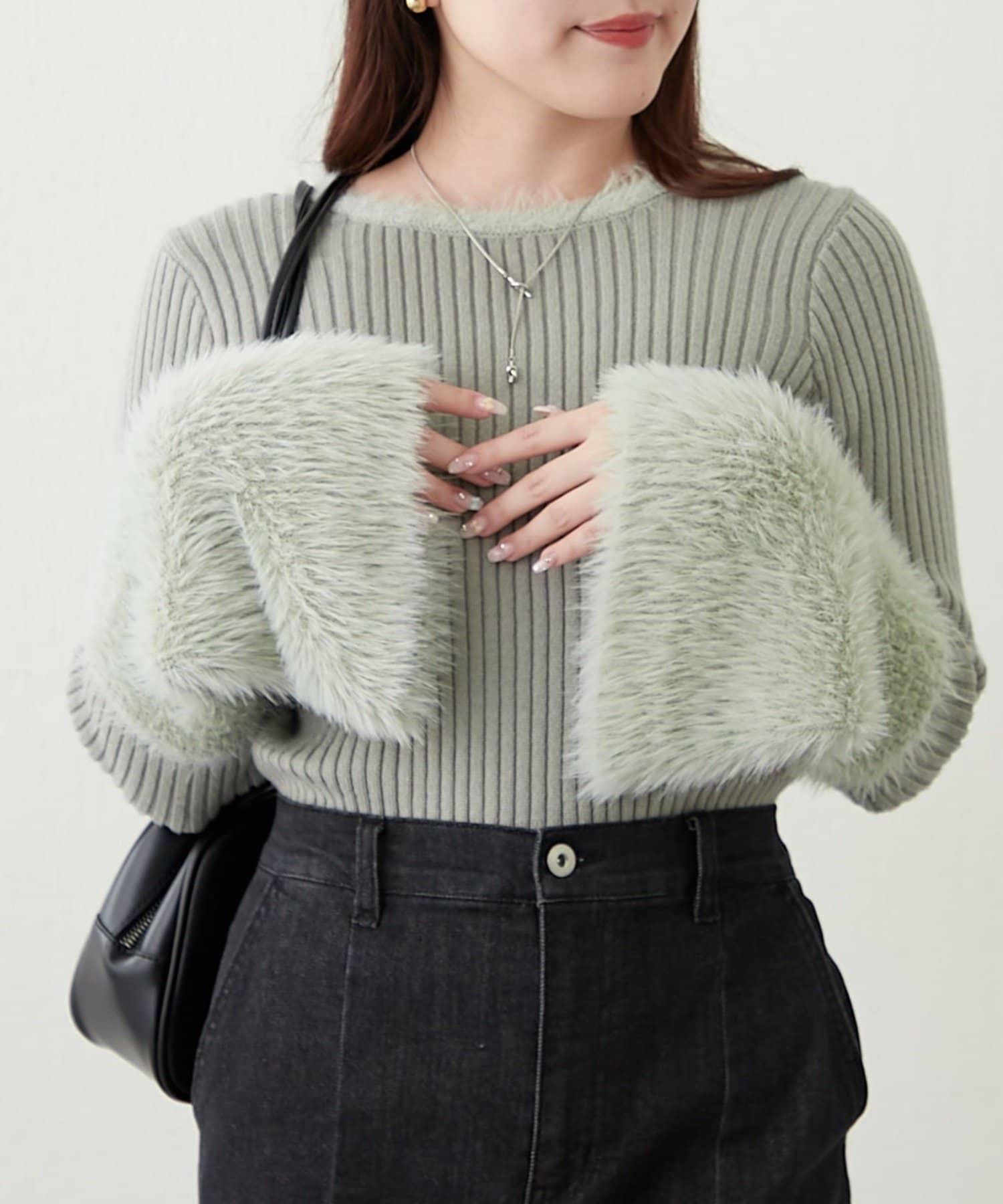 這款針織套衫的衣領和衣袖均採用羽毛紗設計。
