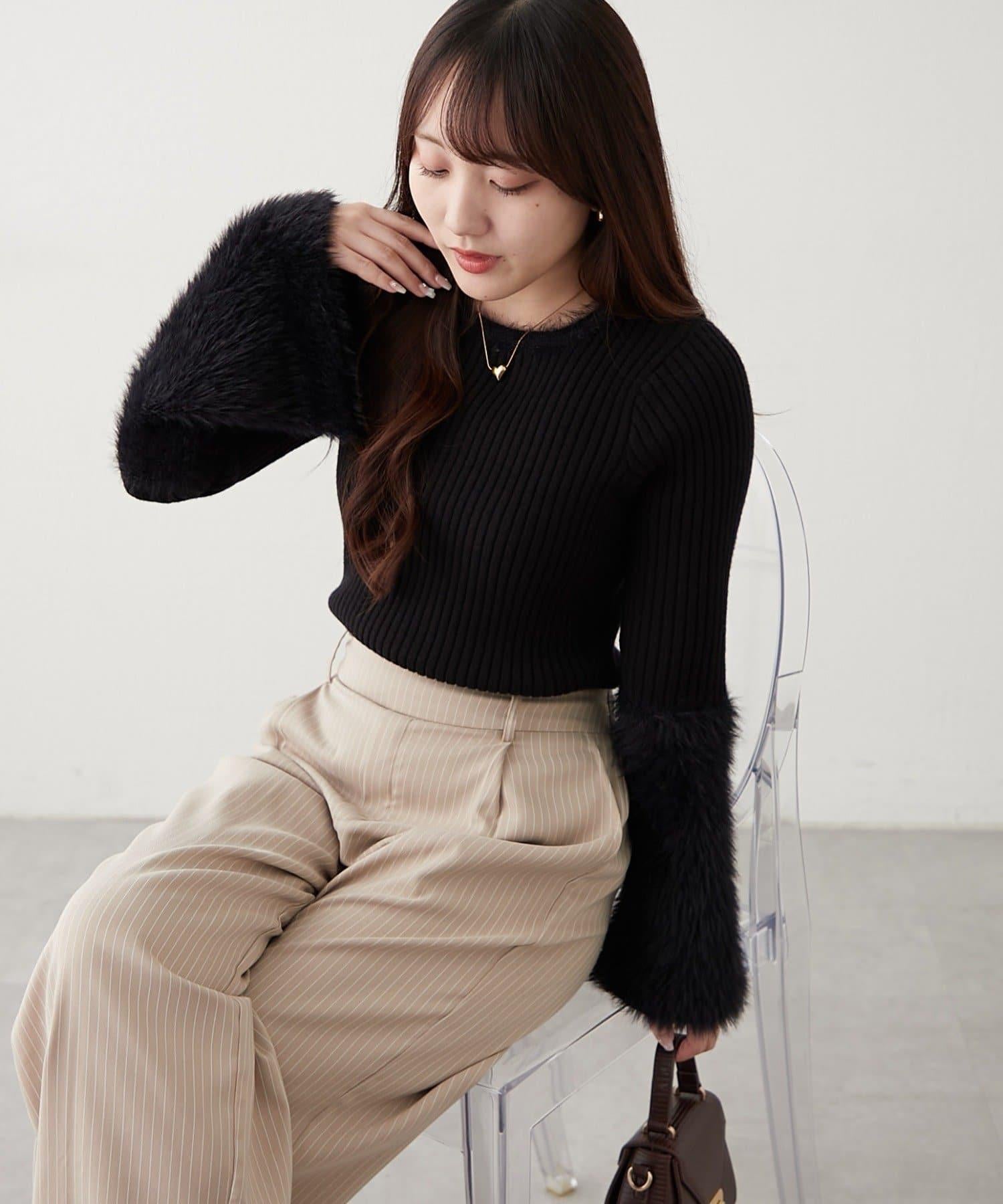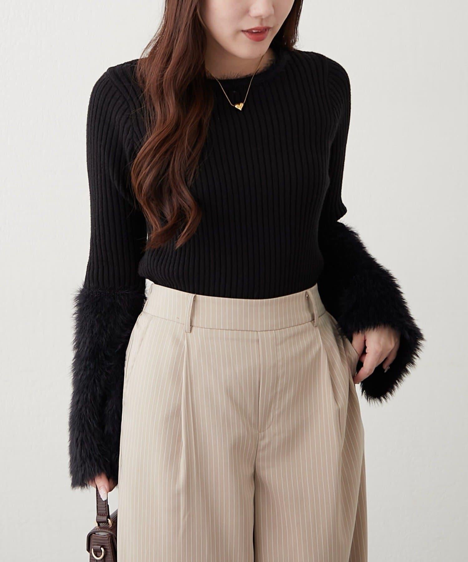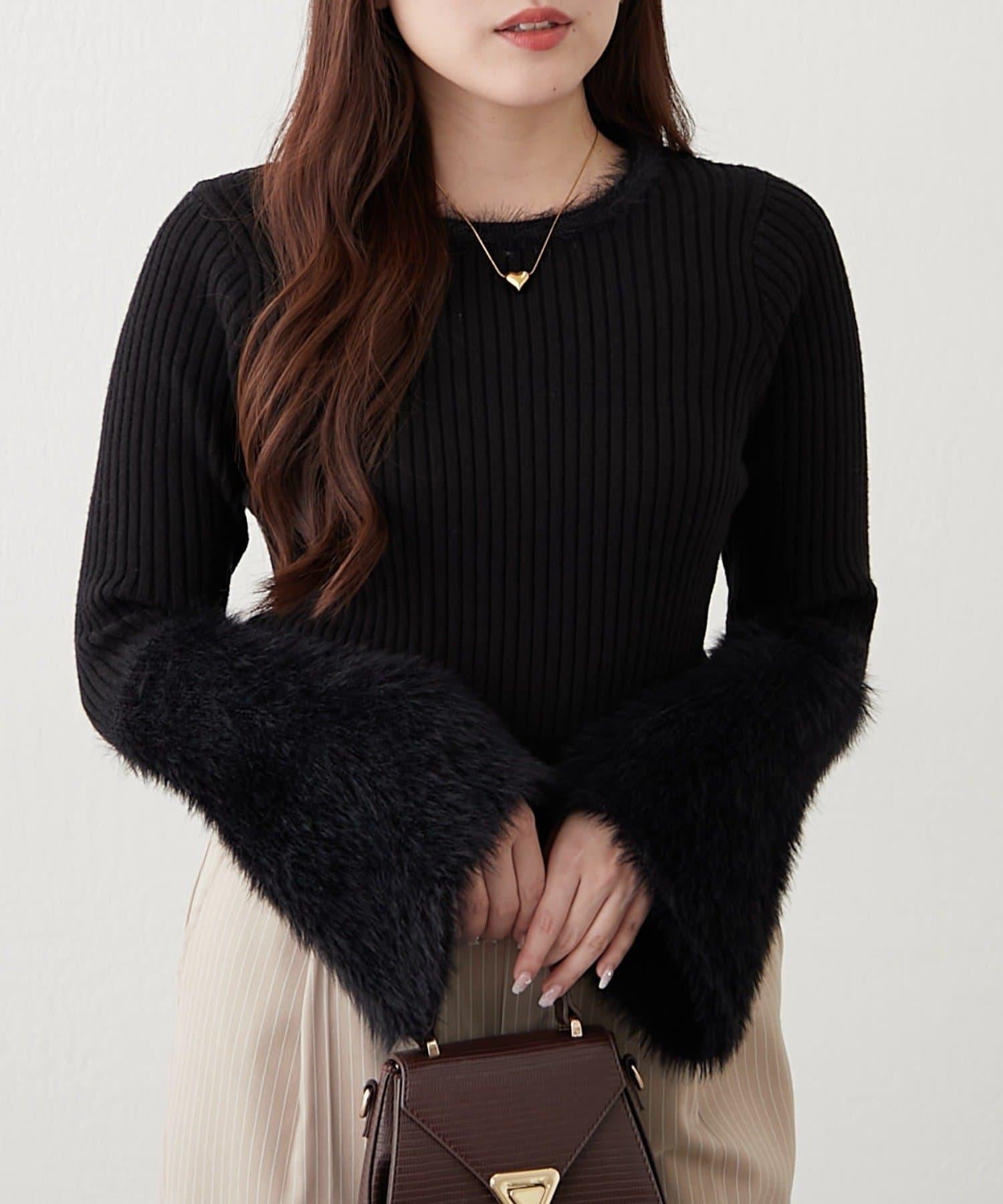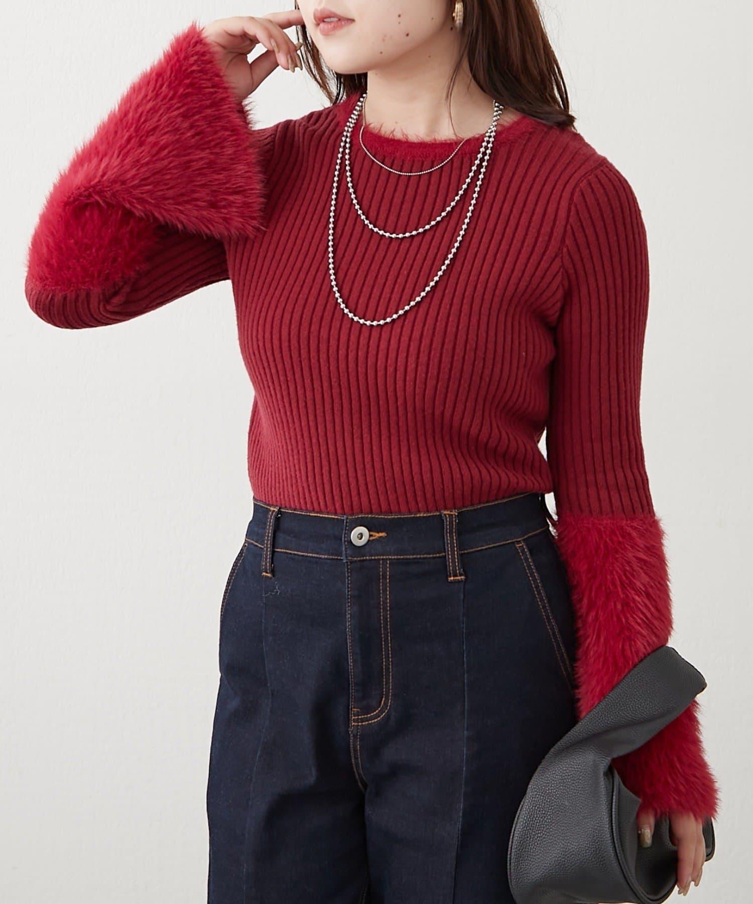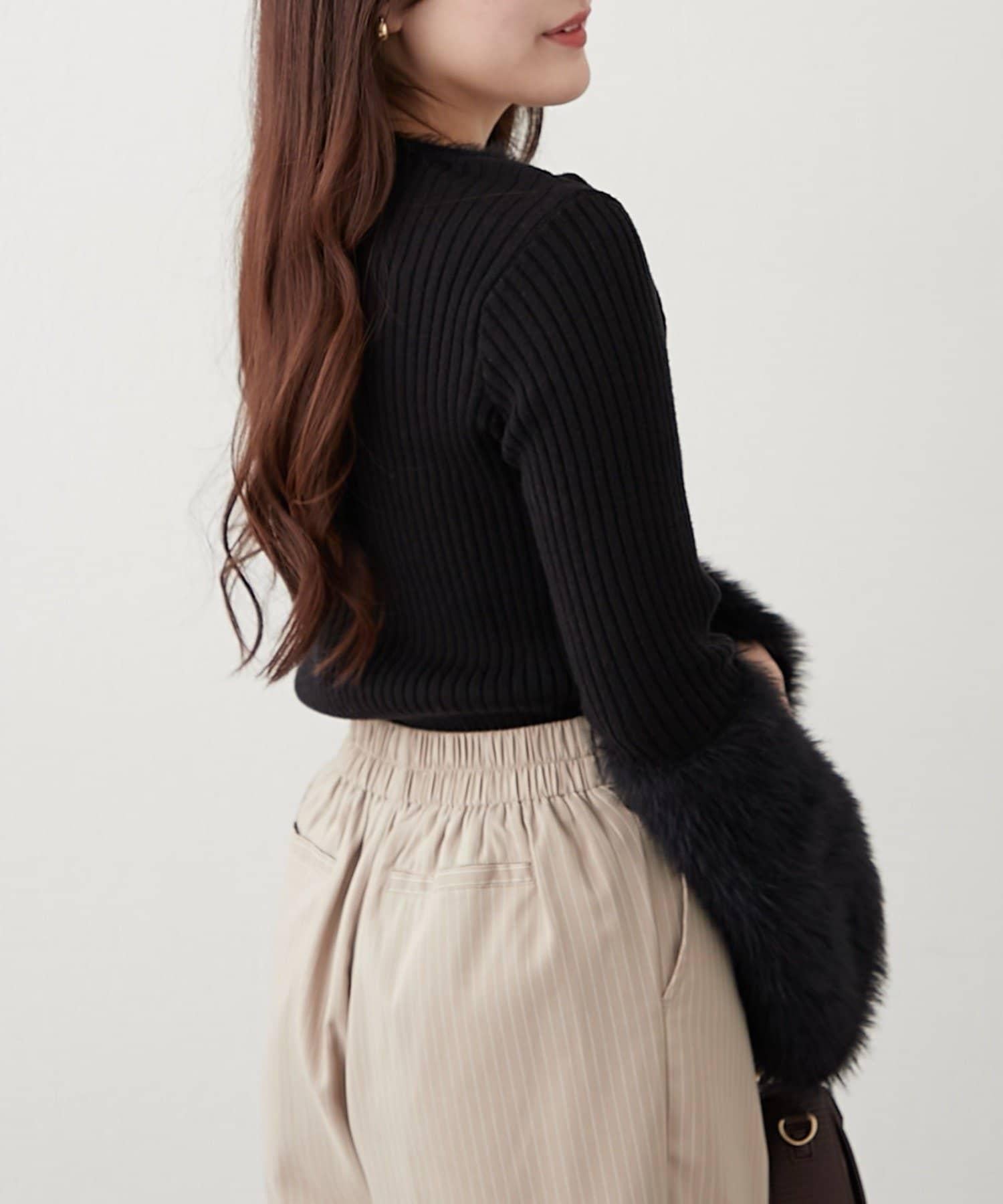 這款針織套衫的衣領和衣袖均採用羽毛紗設計。