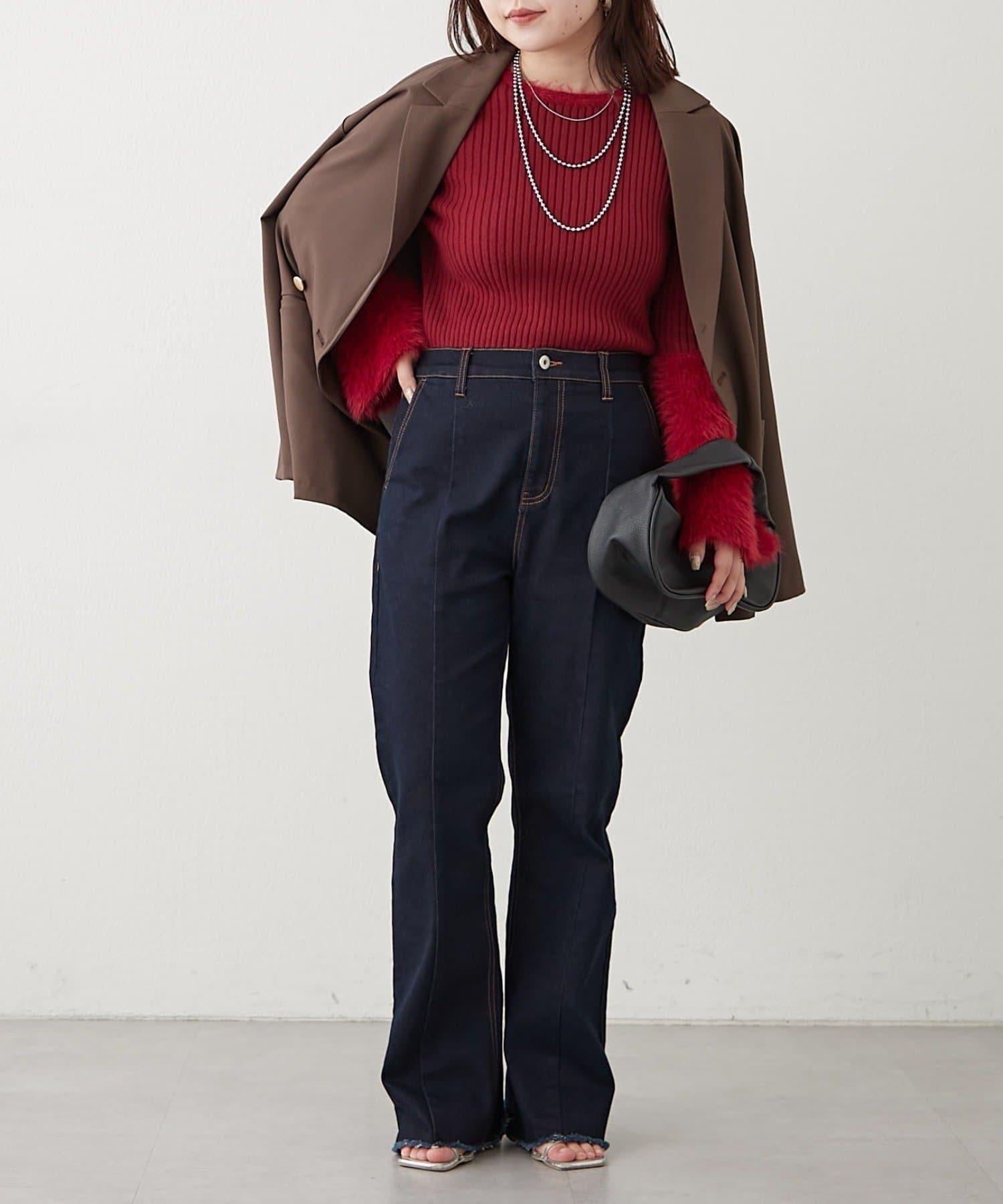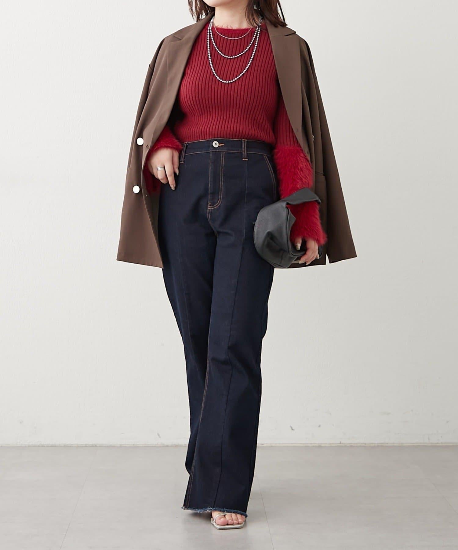 搭配喇叭牛仔褲也是不錯的選擇,打造出漂亮的休閒造型。