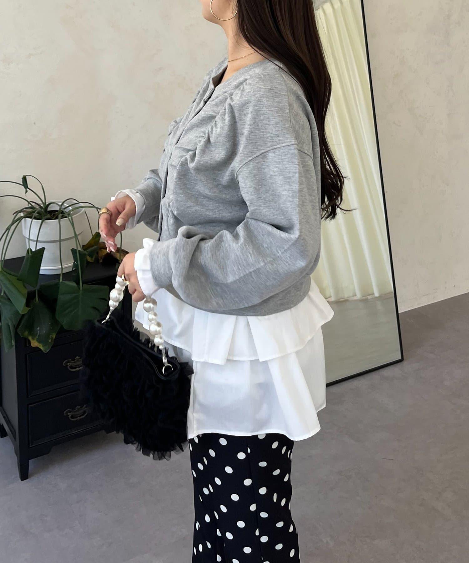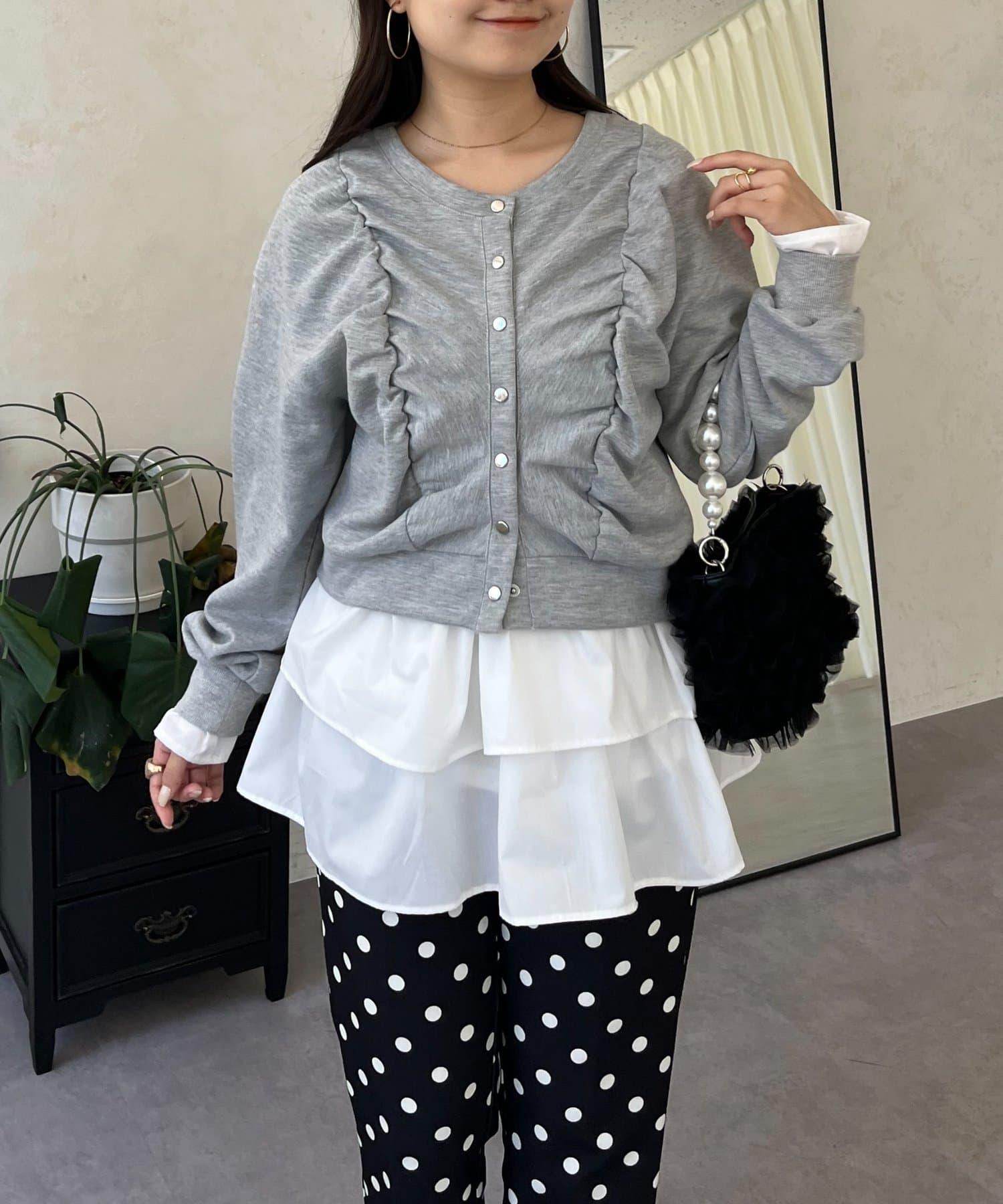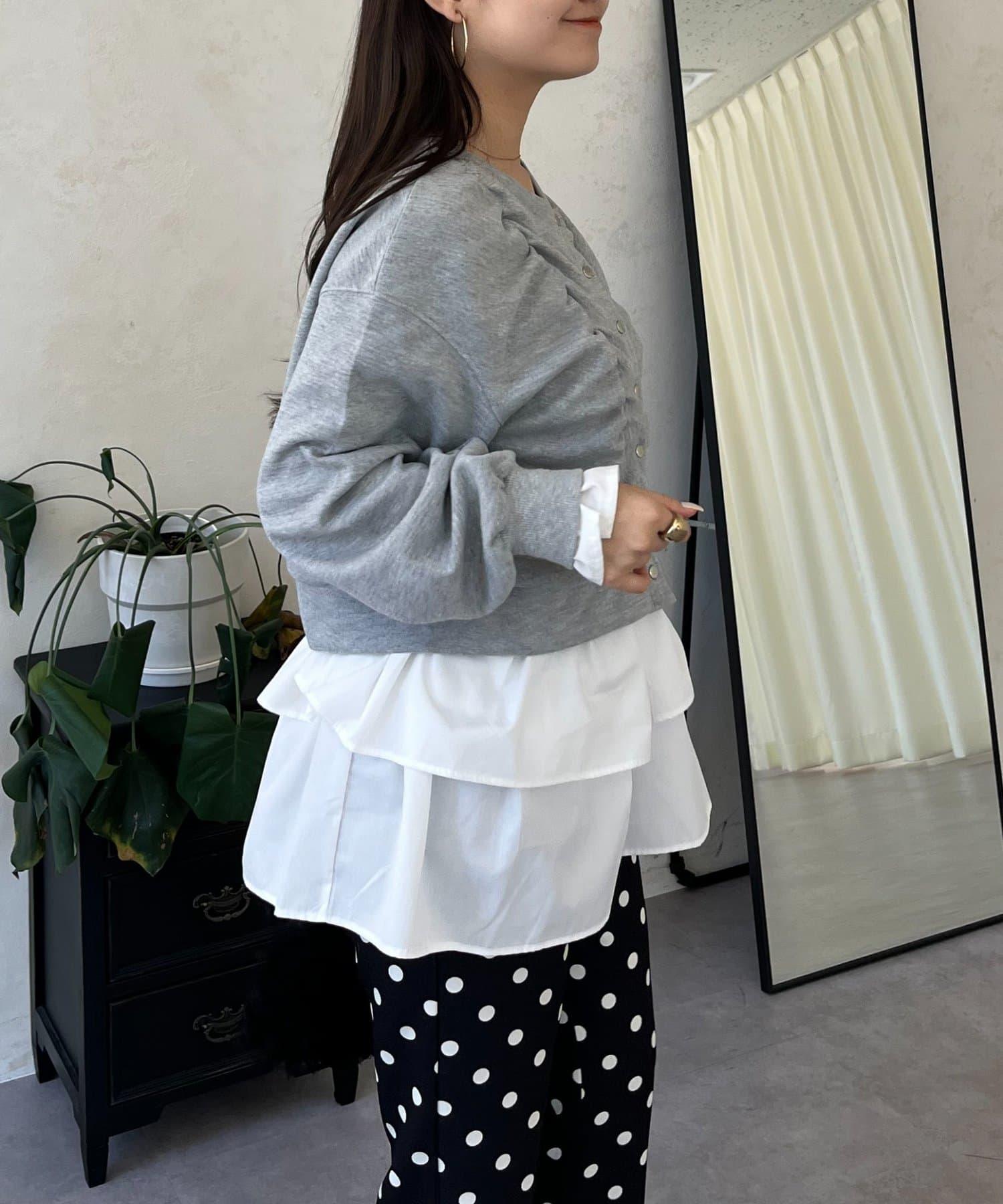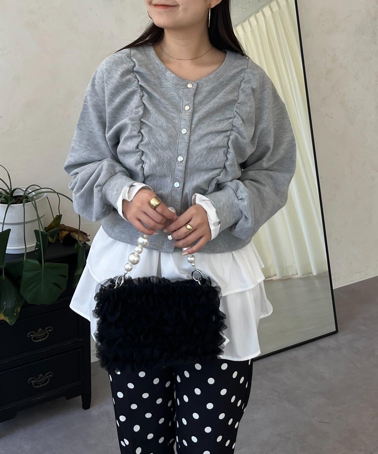 袖部荷葉邊前褶皺針織開衫
