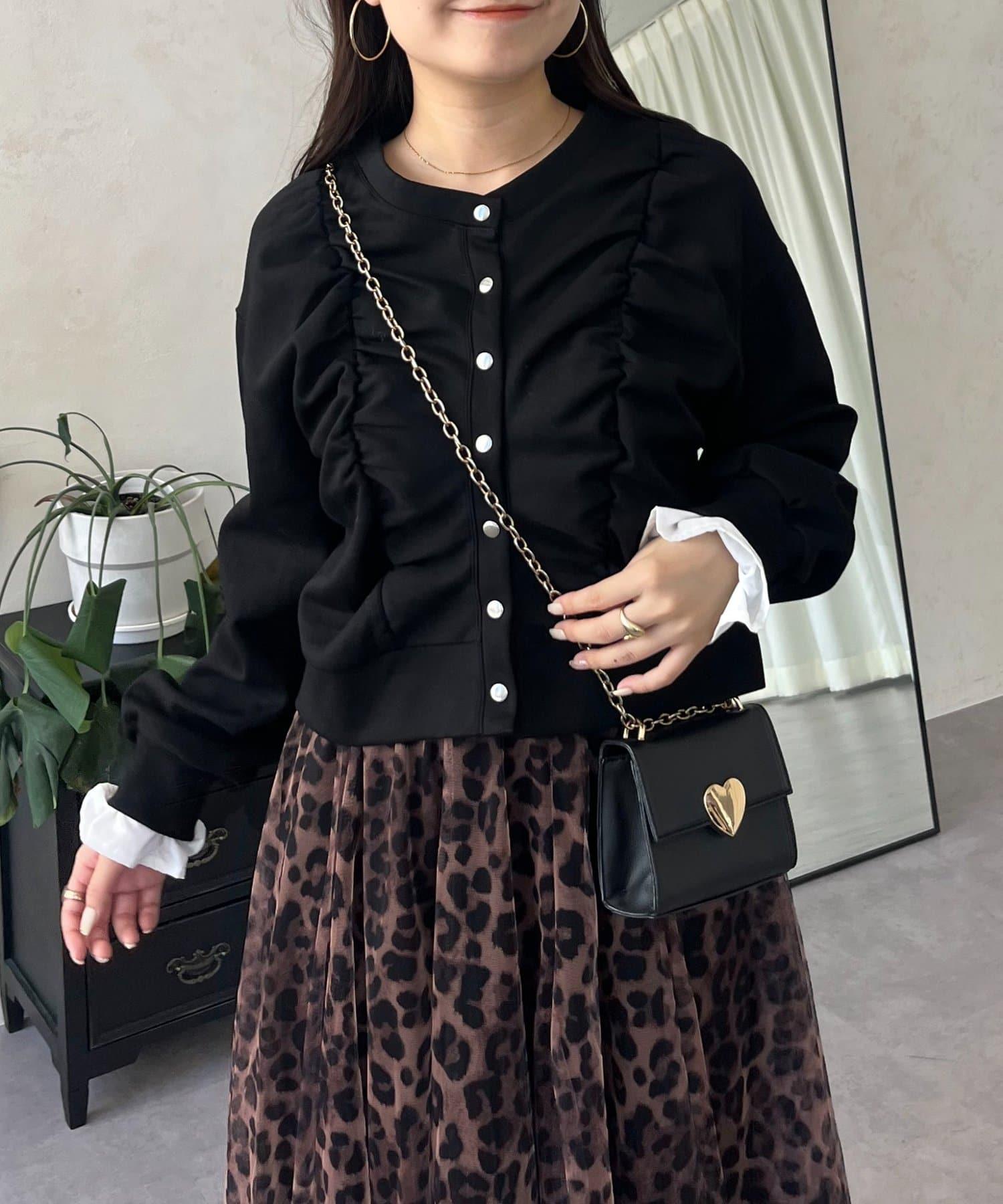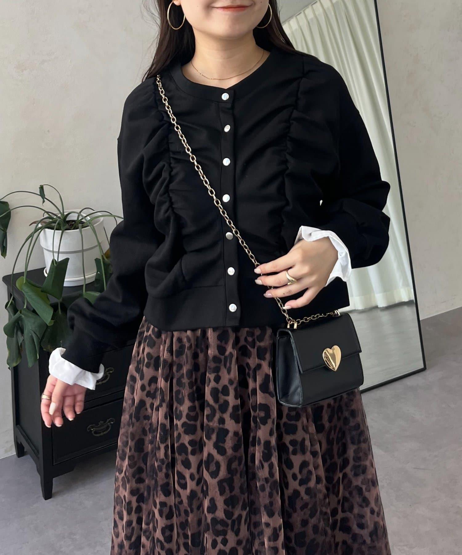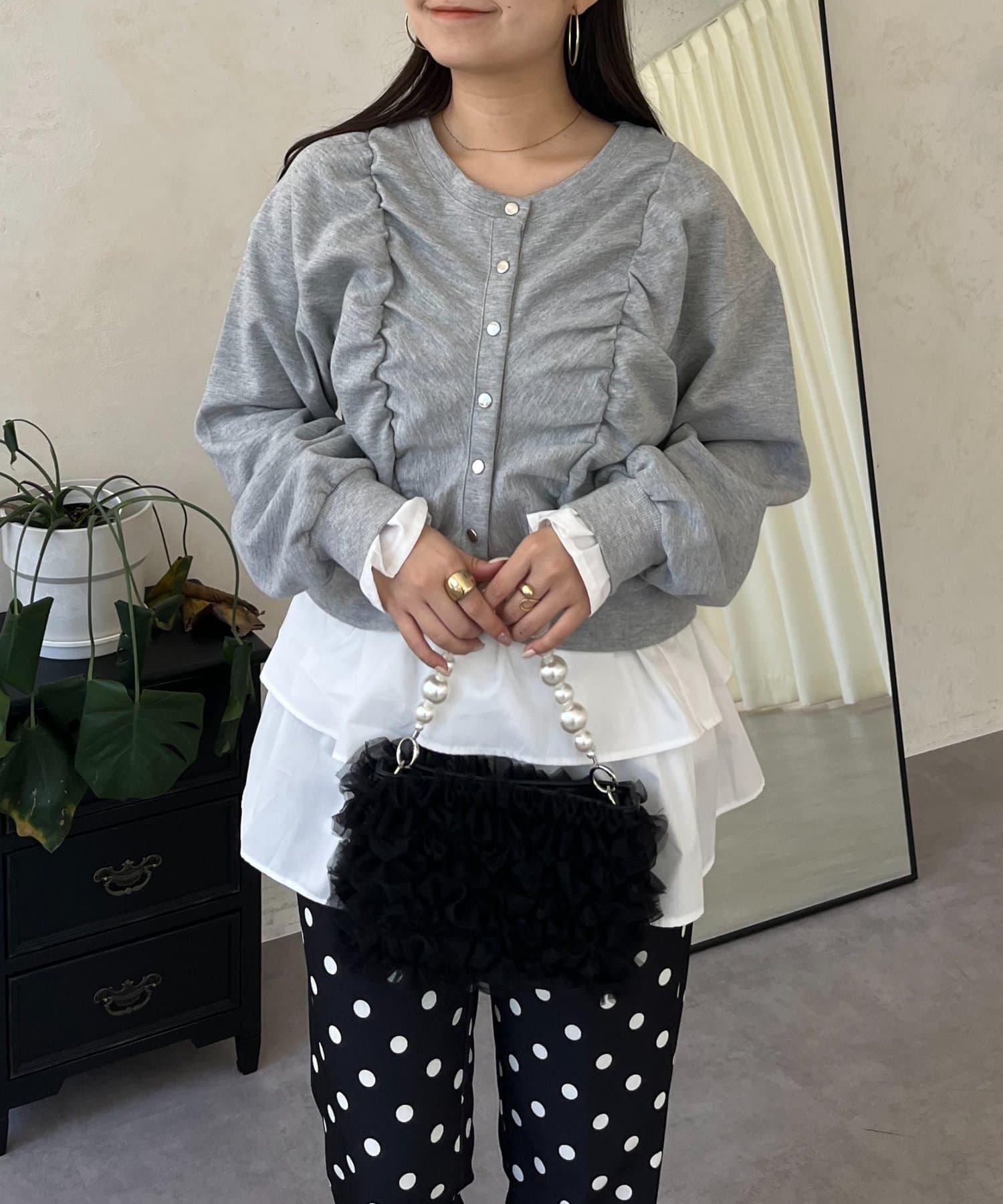 袖部荷葉邊前褶皺針織開衫