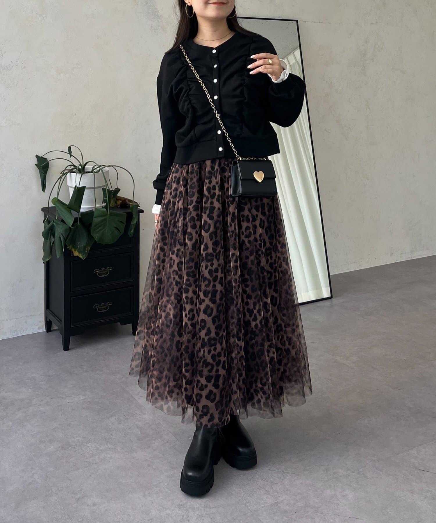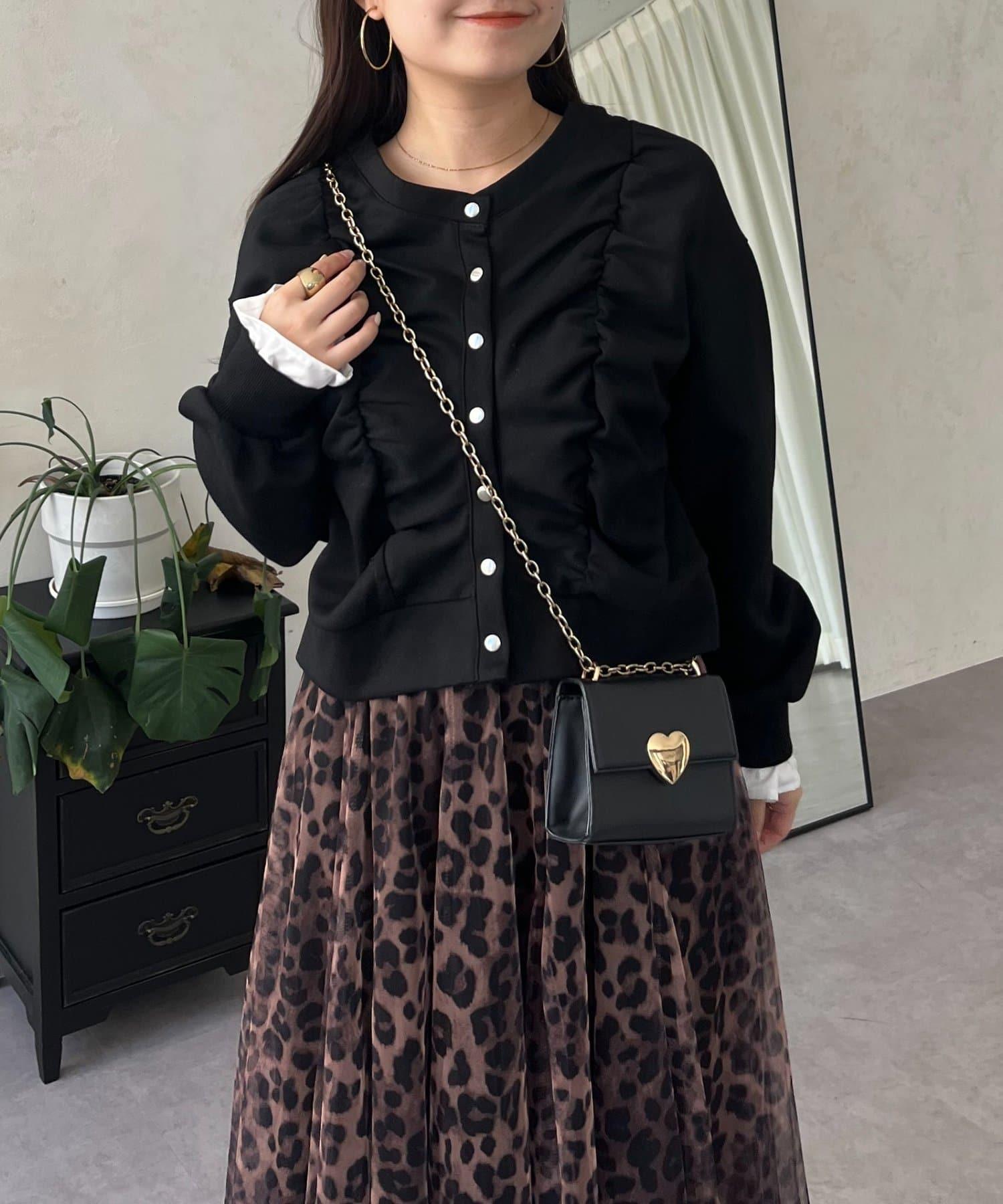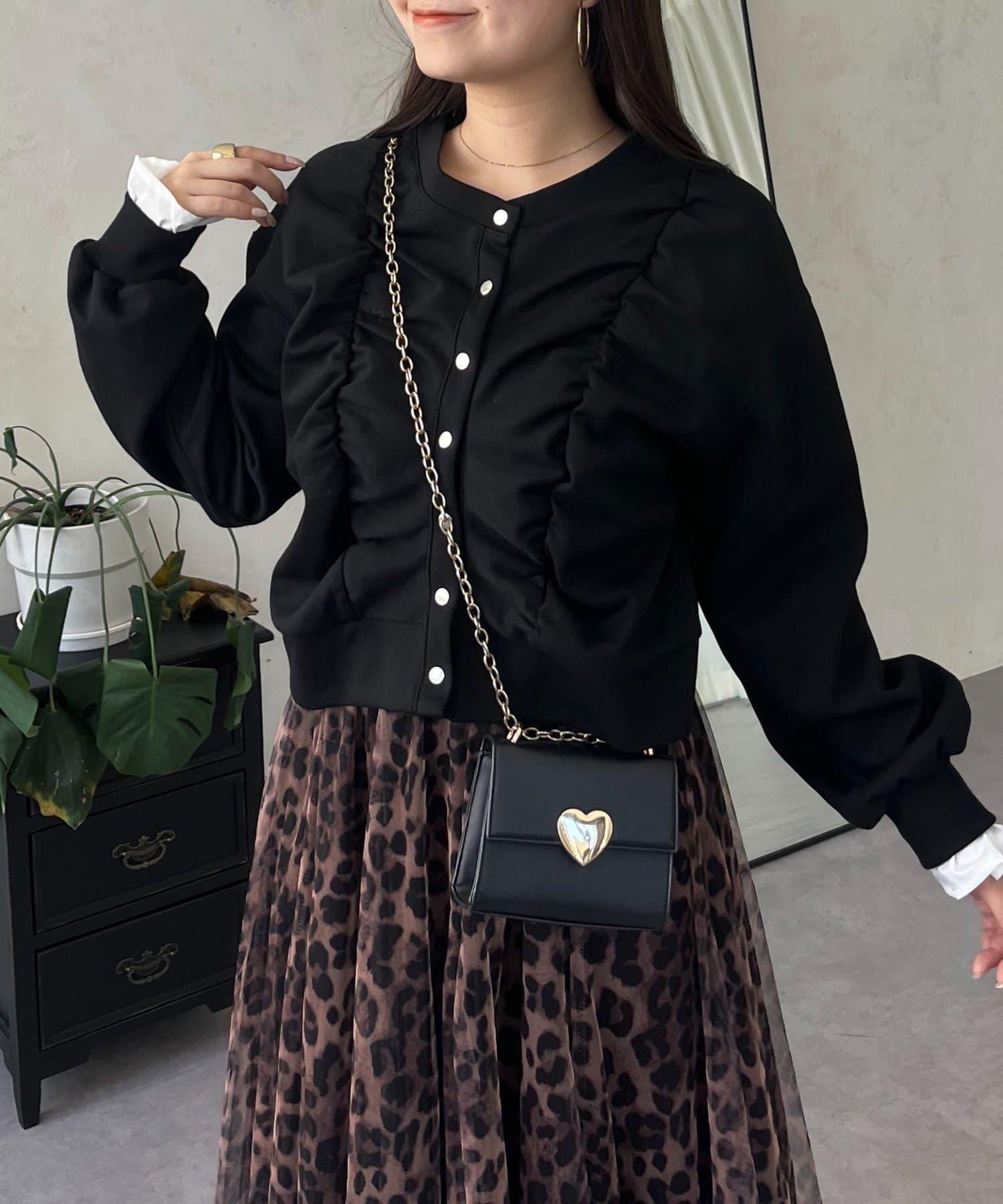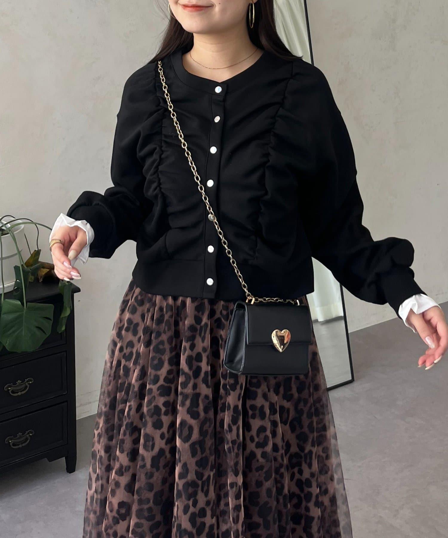 袖部荷葉邊前褶皺針織開衫