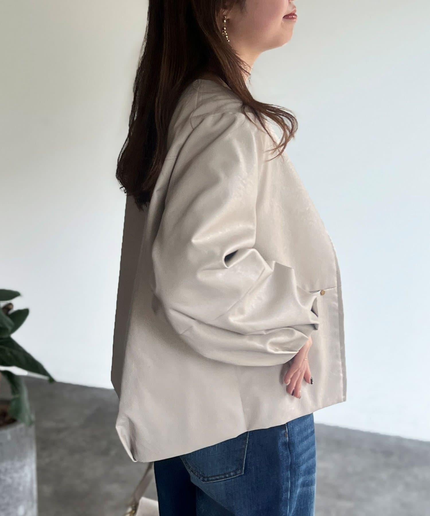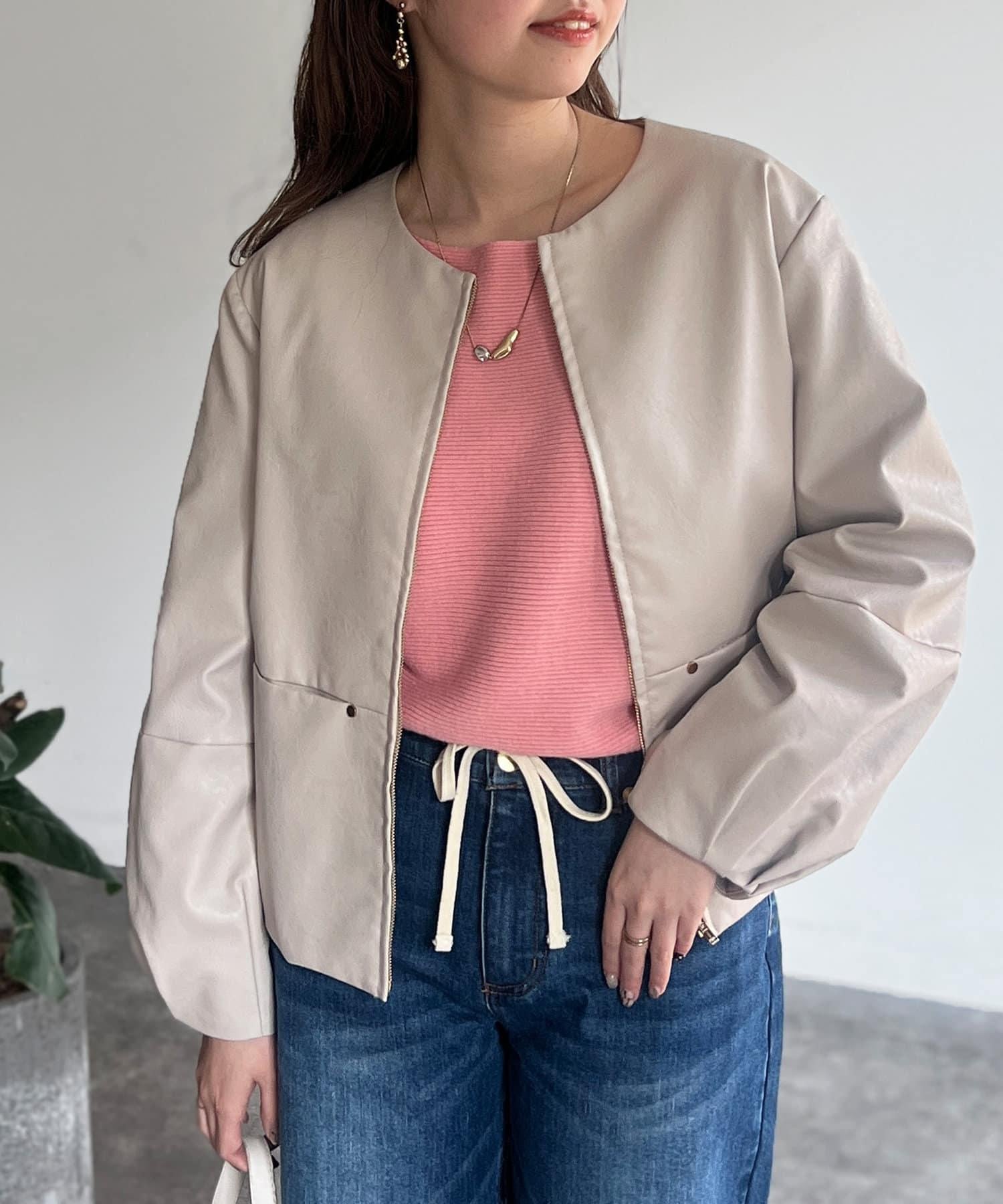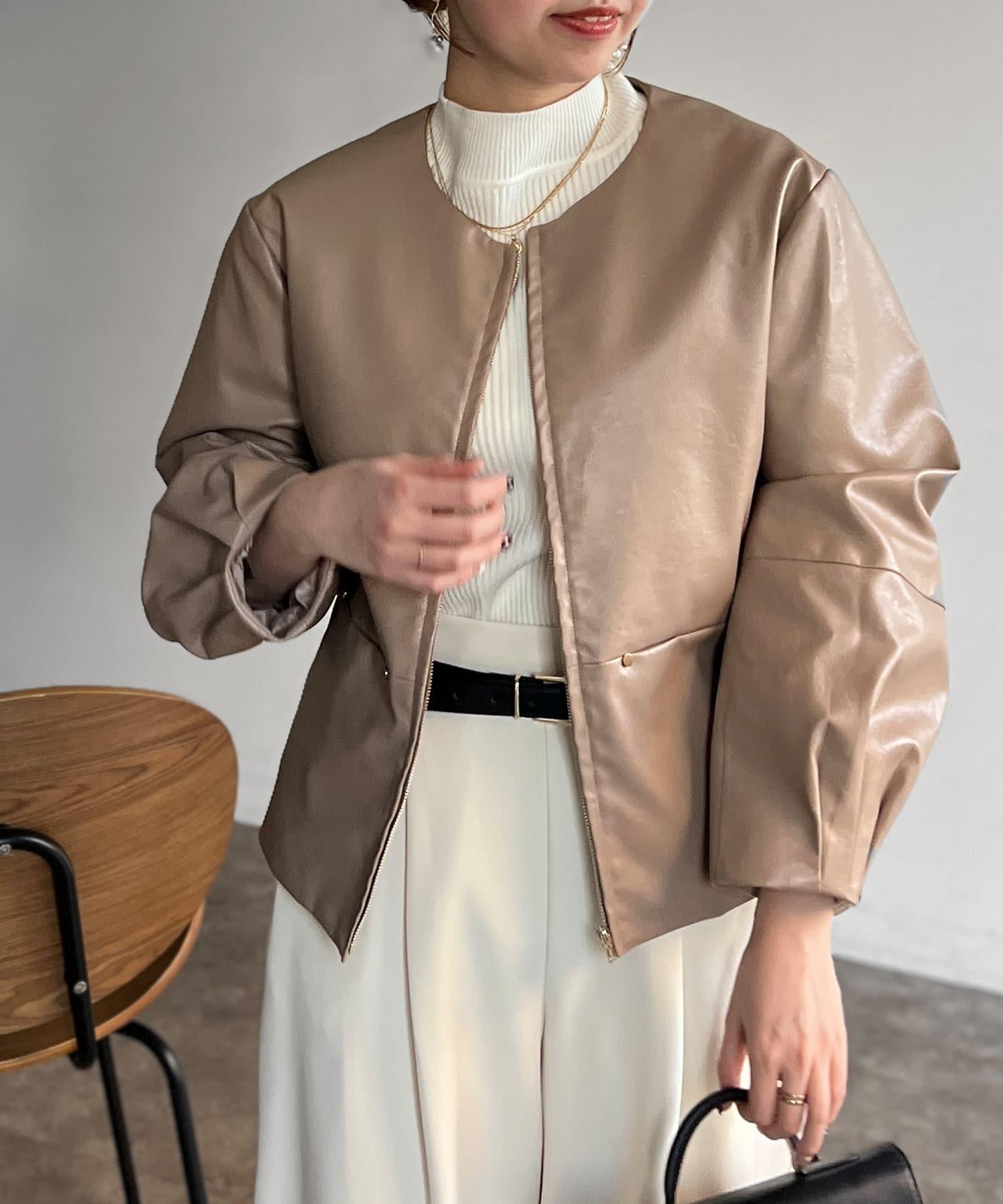 無領設計使臉部周圍給人以乾淨利落的印象。