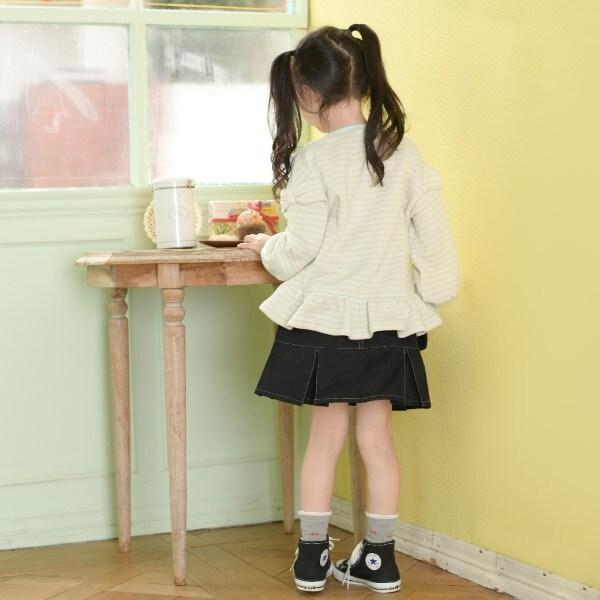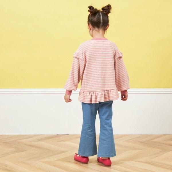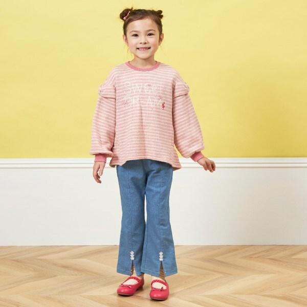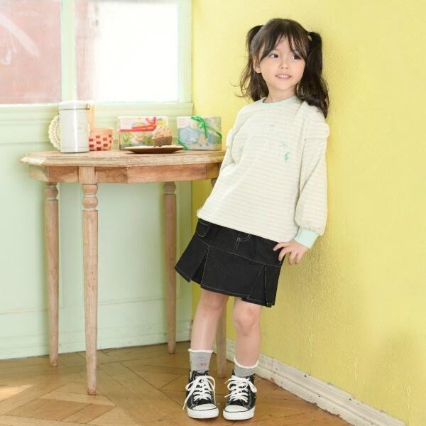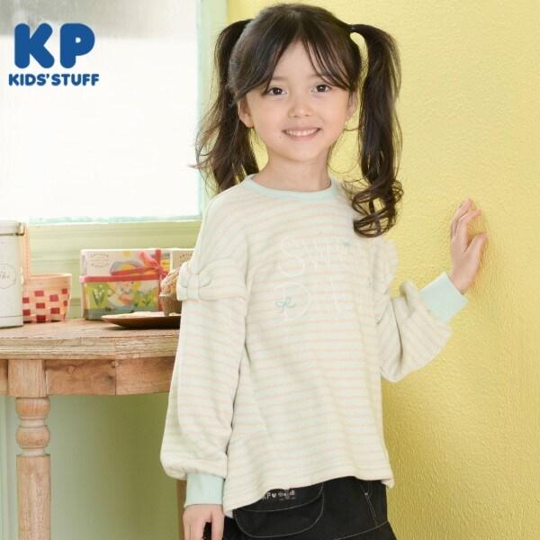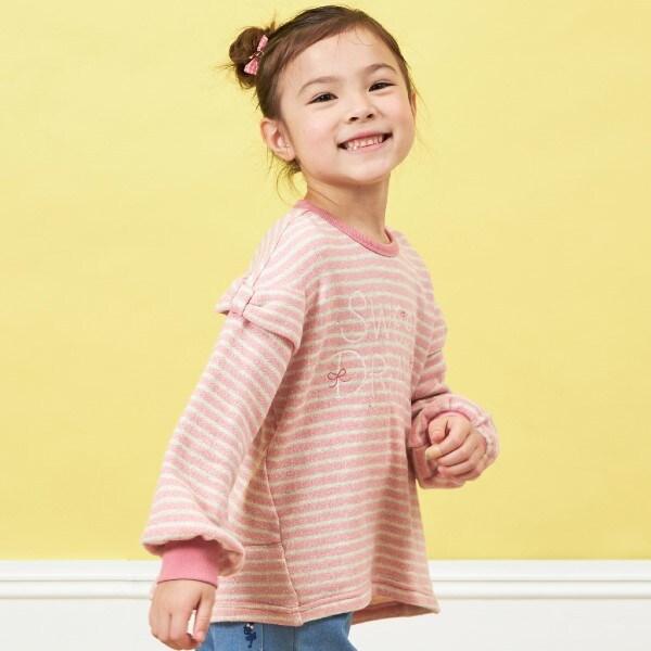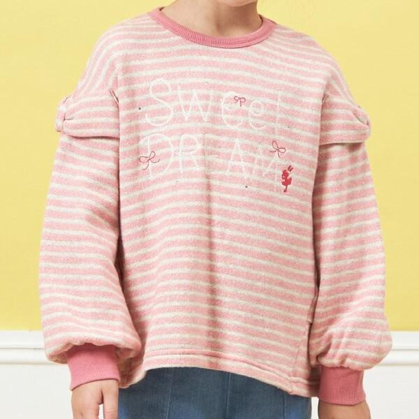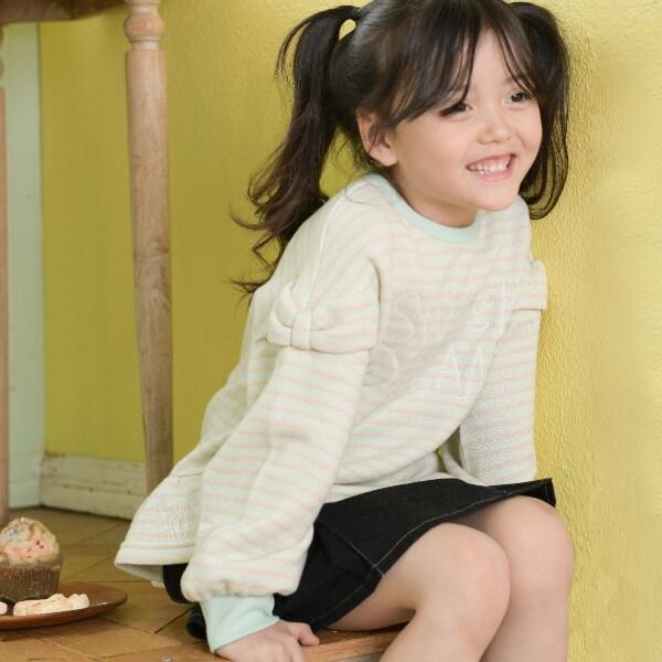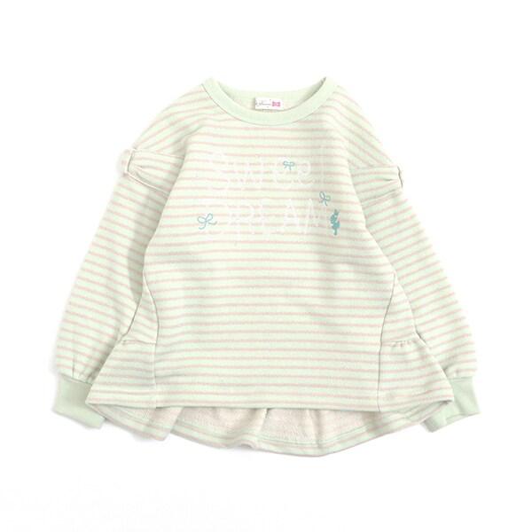 袖部蝴蝶結亮絲條紋衛衣(100~150)