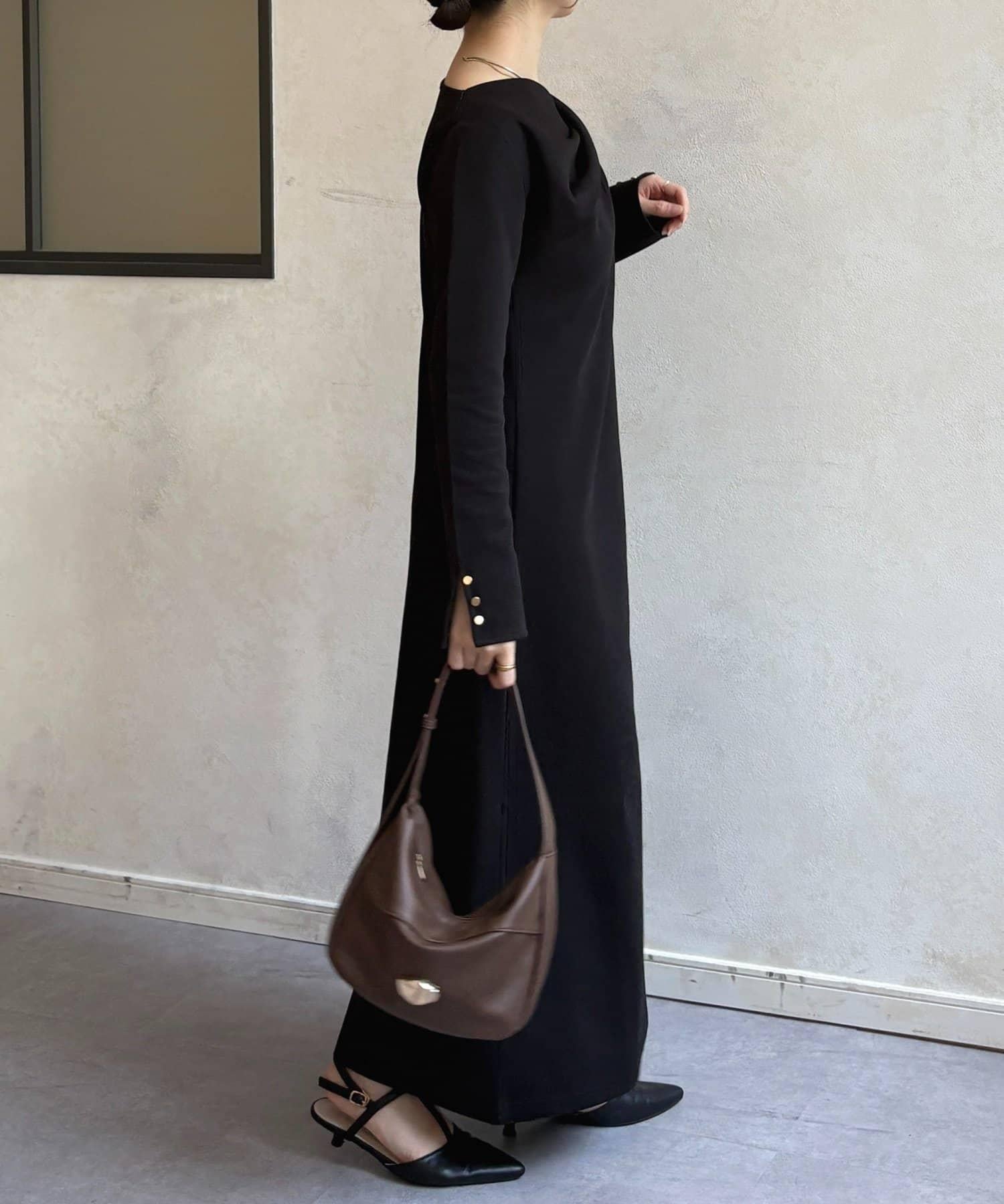 連衣裙的肩頸部線條優美,佩戴有存在感的配飾會讓協調感更佳◎。