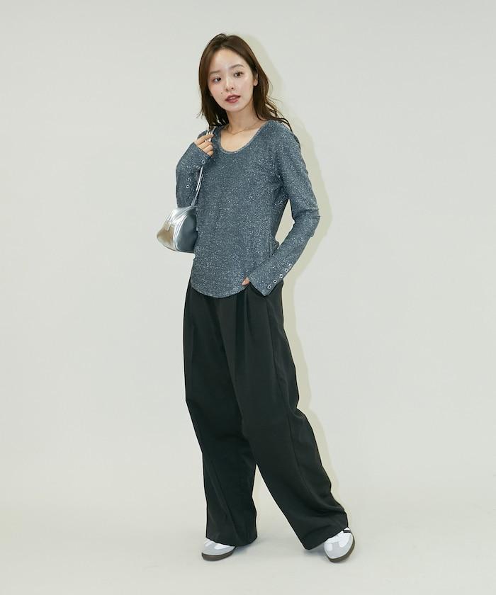 袖口的紐扣可以打開,改變成喇叭袖的輪廓。