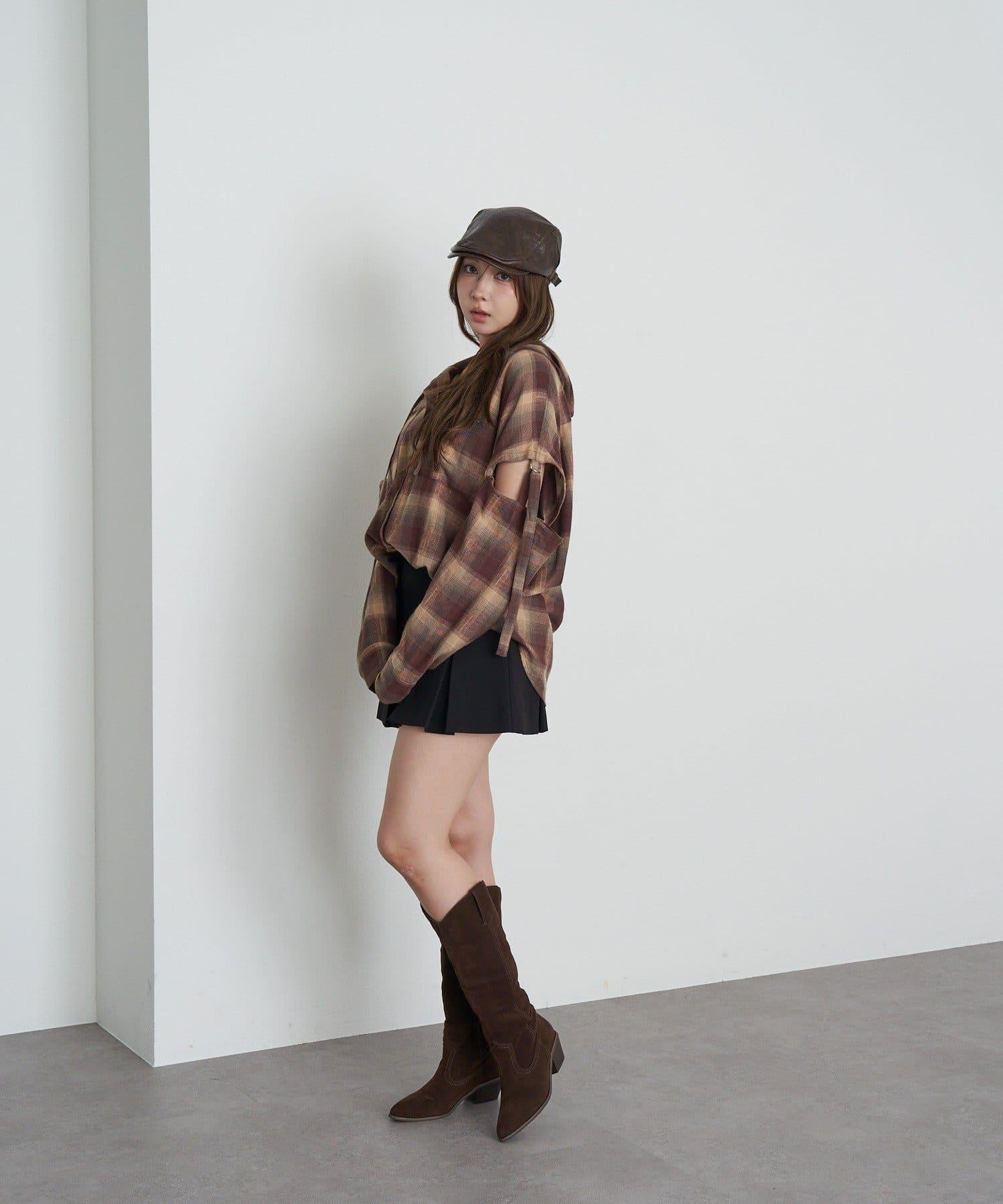 女性化:搭配迷你長裙和靴子。