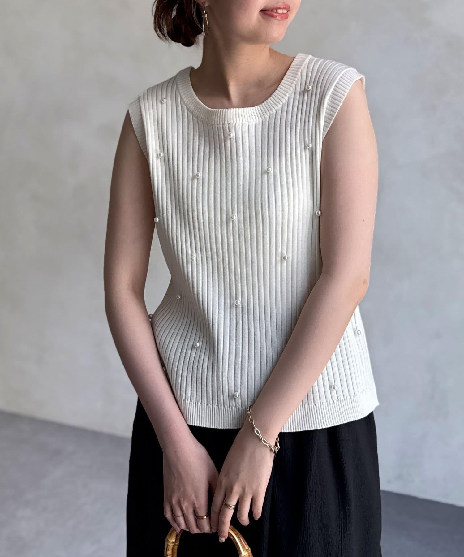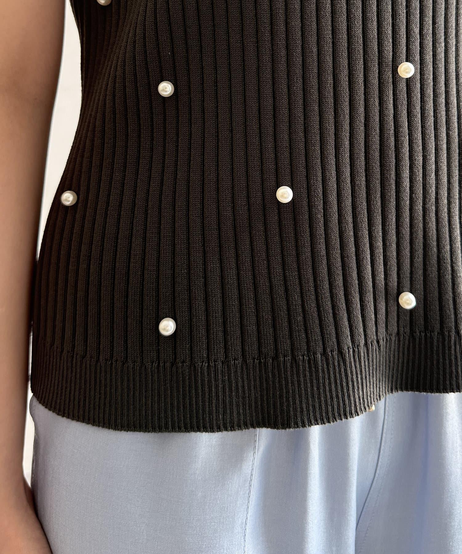 珍珠被單獨錘入針織物中,使其成為一款優雅迷人的針織衫。
