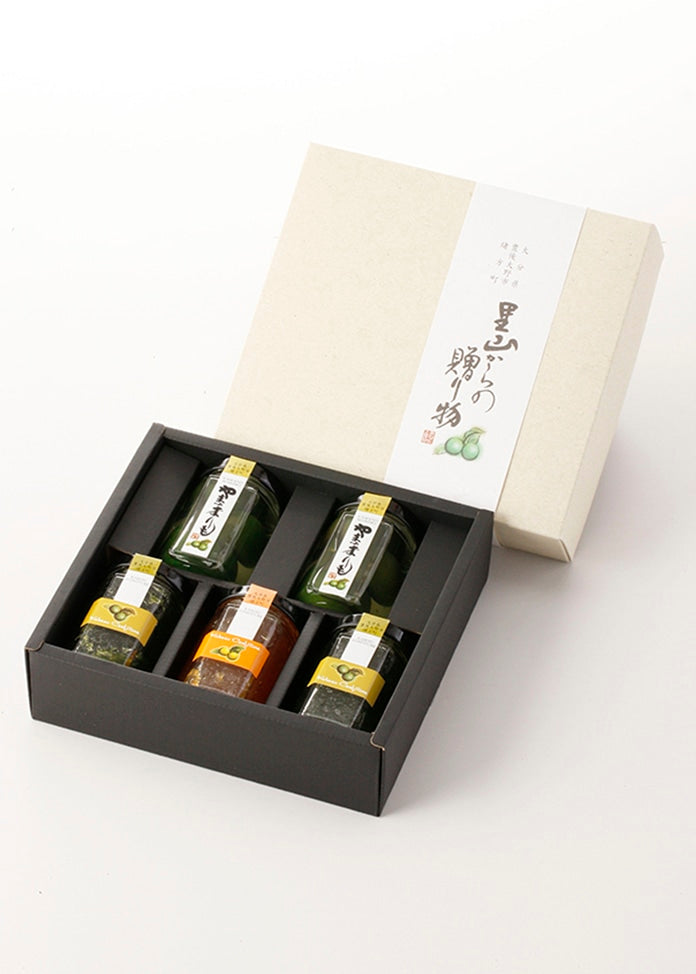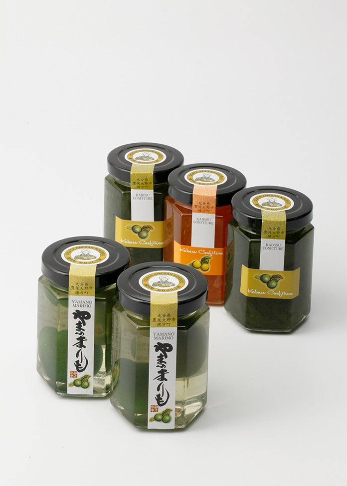 Anesan Kobo只使用大分縣緒方町生產的Kabosu,製造無添加劑和無味的Kabosu產品。這套禮品包含兩種類型的Kabosu Confiture,它協調了酸味和甜味,以及Yama-no-marimo,它是通過將Kabosu煨制10天製成的,具有像日本糖果一樣的奶油甜味。Kabosu Confiture Green(2件):用夏季收穫的綠色Kabosu製成的橘子醬。享受其清新的香味,適度的酸度和甜度。Kabosu Confiture Yellow(1件):用深秋和冬季收穫的黃色kabosu製成的橘子醬。享受完全成熟的Kabosu的溫和酸度和甜味。2件]'Hayadori'kabosu,在初夏果實較小的時候採收,被燉了10天。裡面的味道就像日本的糖果,有一種新的甜味和質感。