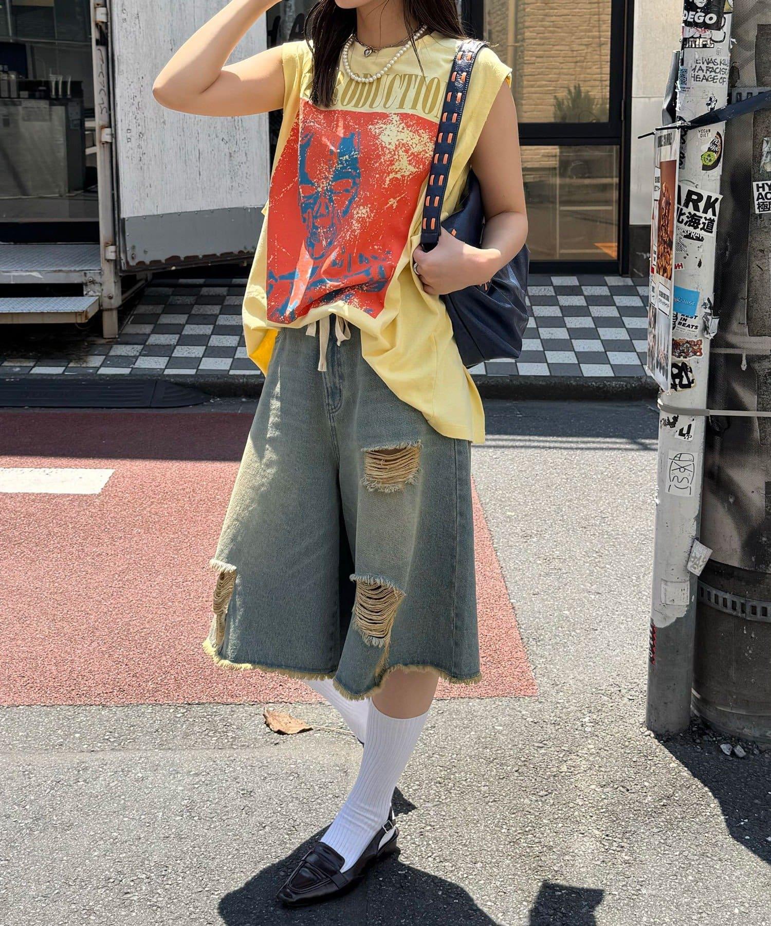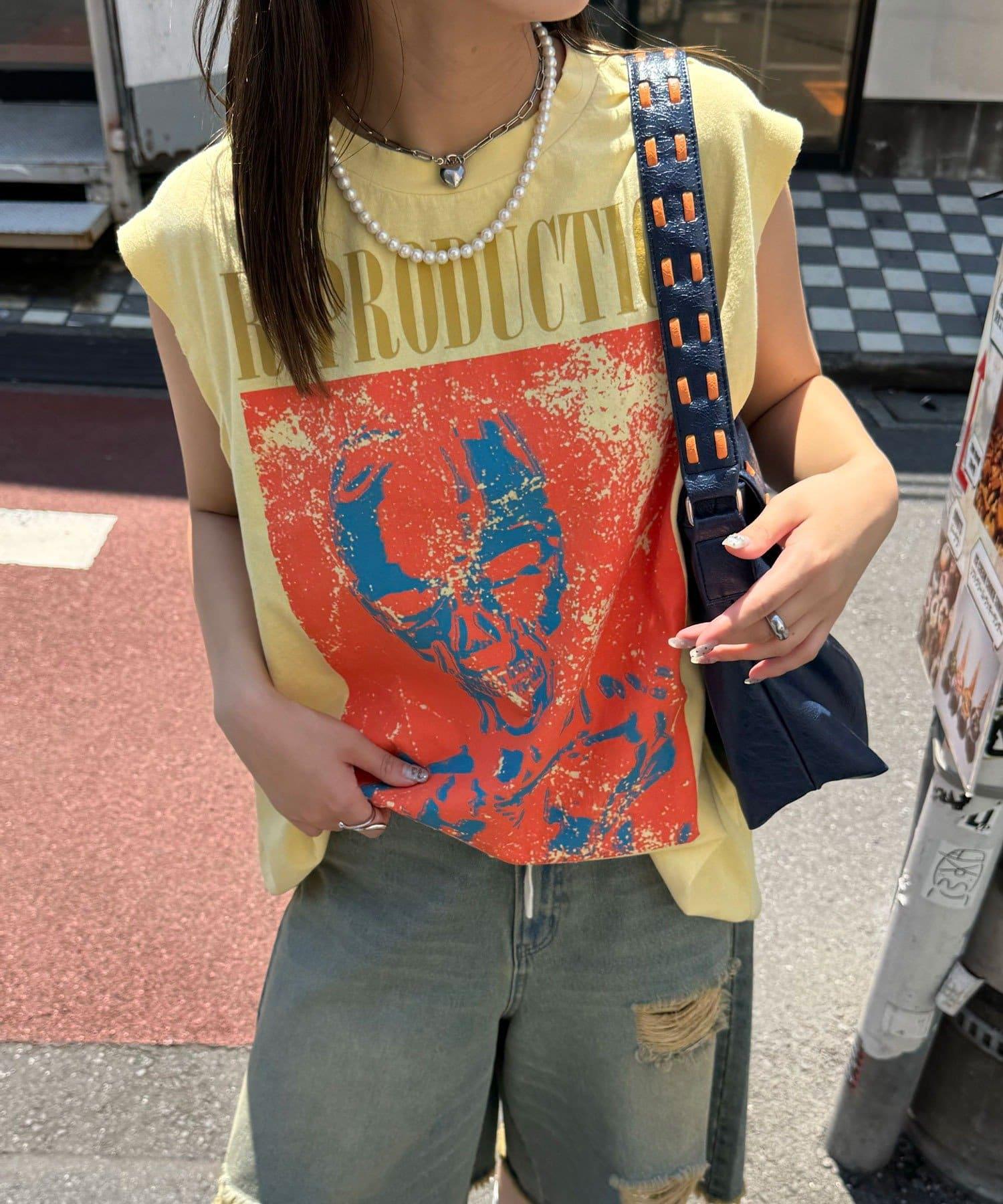 【複製標籤 / 複製標籤】混合復古褪色無袖T恤
