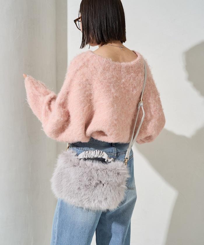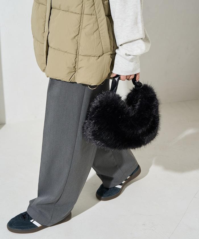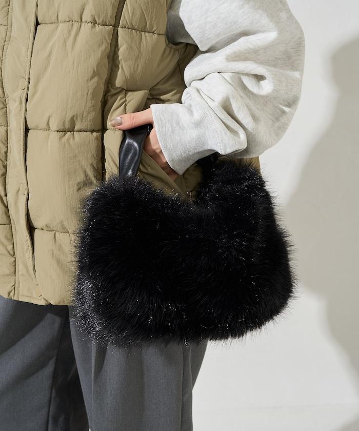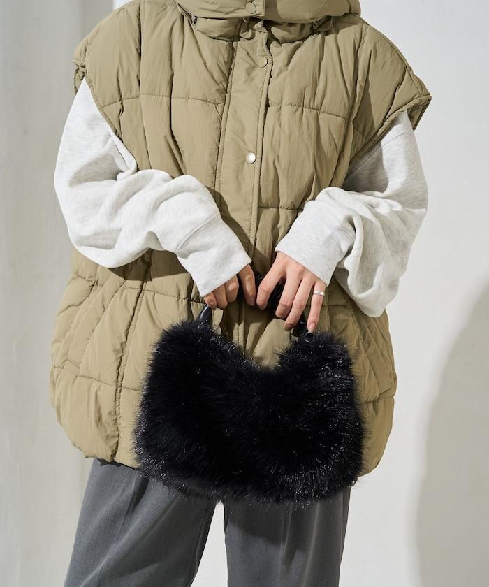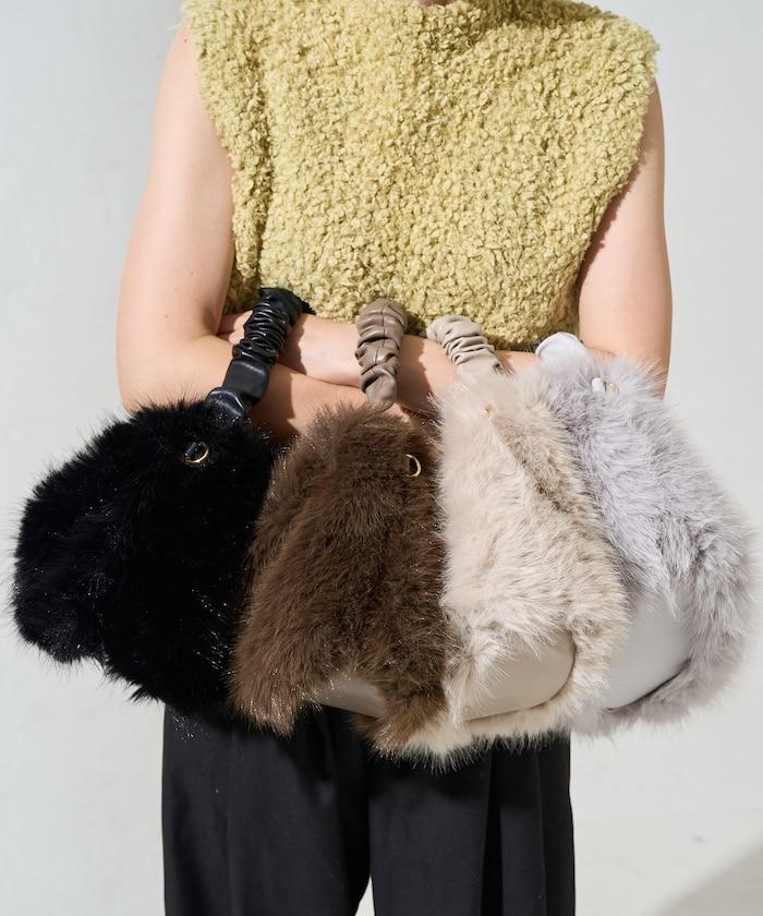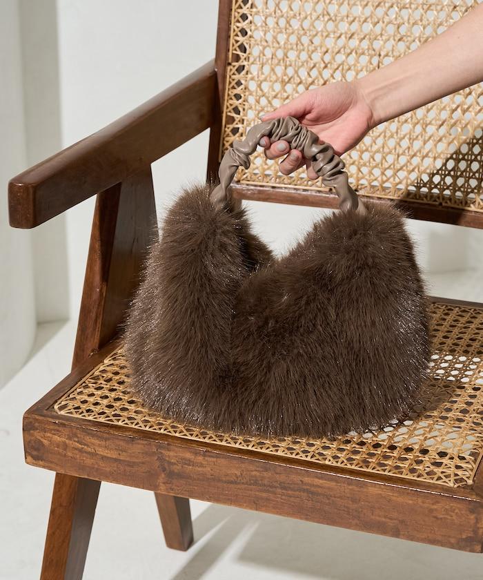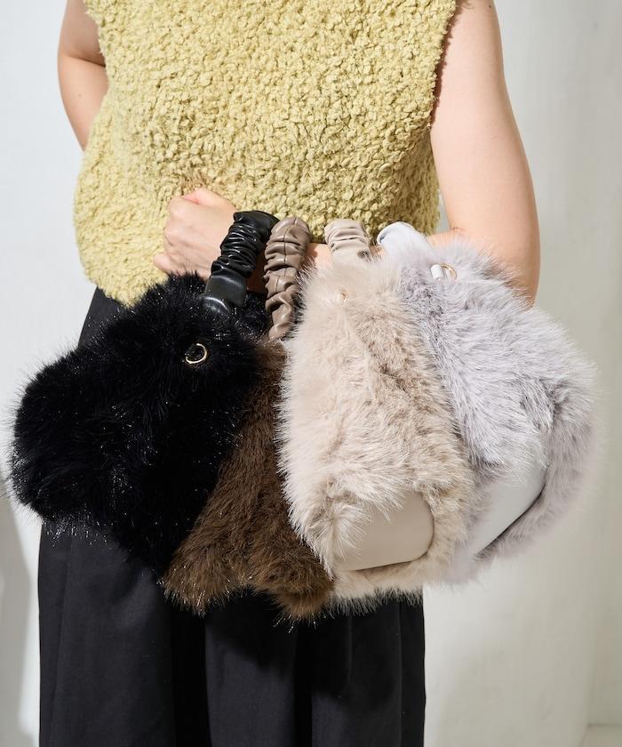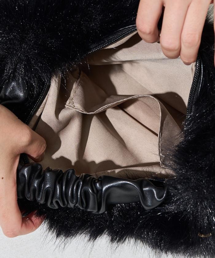 雙向手袋,配有人造皮草和聚攏手柄,提升季節氛圍。