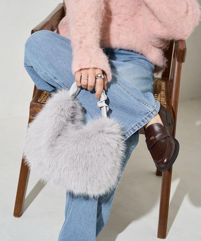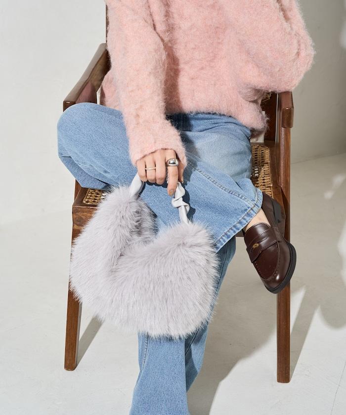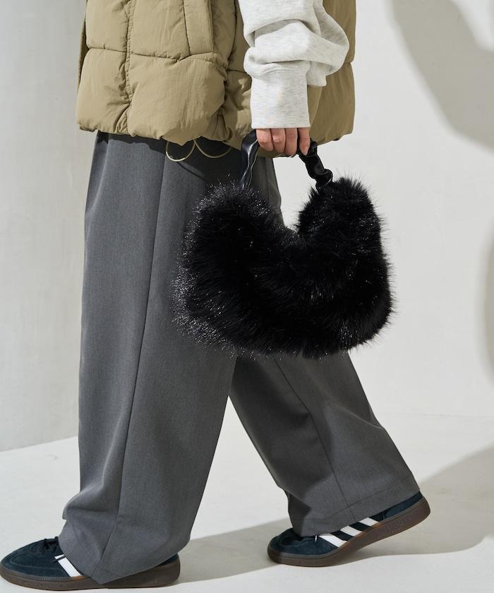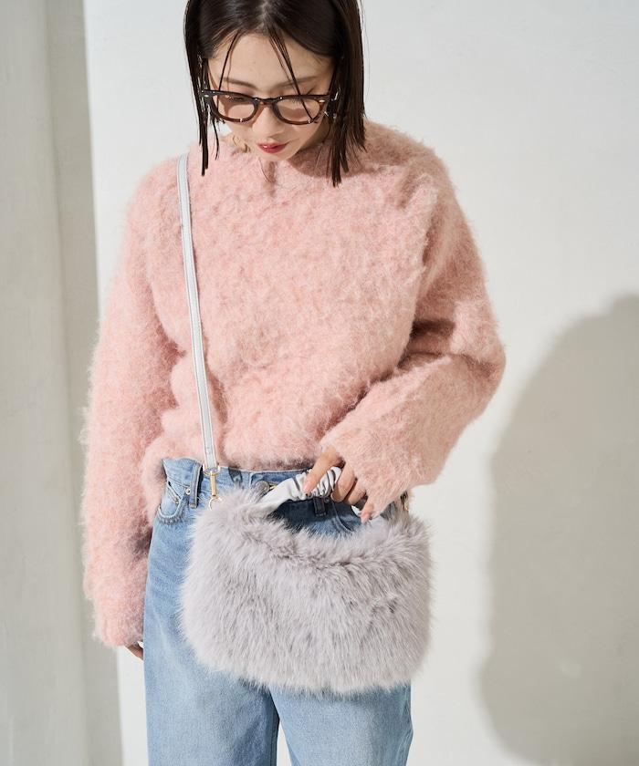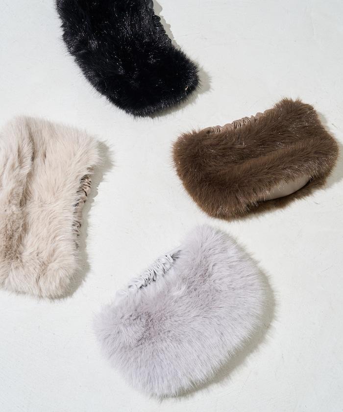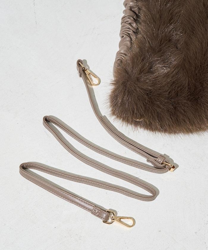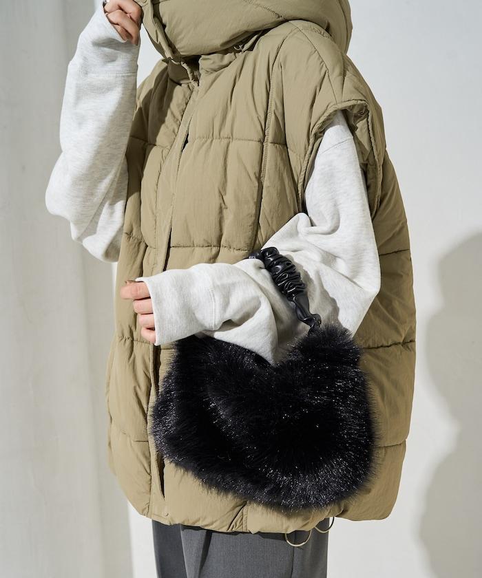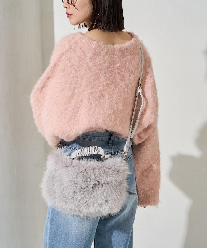 雙向手袋,配有人造皮草和聚攏手柄,提升季節氛圍。