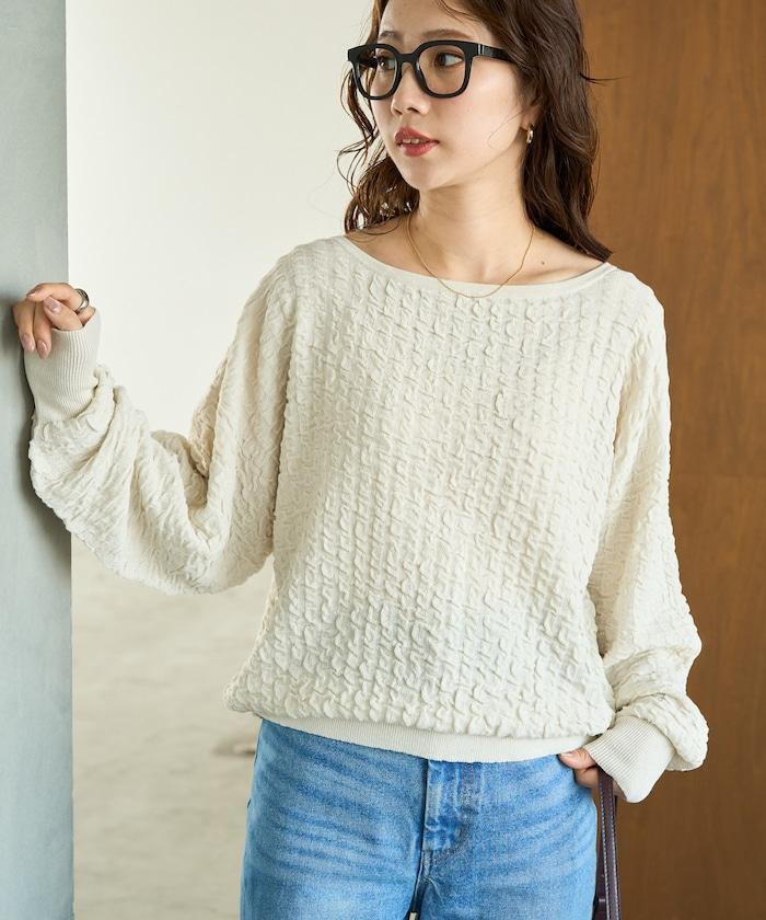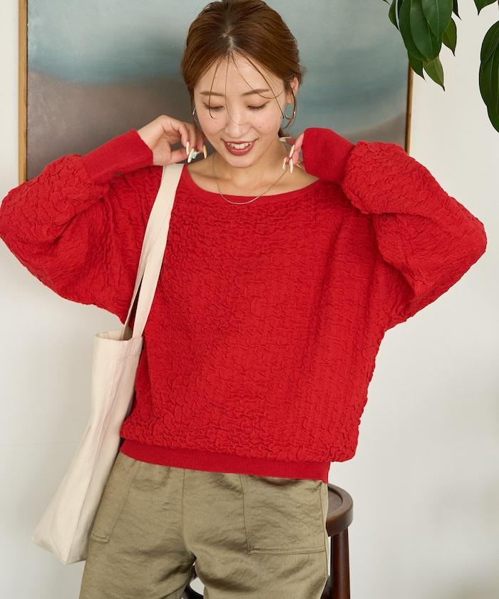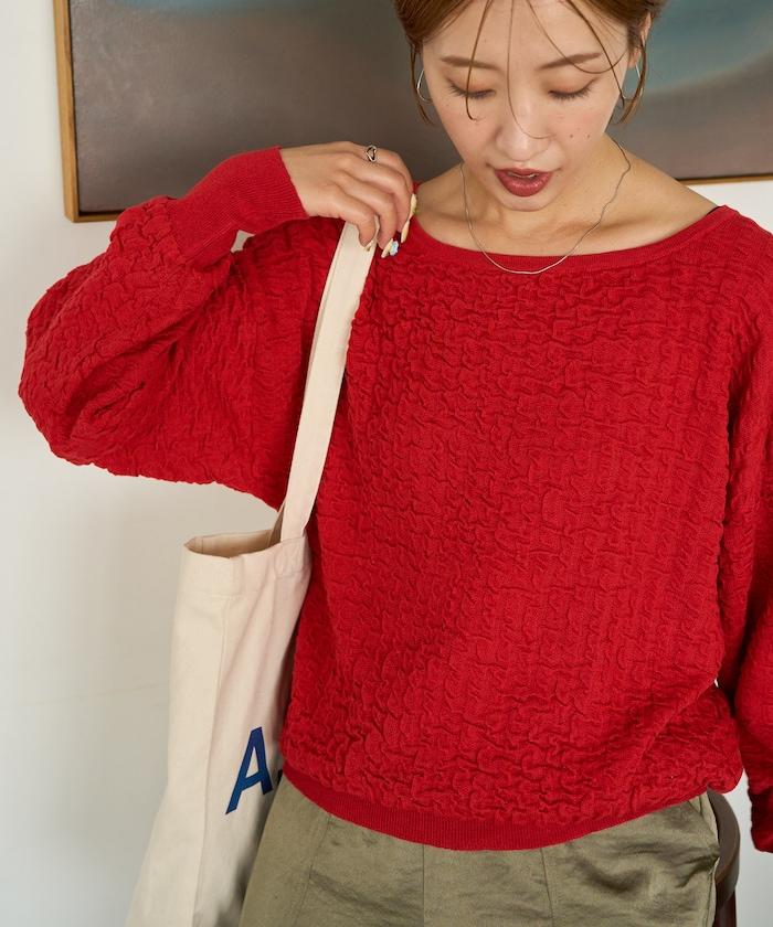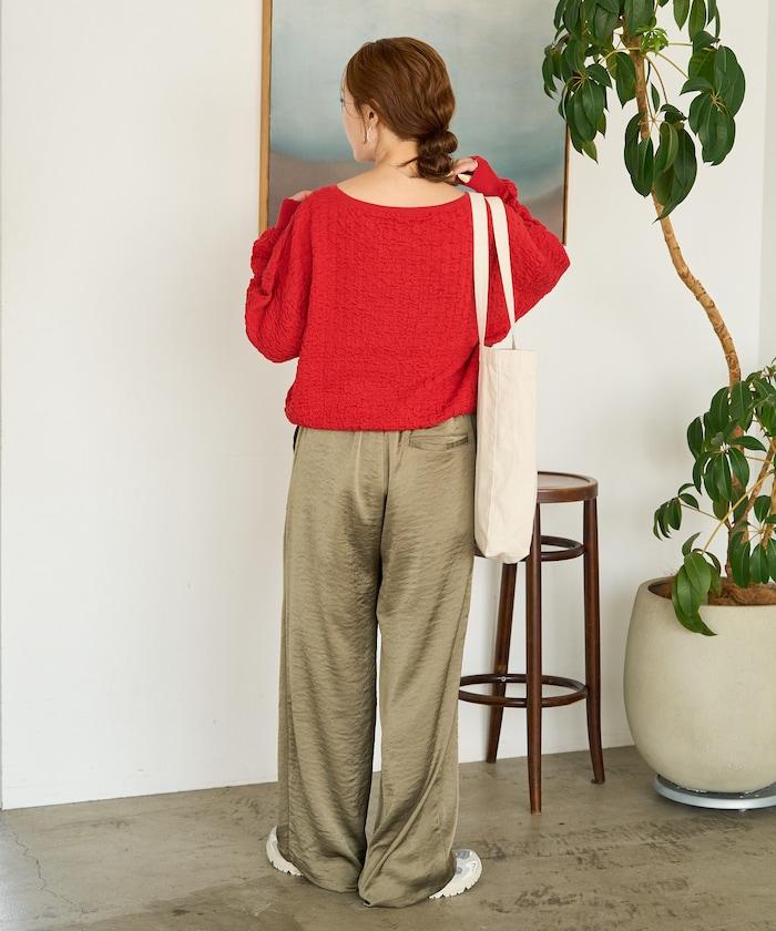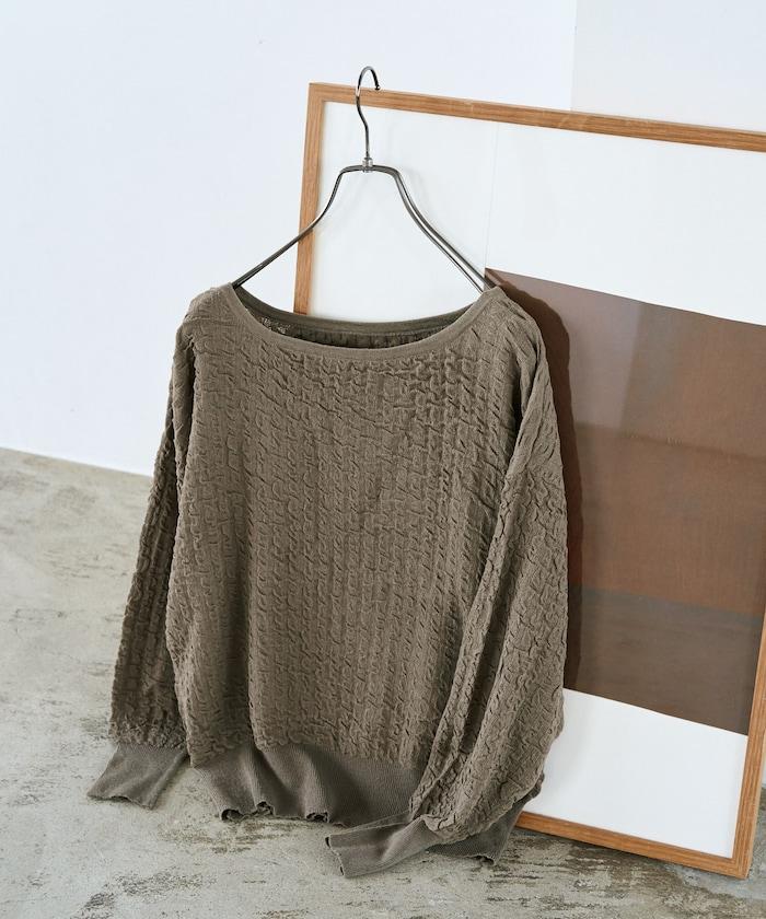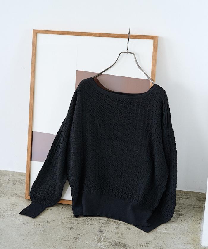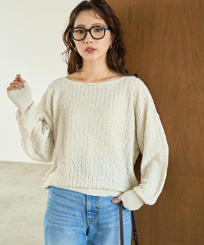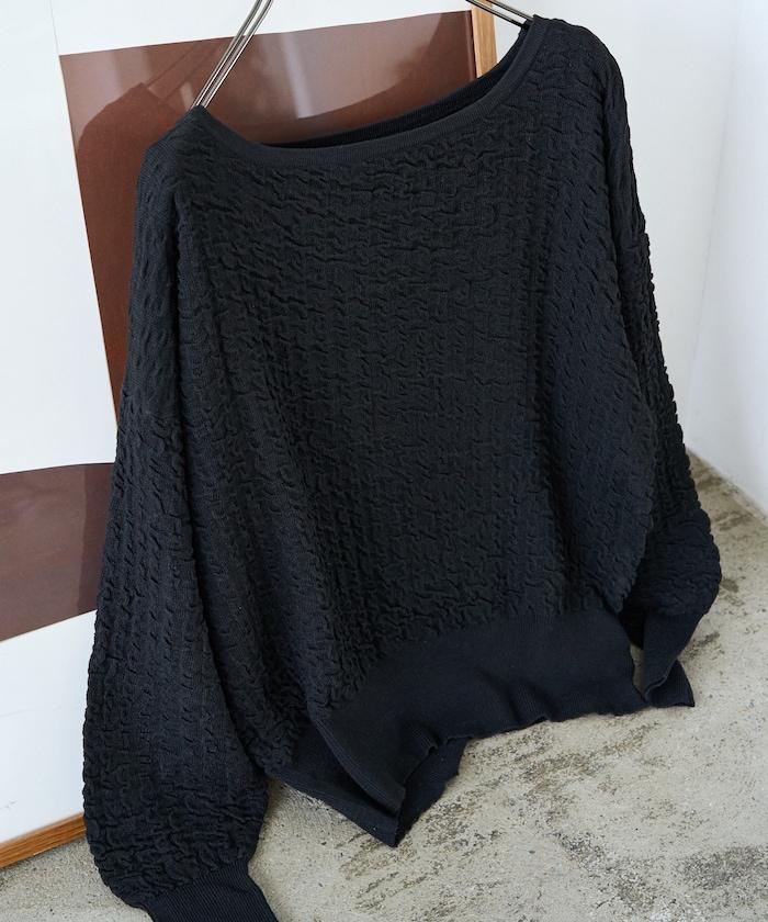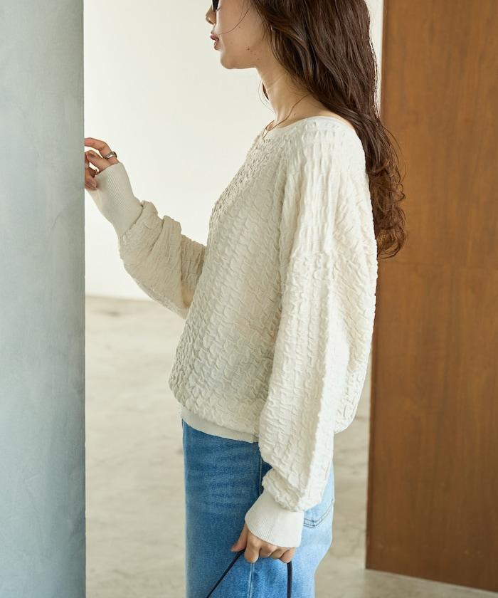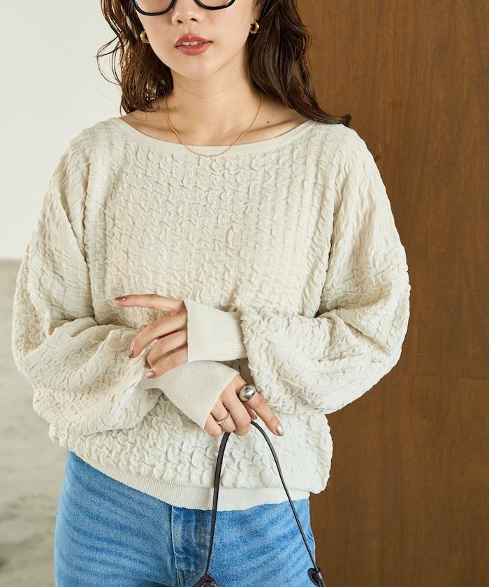 褶皺抽褶編織船領套頭衫
