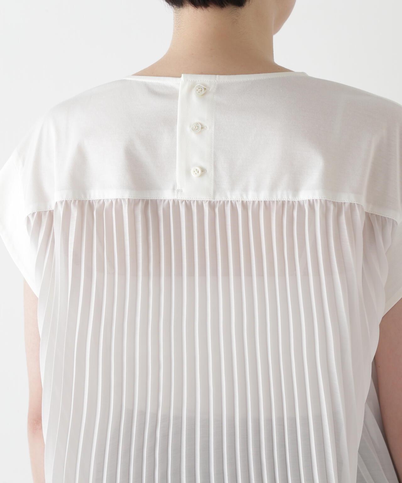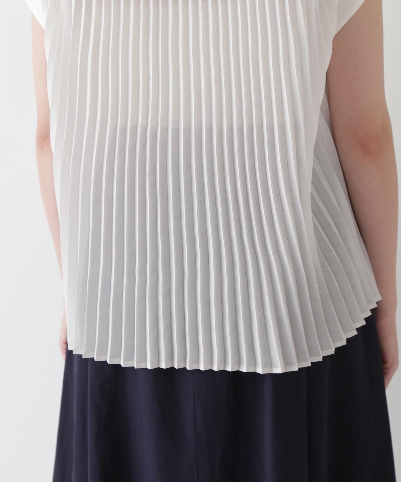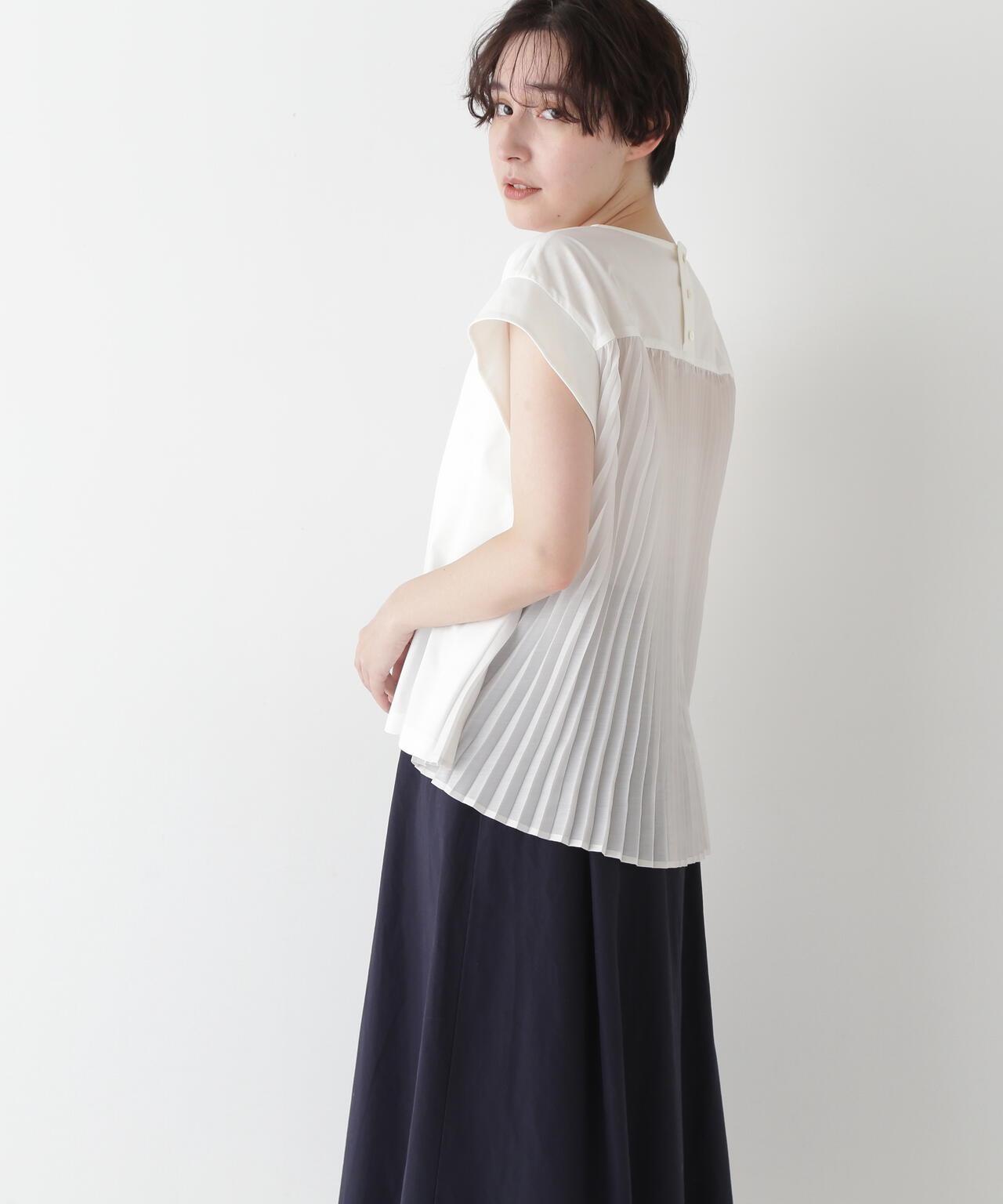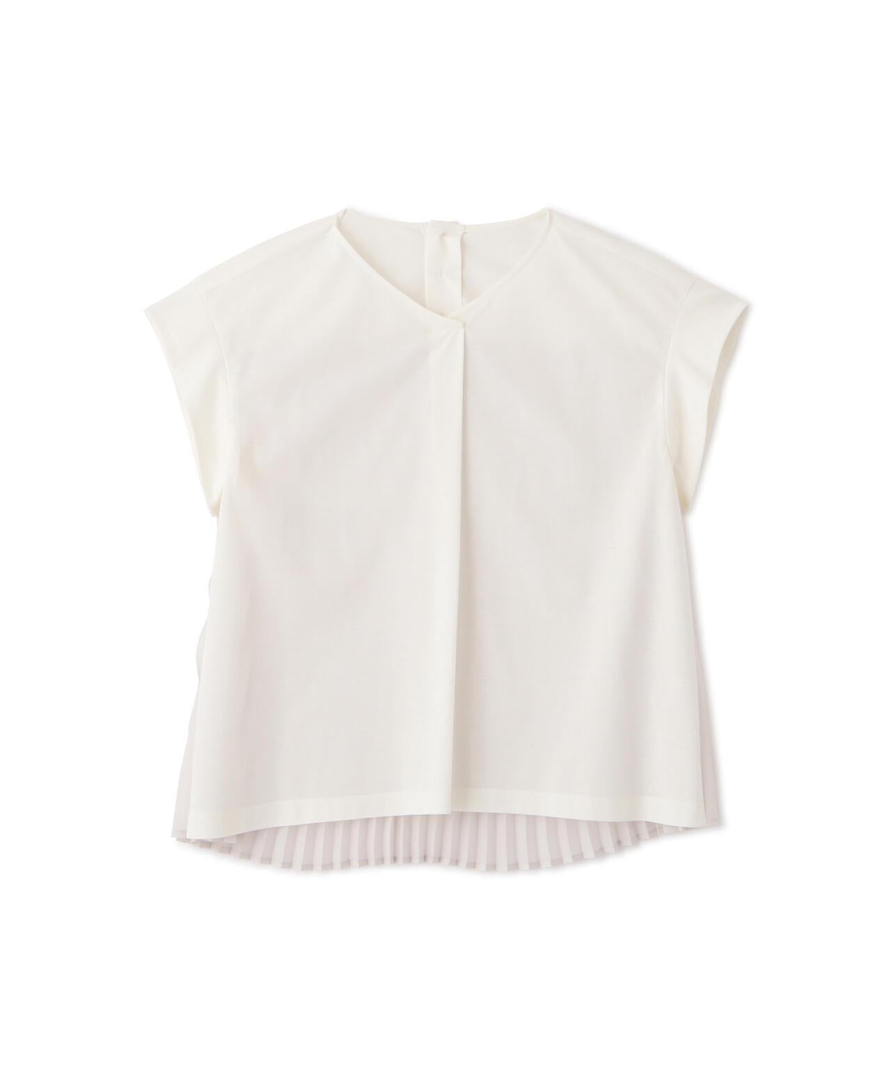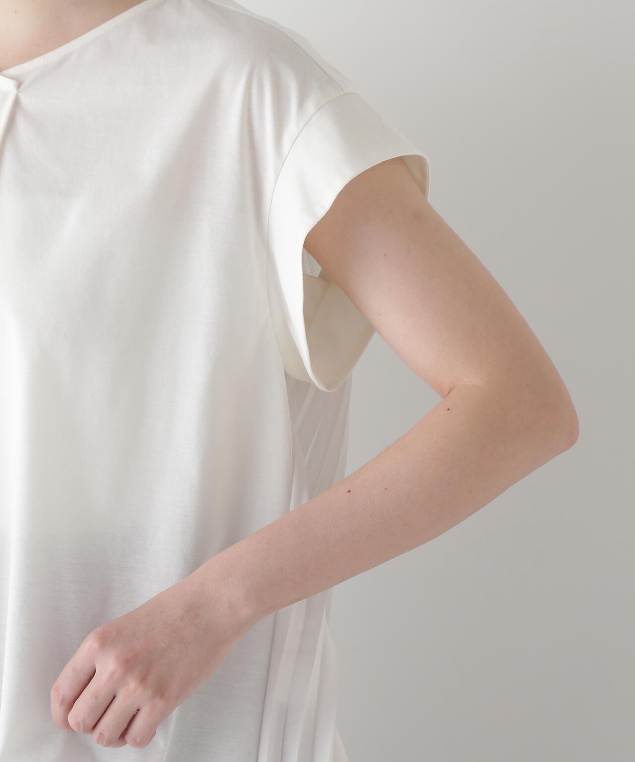 這款法式袖 V 領套頭衫的後軛下有精緻的風琴褶。褶襉由滌綸紡紗製成,具有自然的外觀和手感,光澤優雅,觸感柔軟。面料由滌綸紡紗製成,具有自然優雅的光澤和舒適柔軟的手感。該產品具有涼爽、透明的感覺,因此建議穿上背心等內層衣物。