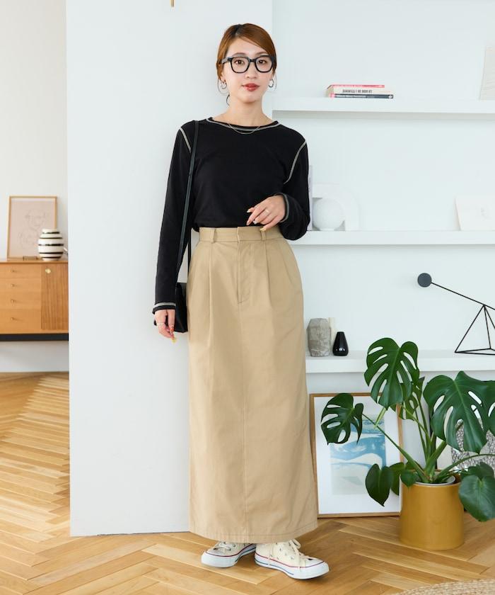 這款長裙採用富有彈性的奇諾面料,剪裁優美。