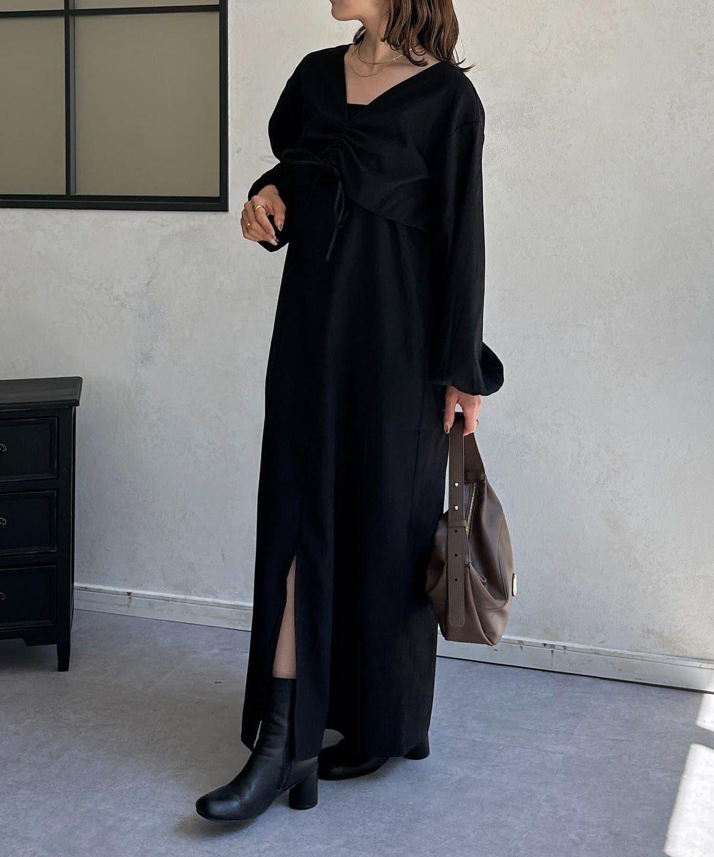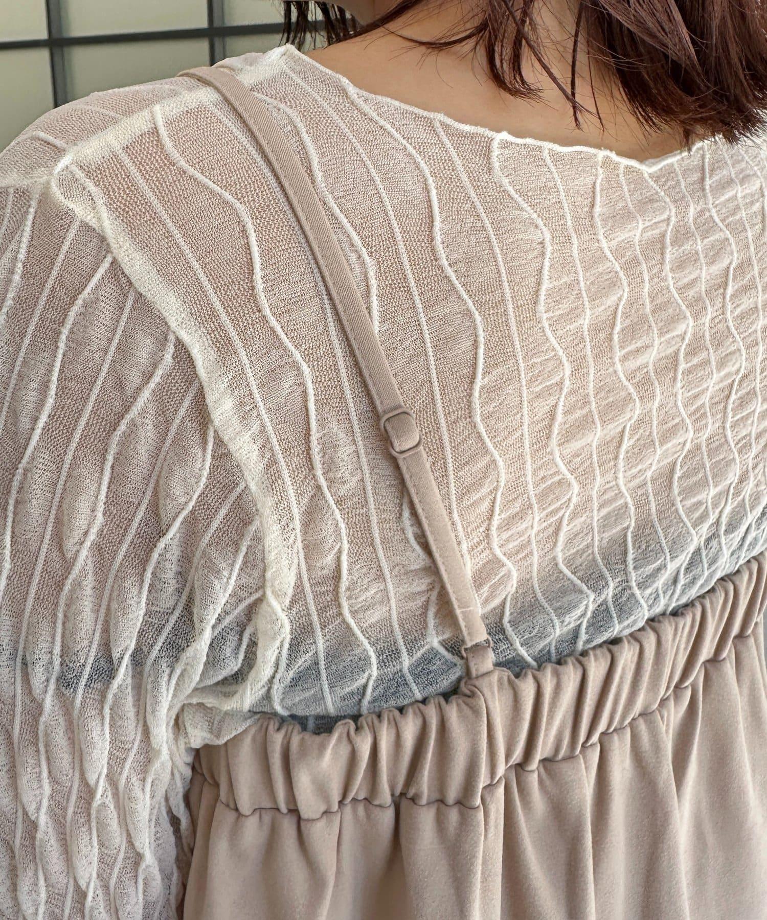 褶皺短款開衫×吊帶連衣裙