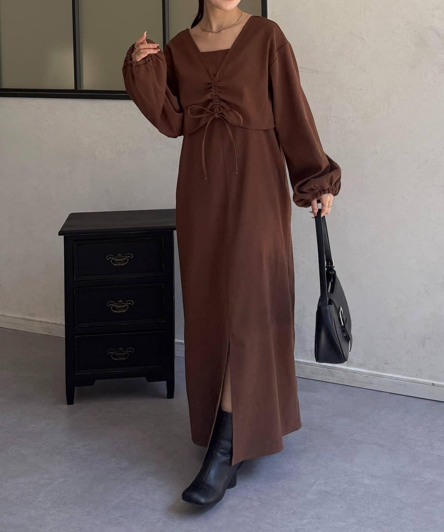 #Set dress #Shirring #Bolero #Cami dress #Wearable #Beautiful