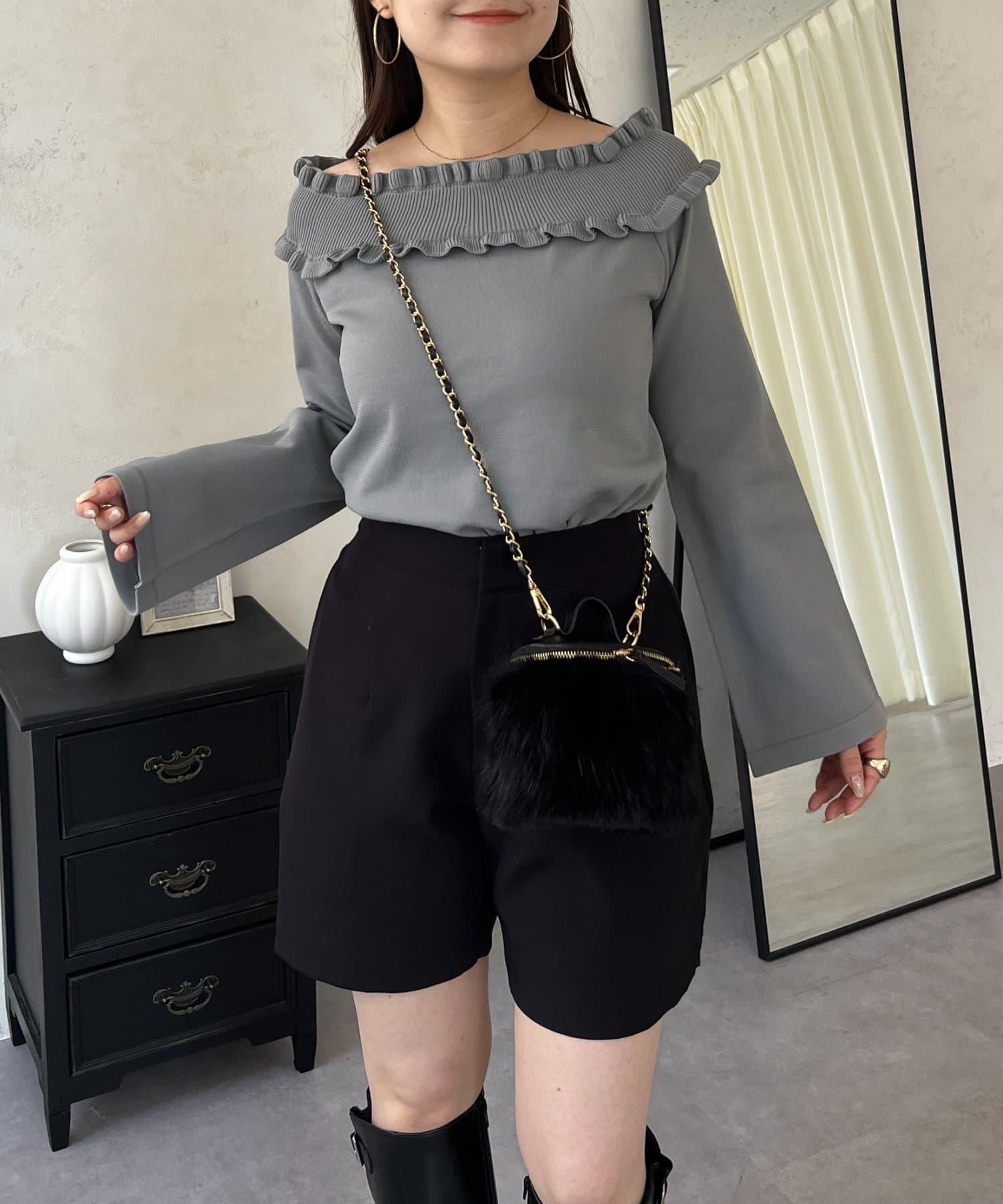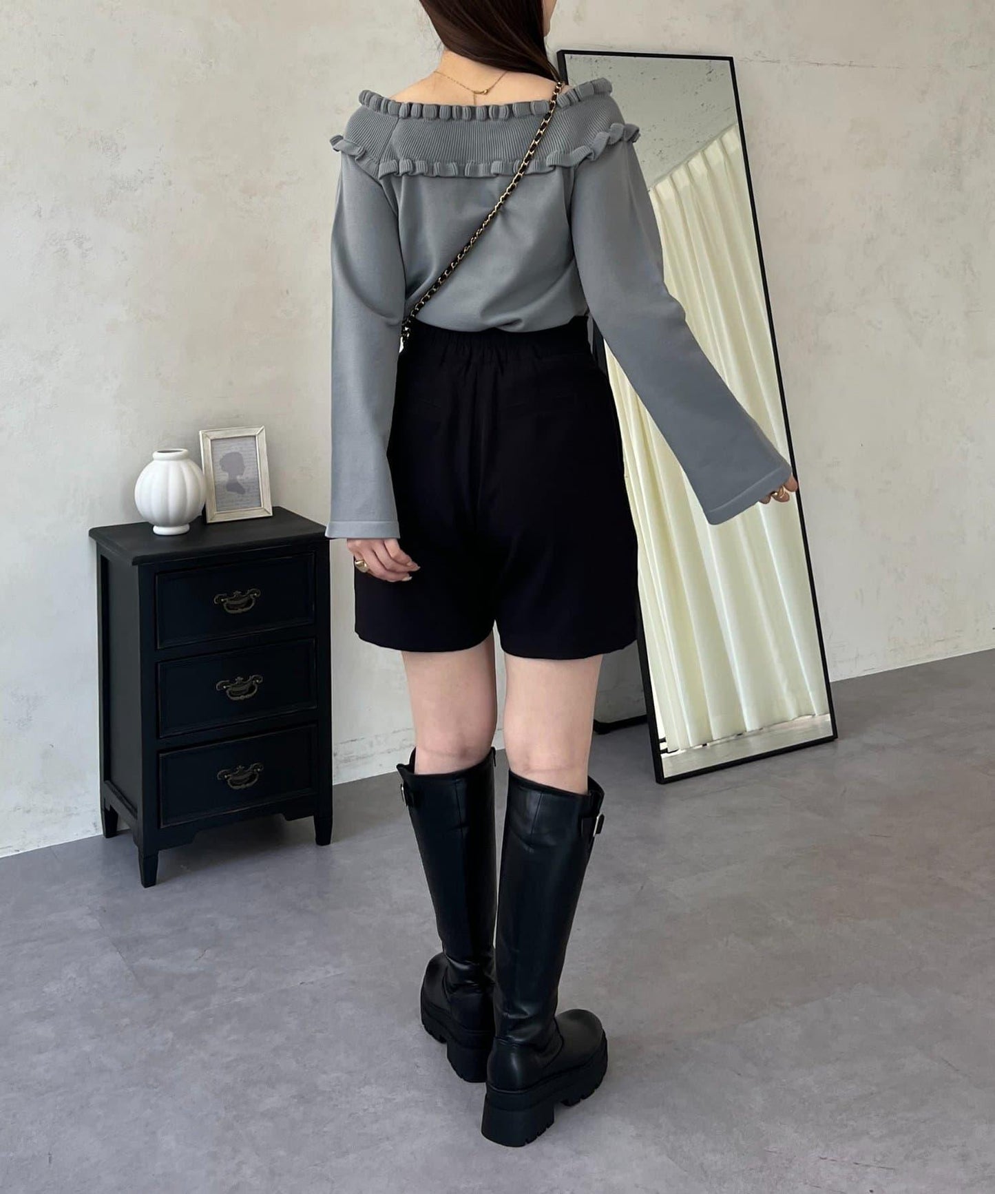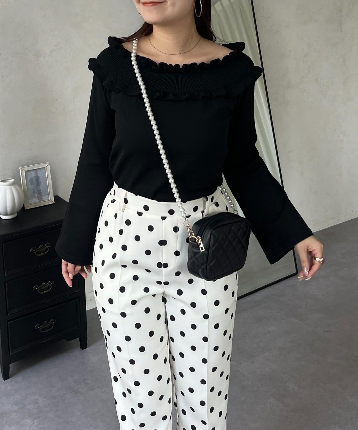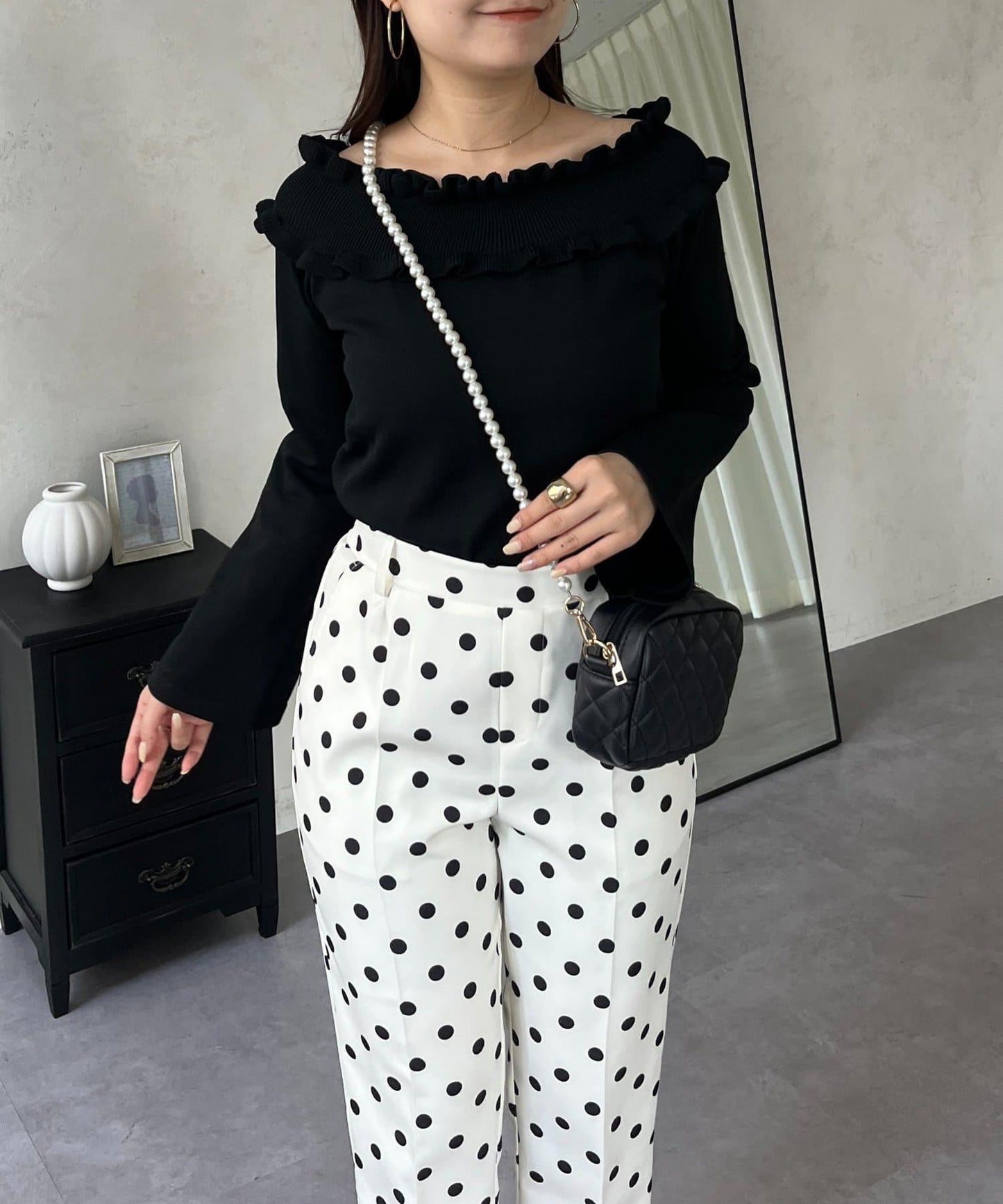 露肩針織衫,荷葉邊設計讓你看起來更有女人味。