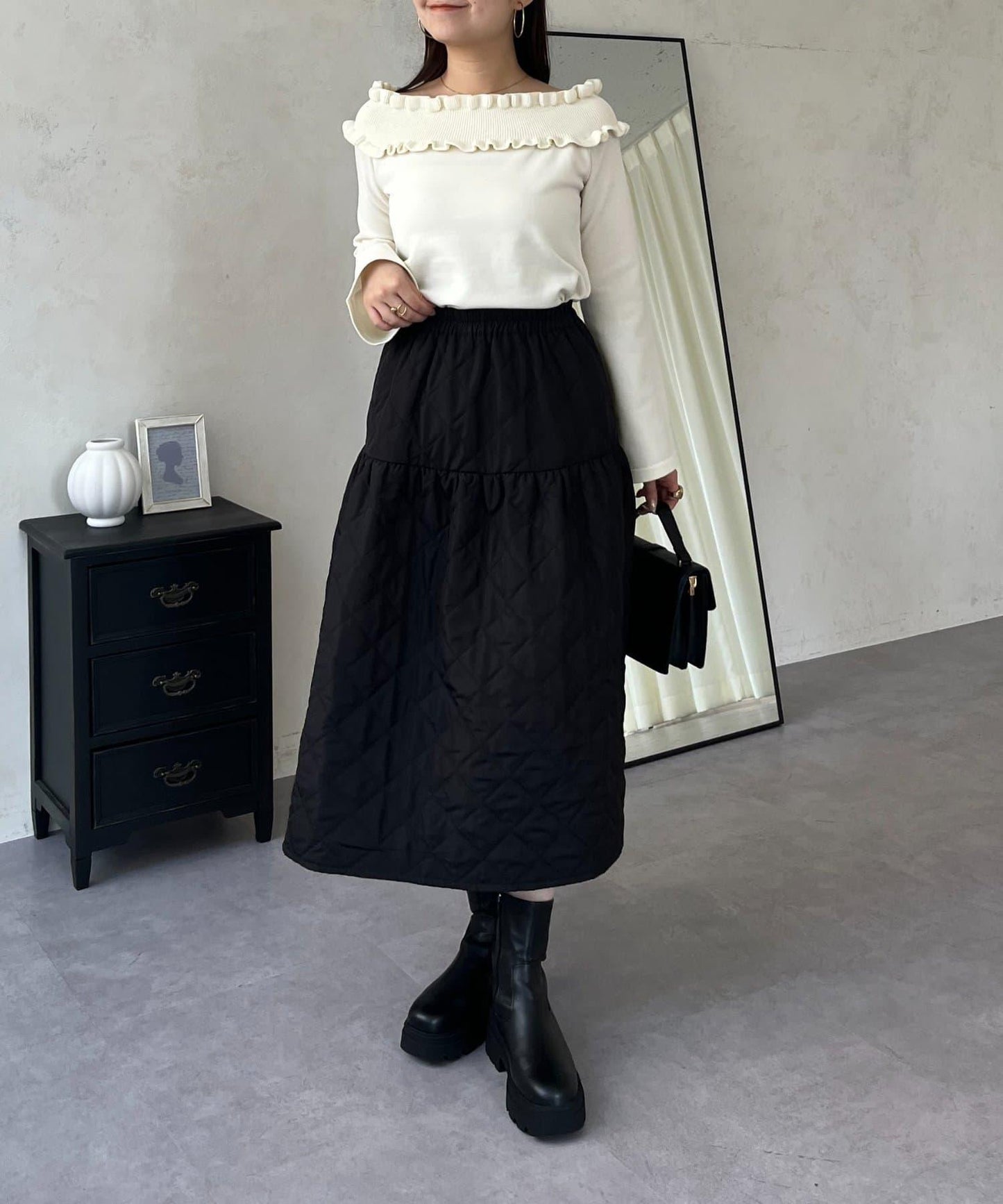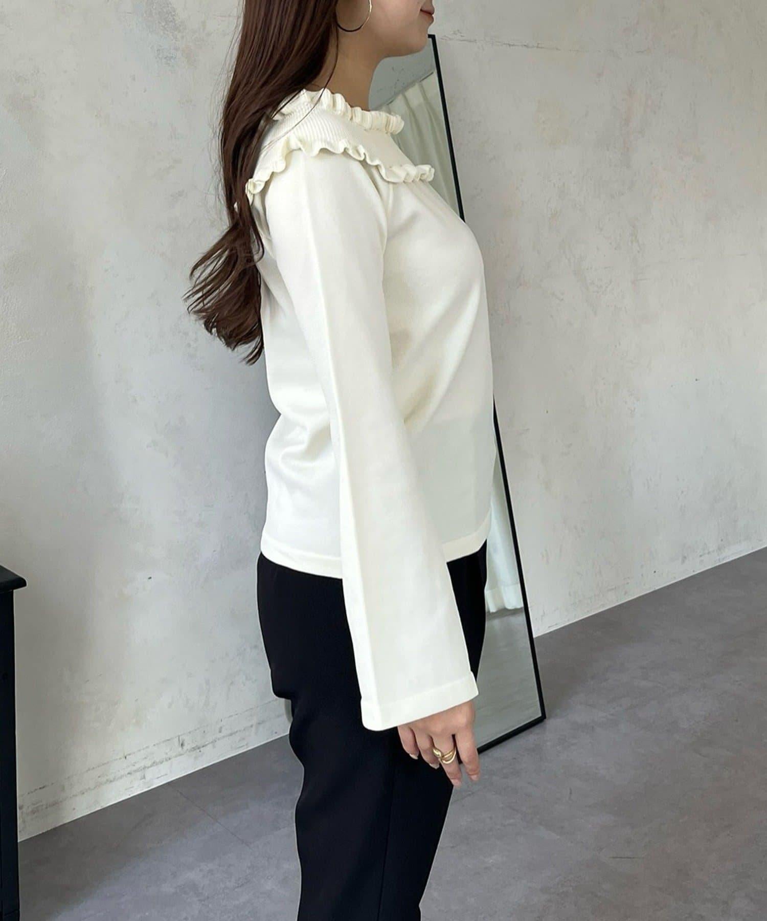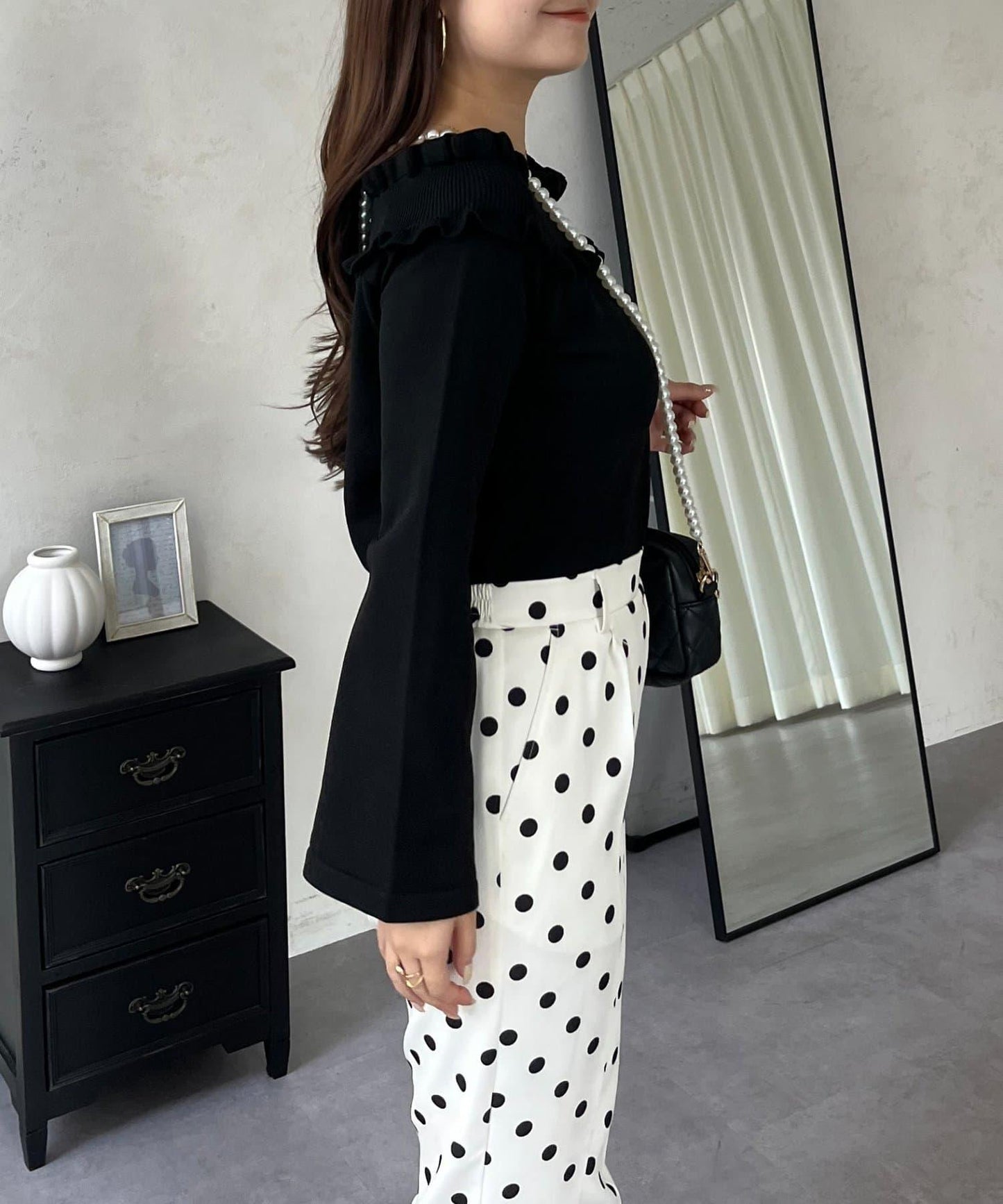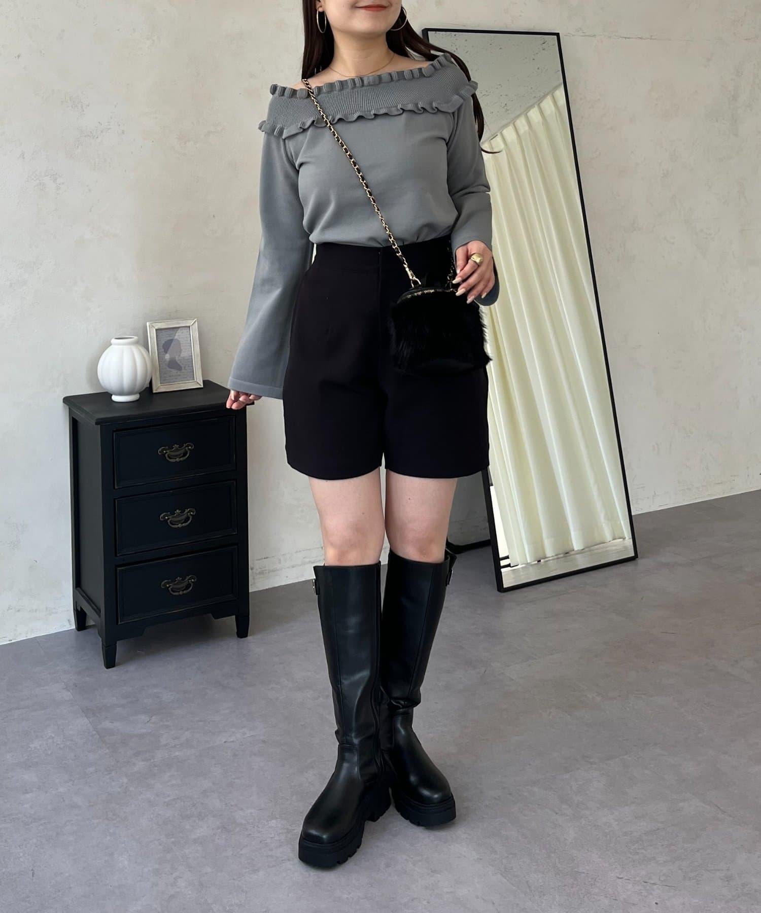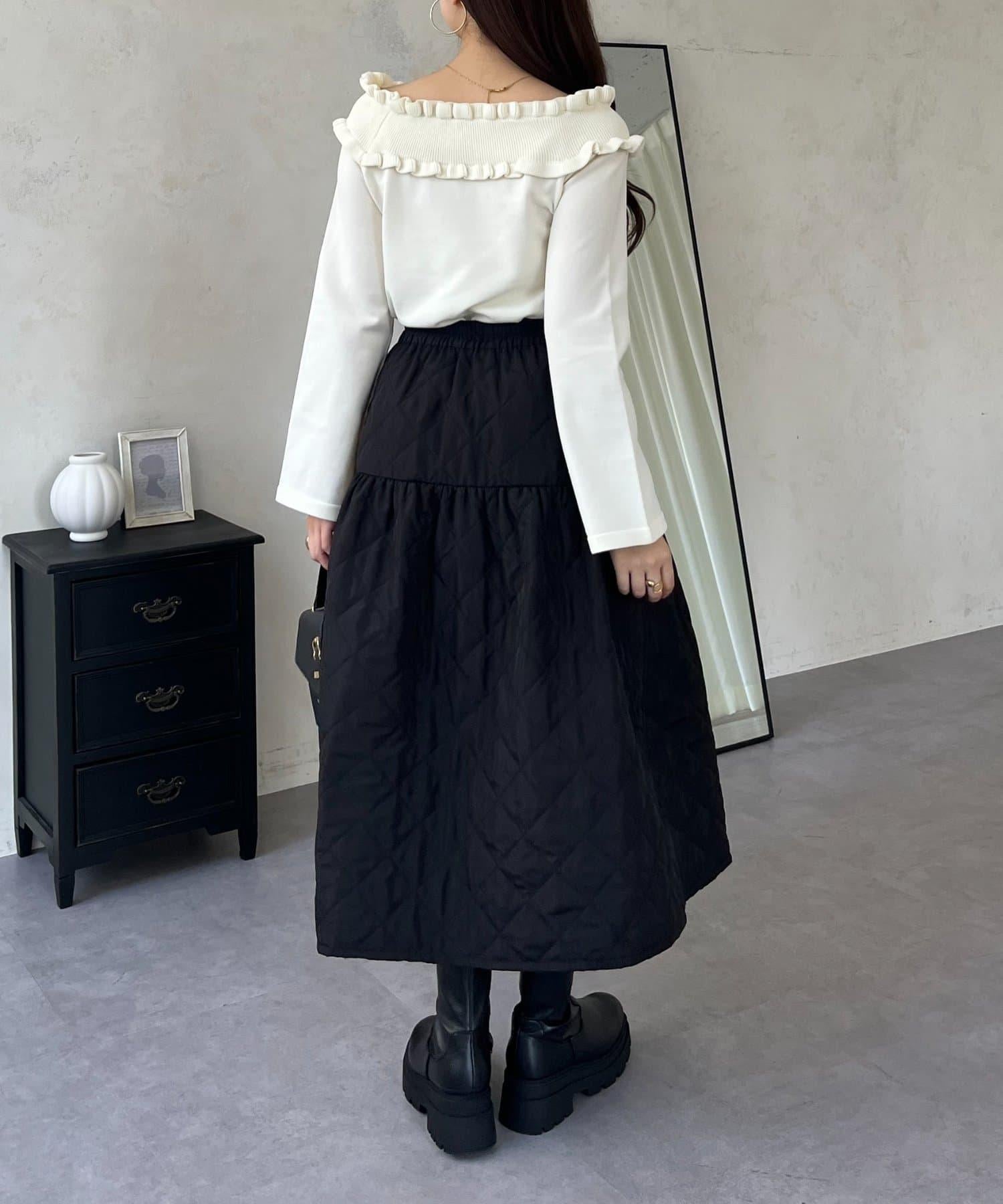 露肩針織衫,荷葉邊設計讓你看起來更有女人味。