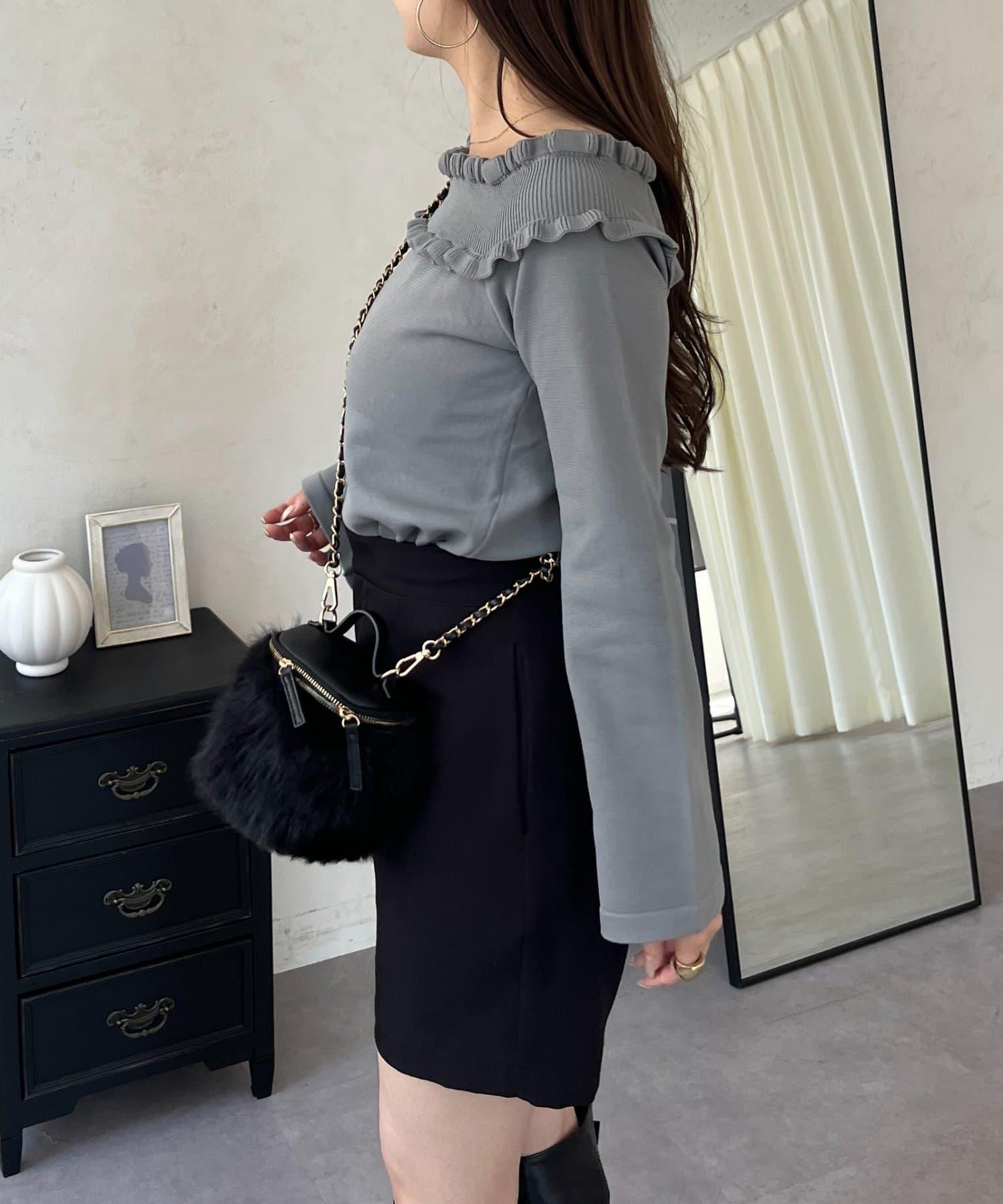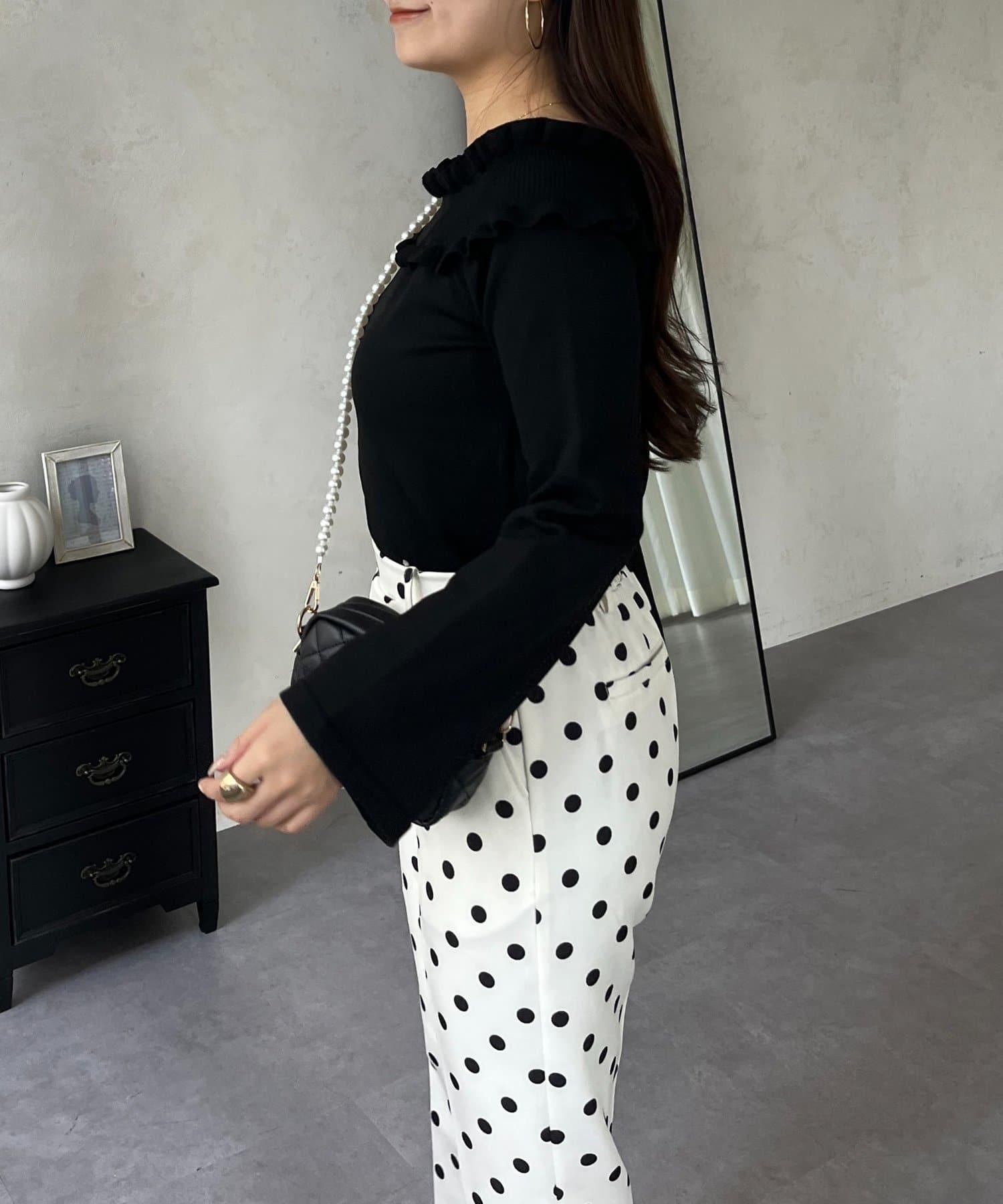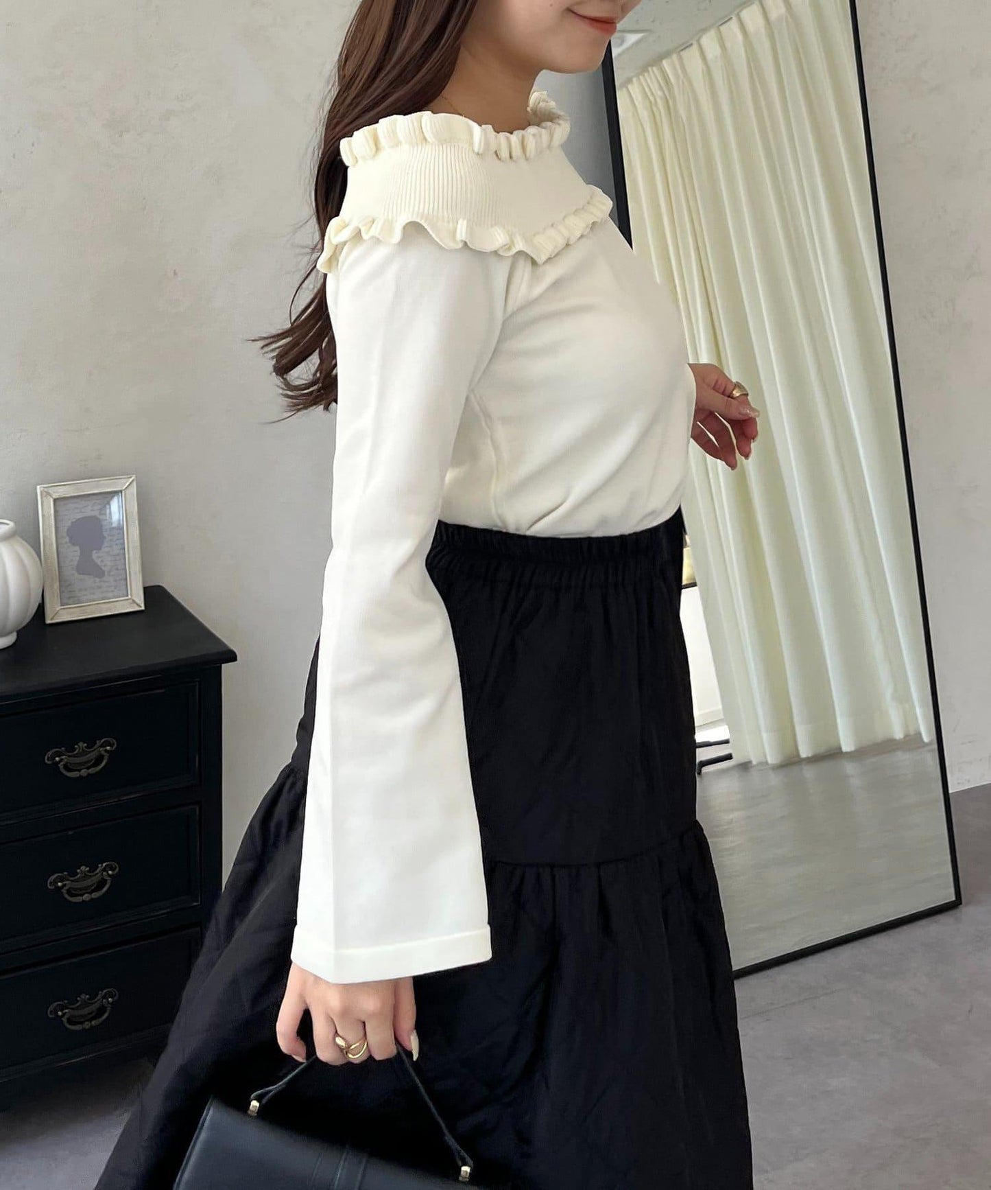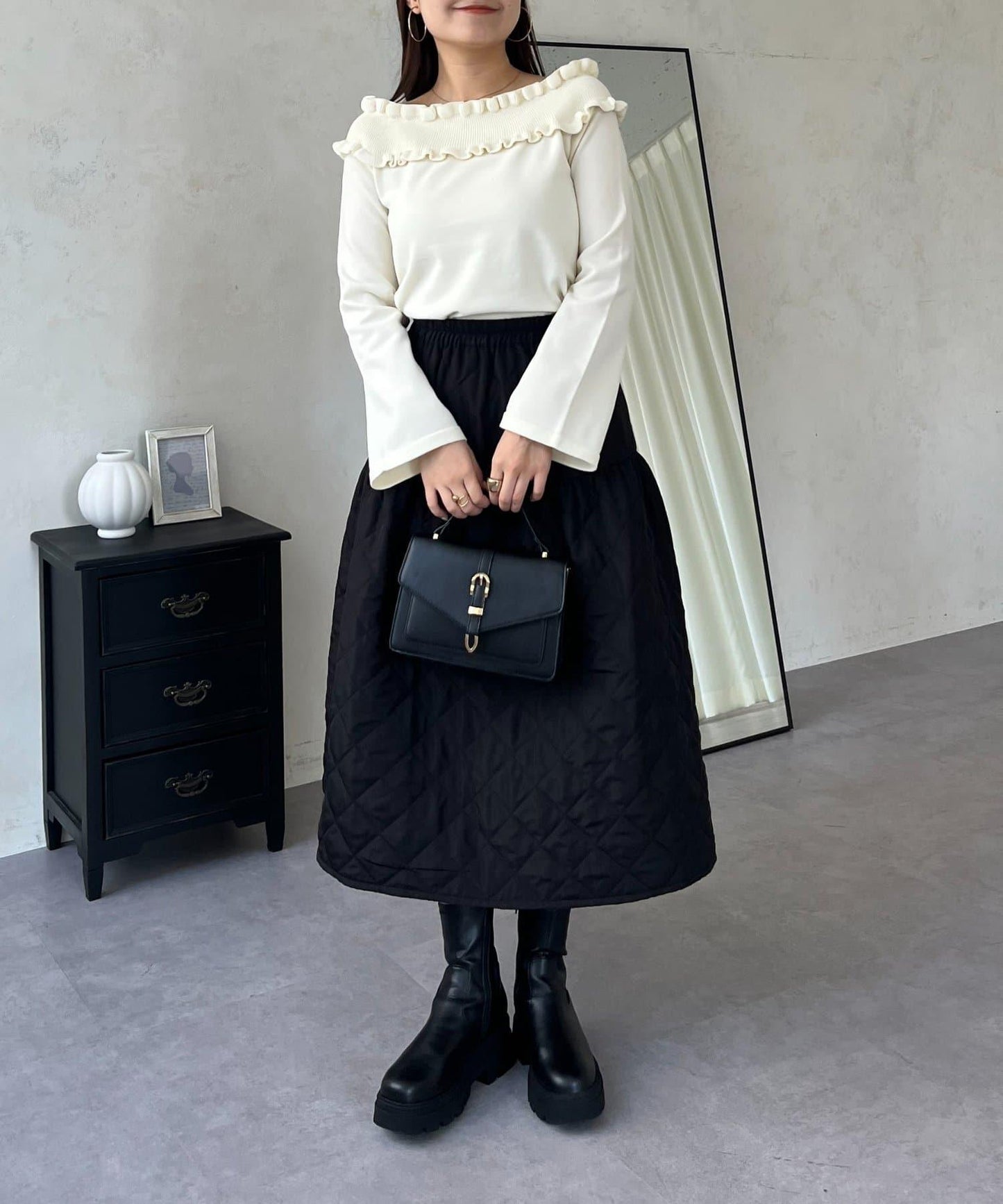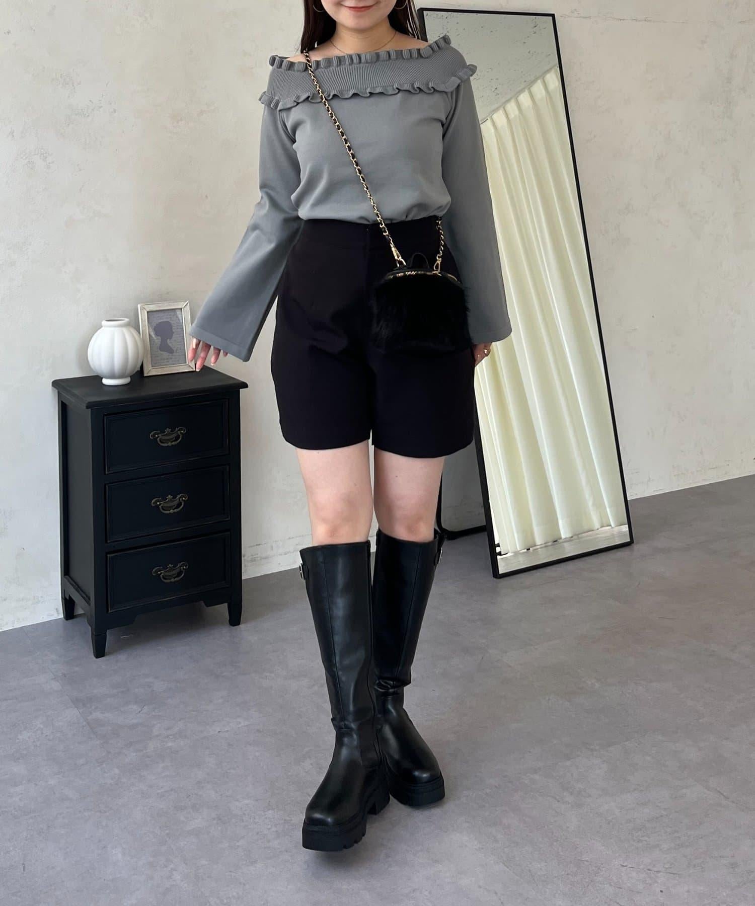 露肩針織衫,荷葉邊設計讓你看起來更有女人味。